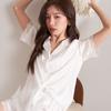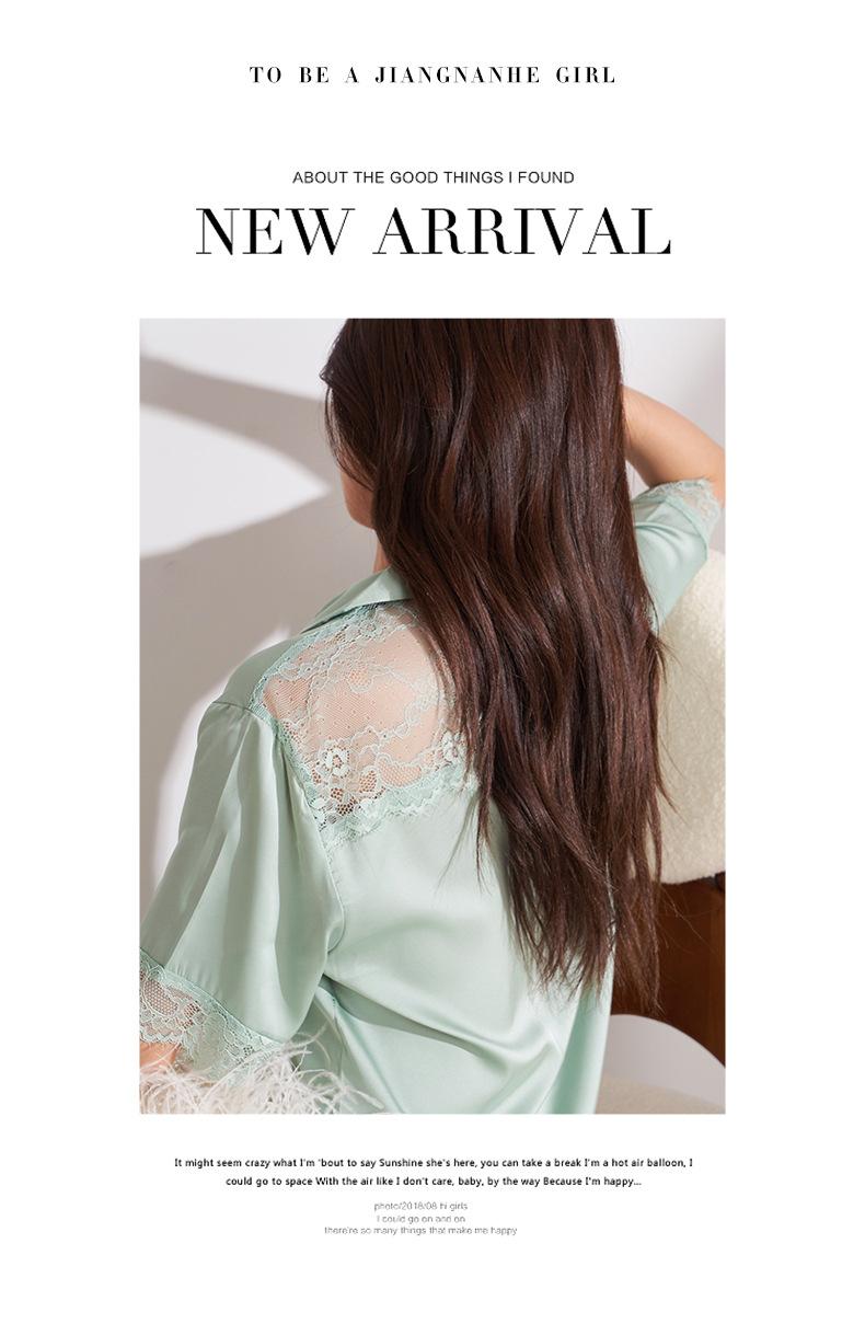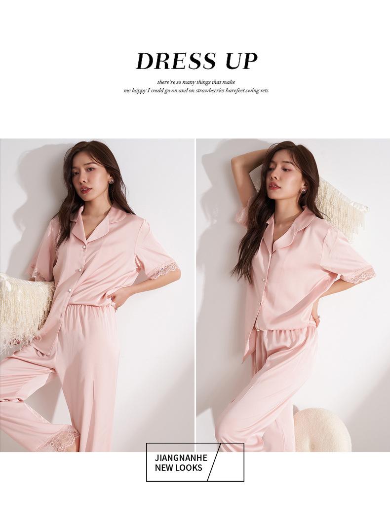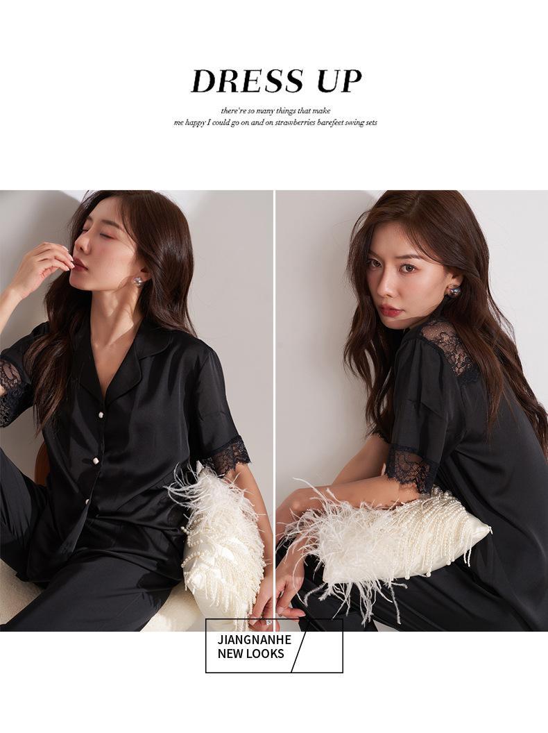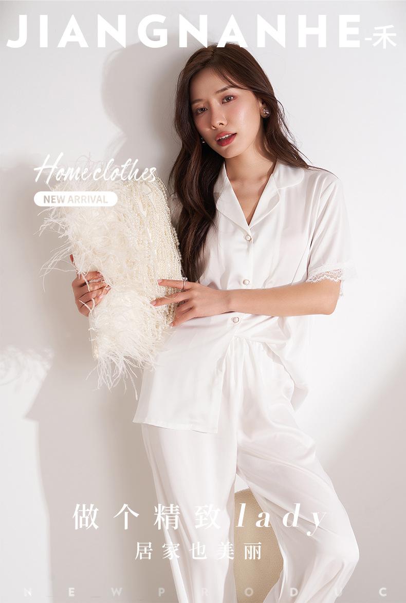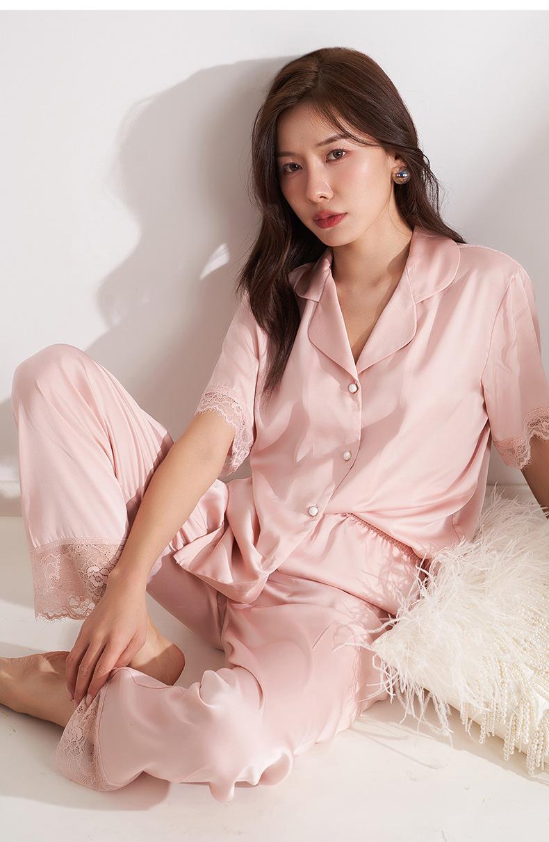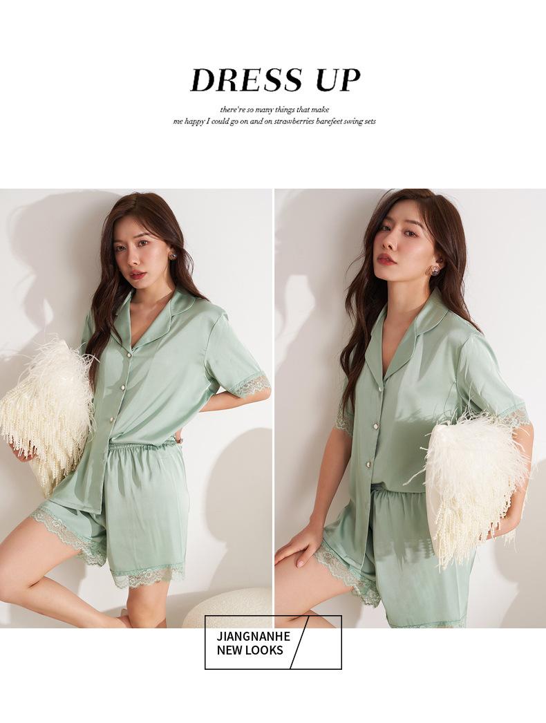 Pijama de seda de hielo 2023 para mujer, de verano, con encaje fino, calado, para usar en casa, con pantalones y pantalones cortos de manga corta, conjunto de tres piezas