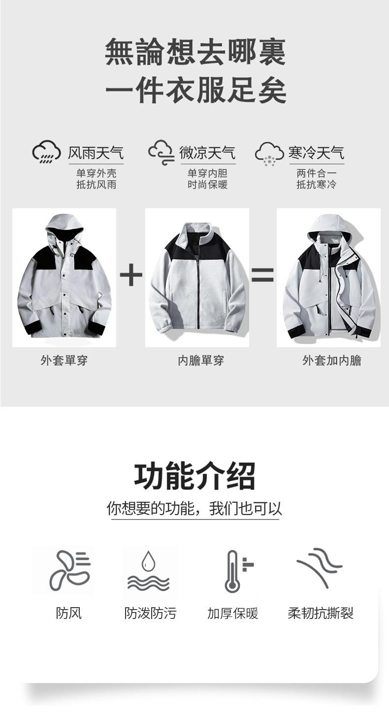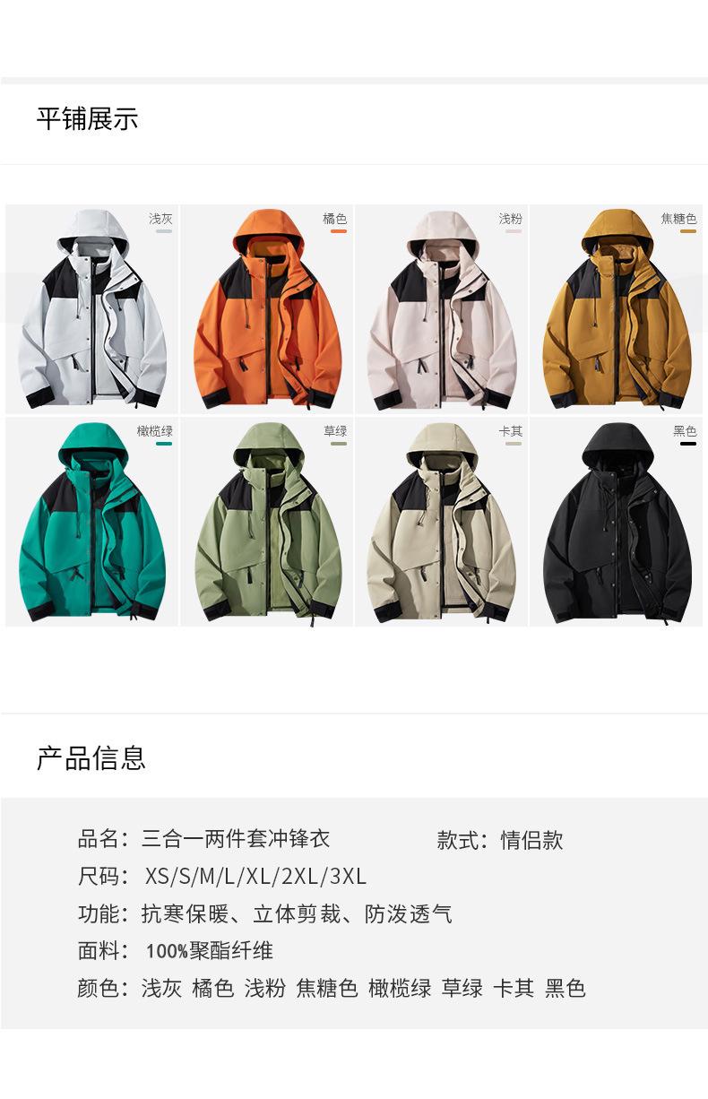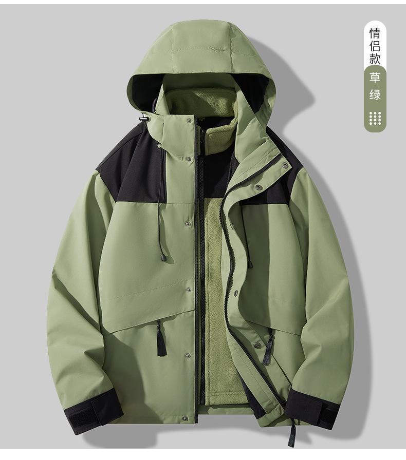 Chaqueta de Estilo Otoño e Invierno para Exterior para Hombre y Mujer Tres en Uno Desmontable Cortavientos Impermeable Traje de Montañismo Chaqueta Repelente al Agua