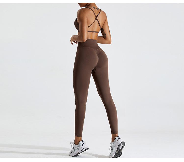 Compra Traje de yoga transpirable de secado rápido para mujer, estilo europeo y americano, con espalda deportiva para correr y fitness al por mayor en Joom.pro