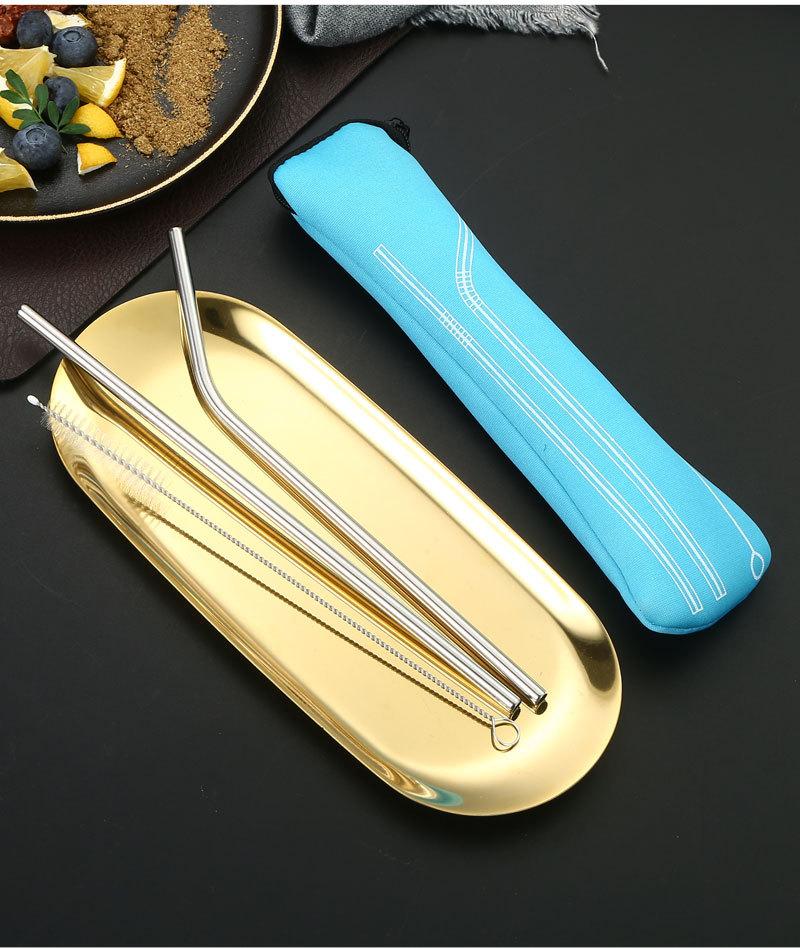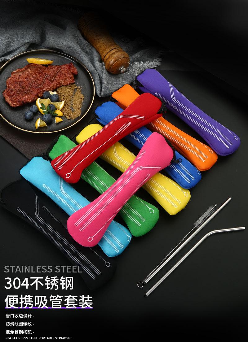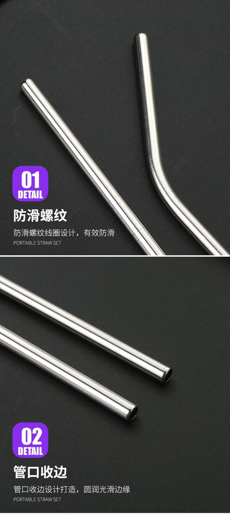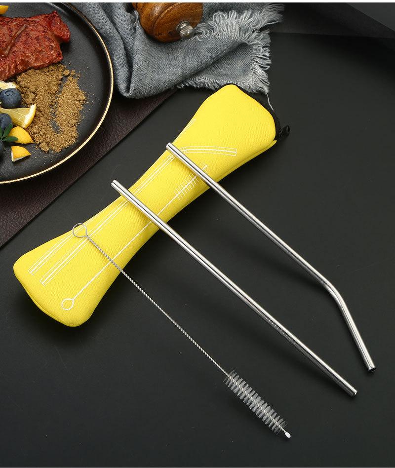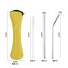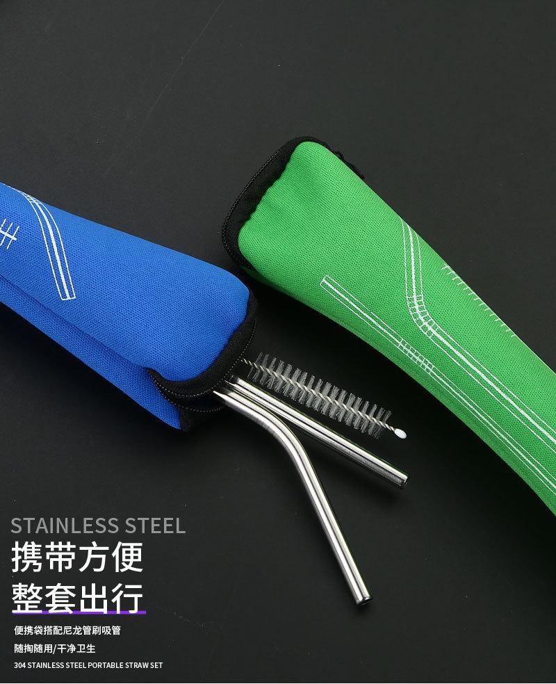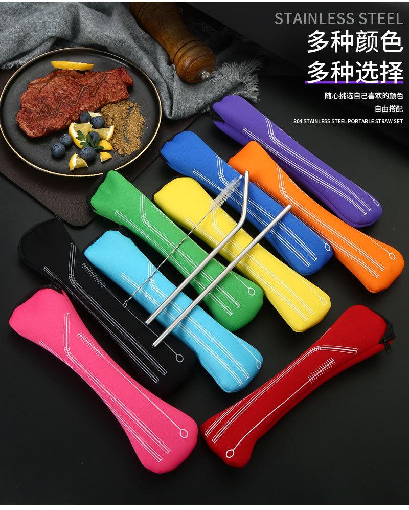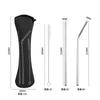 Pajita de acero inoxidable 304 transfronteriza de tres piezas con bolsa de tela, traje de pajita de metal, traje de pajita para taza de té con leche para beber