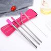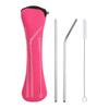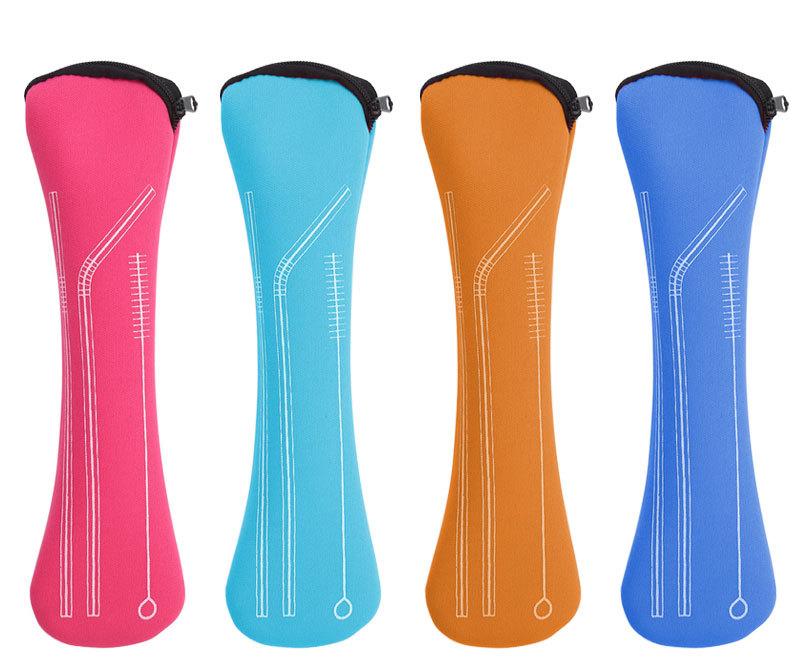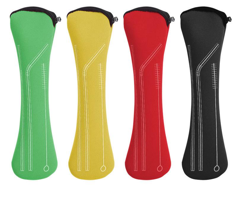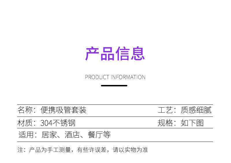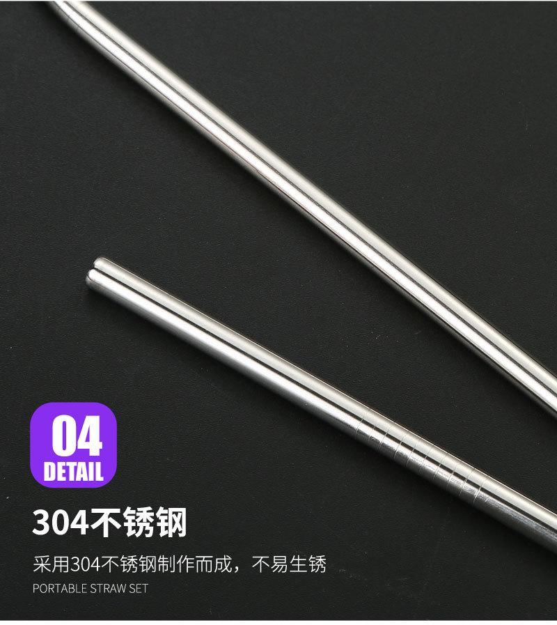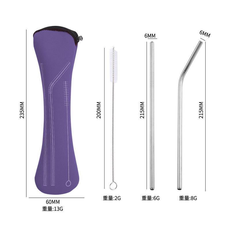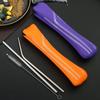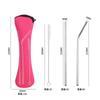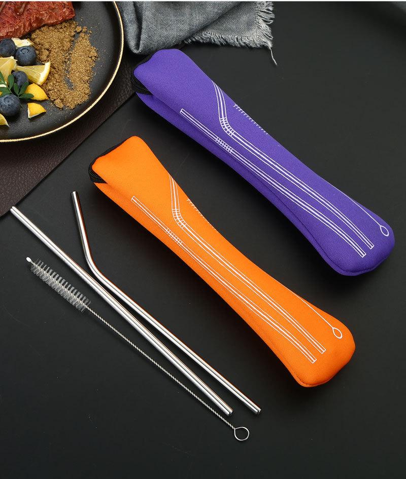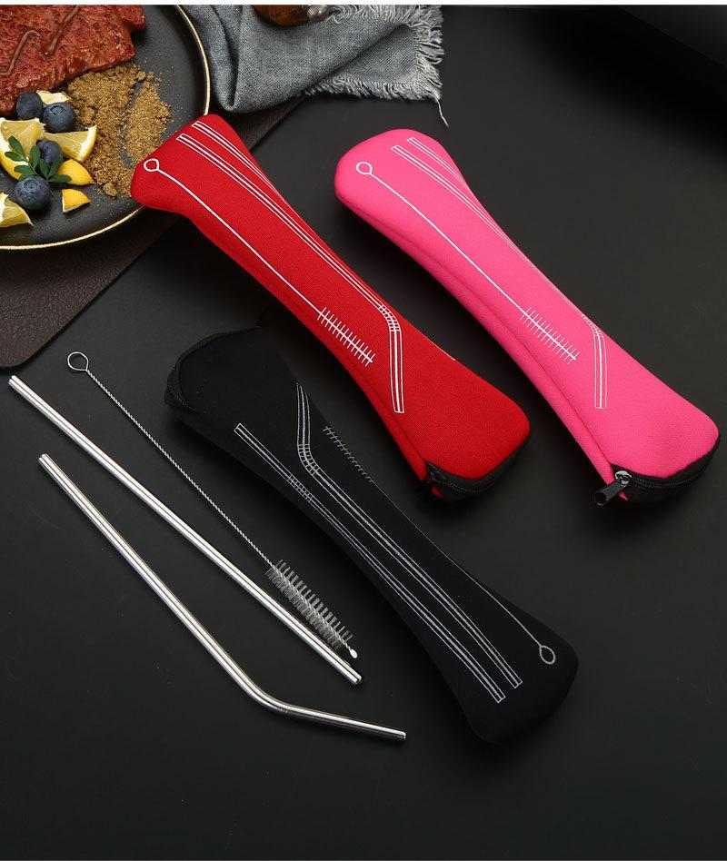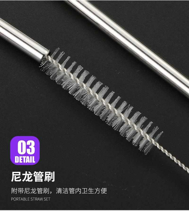 Pajita de acero inoxidable 304 transfronteriza de tres piezas con bolsa de tela, traje de pajita de metal, traje de pajita para taza de té con leche para beber