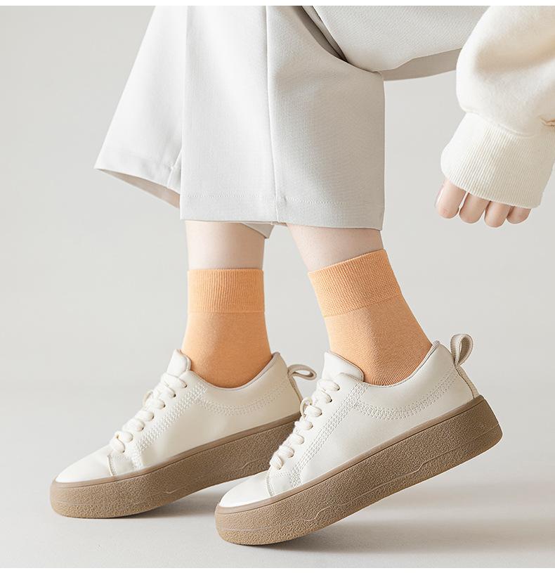 Calcetines para Mujer Primavera y Verano Algodón Puro Media Caña Color Sólido Absorbentes del Sudor y Desodorantes Calcetines Simples Delgados Algodón sin Costuras Calcetines de Algodón para Mujer al Mayoreo