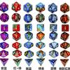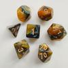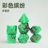 Especificación:Los 7 sets son:20 caras, 12 caras, 10 caras 0-9, 100 caras 00-90, 8 caras, 6 caras, 4 caras, 1 pieza cada uno (7 piezas/juego)