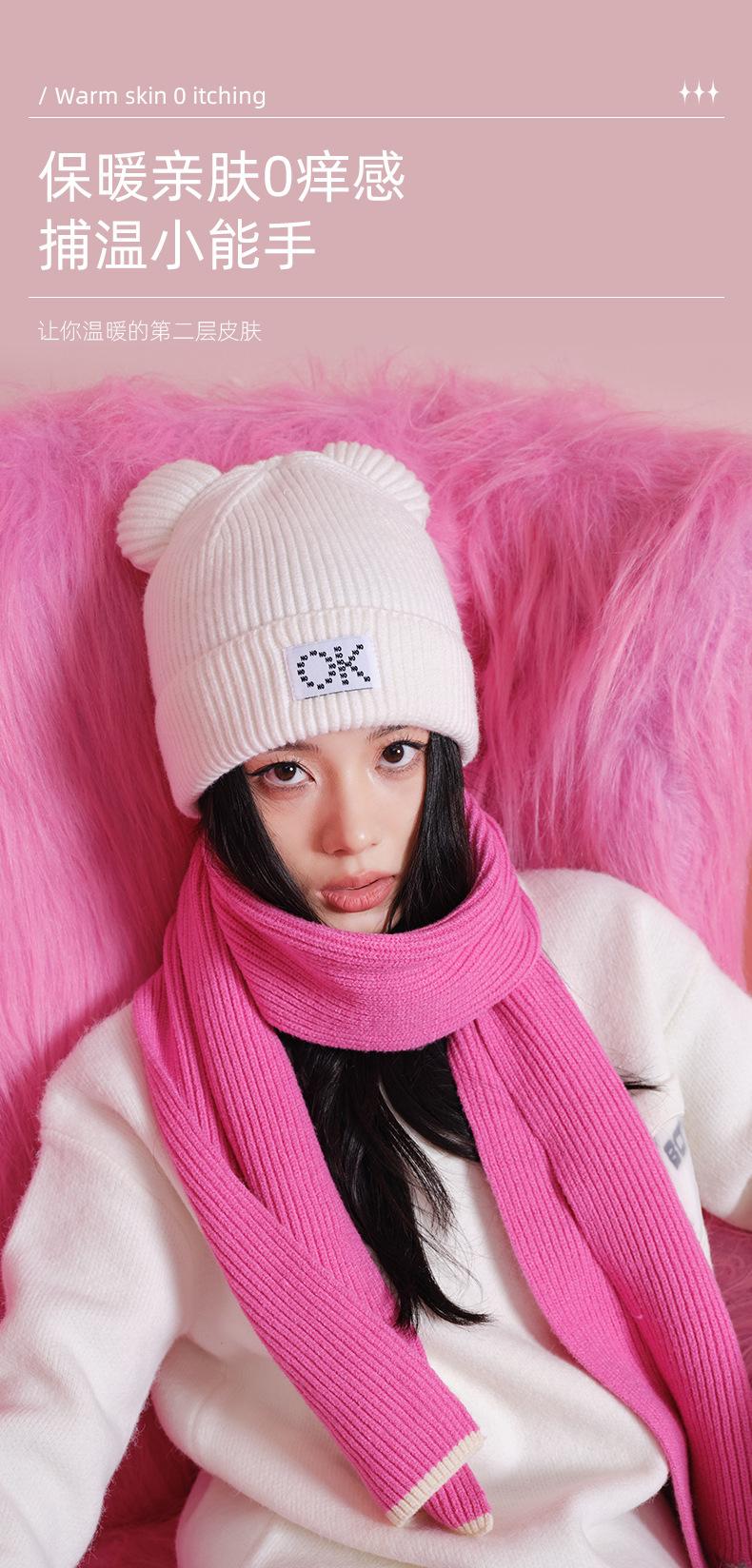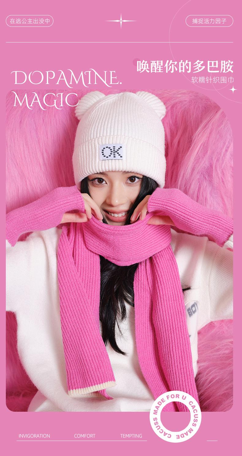 Bufanda de punto sencilla de estilo coreano para mujer, cálida bufanda de pareja de otoño e invierno, color dopamina, bufanda de estudiante versátil y de moda