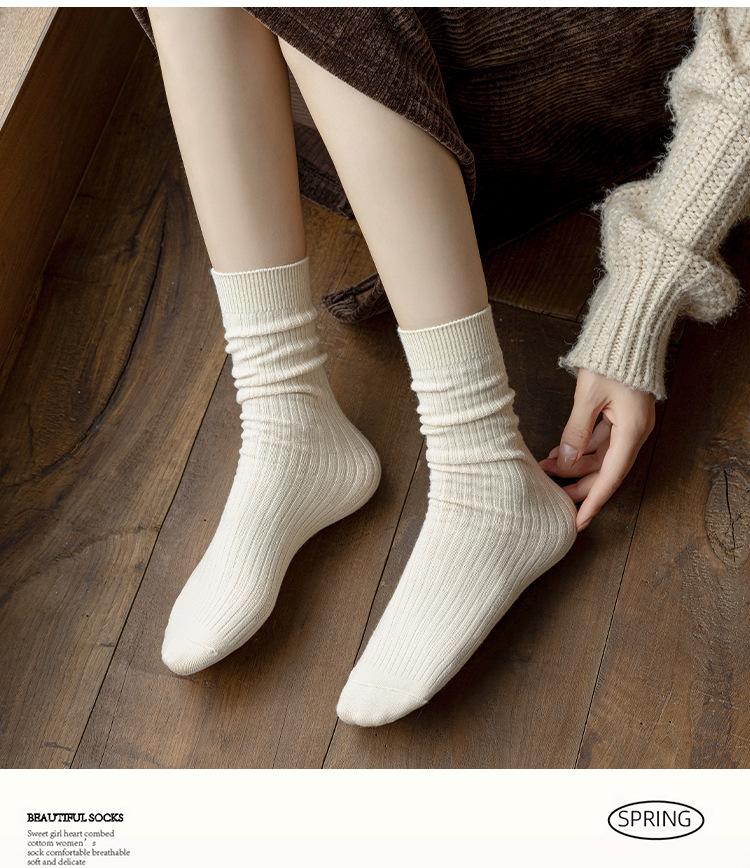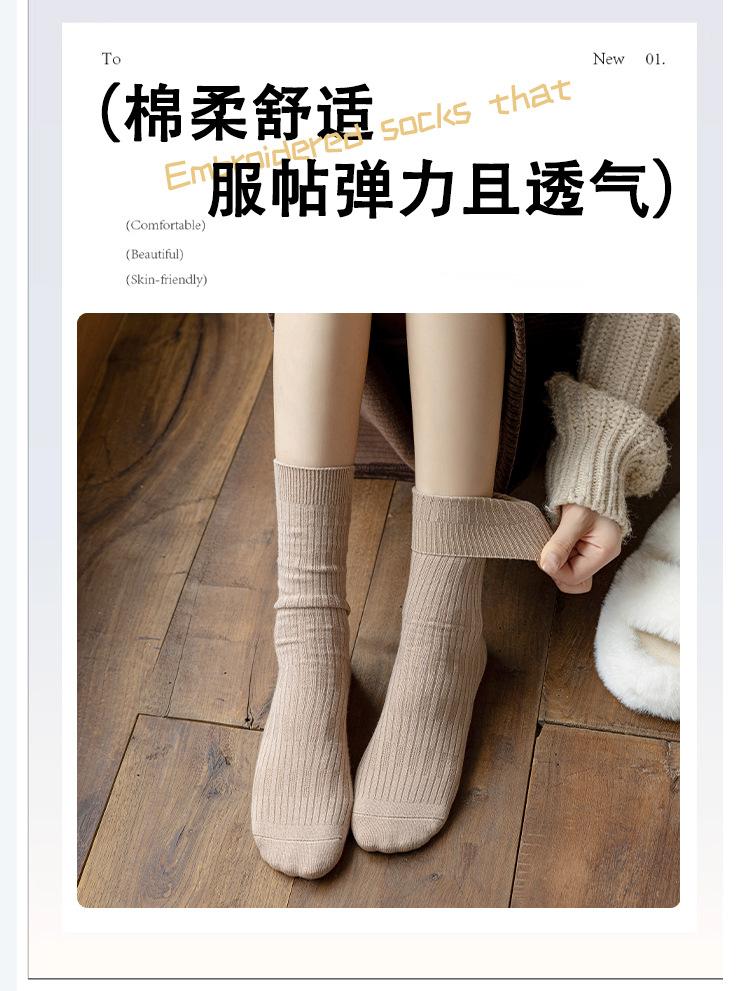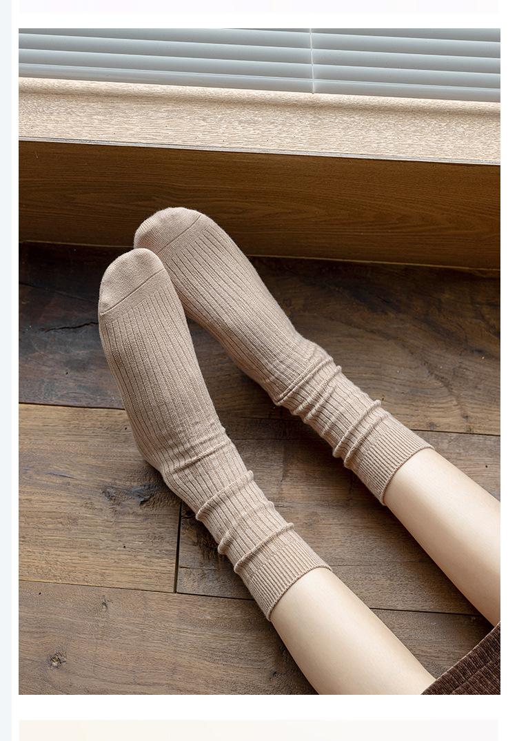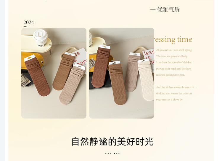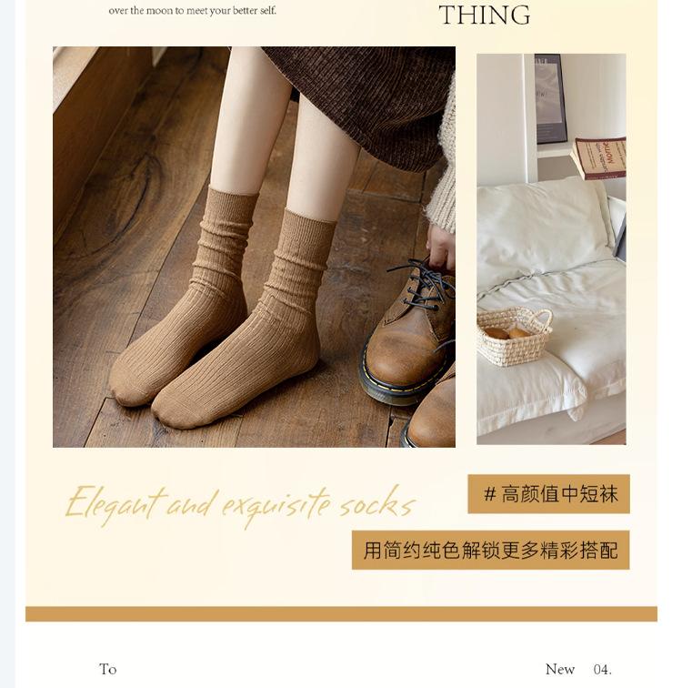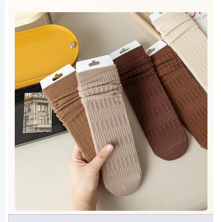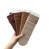 Calcetines de mujer de otoño e invierno, rectos, de doble aguja, para mujer, sencillos, marrones, apilados, de color liso, de moda, nuevos.