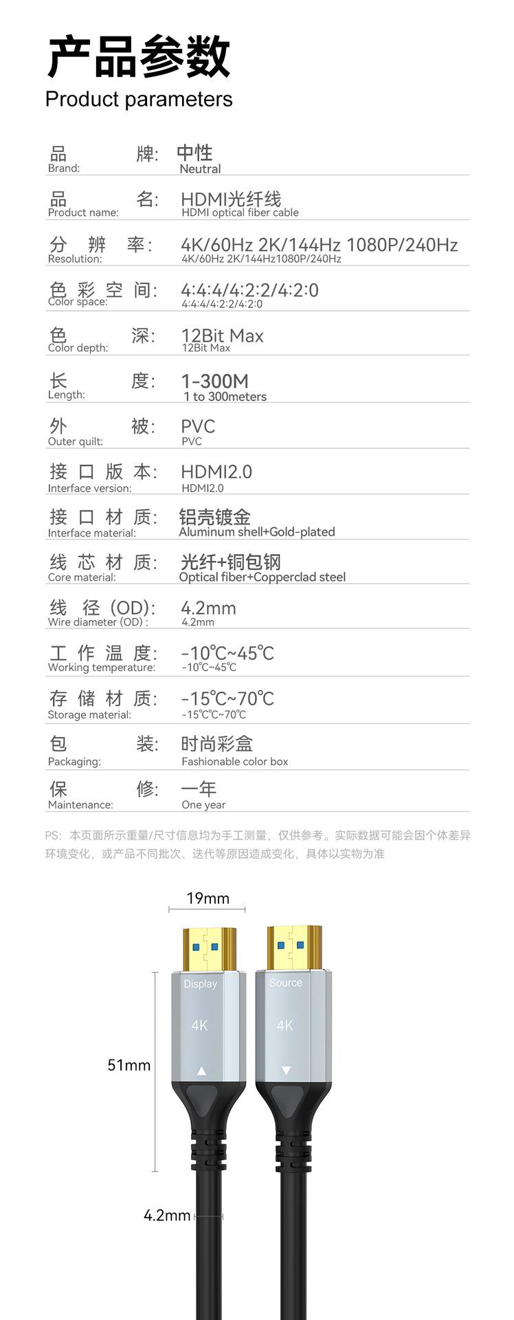 Fabricante Venta al por Mayor Cable HDMI de Fibra Óptica Versión 2.0 TV Laptop Monitor Proyección Cable HDMI 4K HD