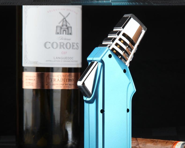 Encendedor de cigarros recto Zhongbang 583, a prueba de viento, con pistola rociadora, de metal, inflable, para cocina, repostería, caja de regalo