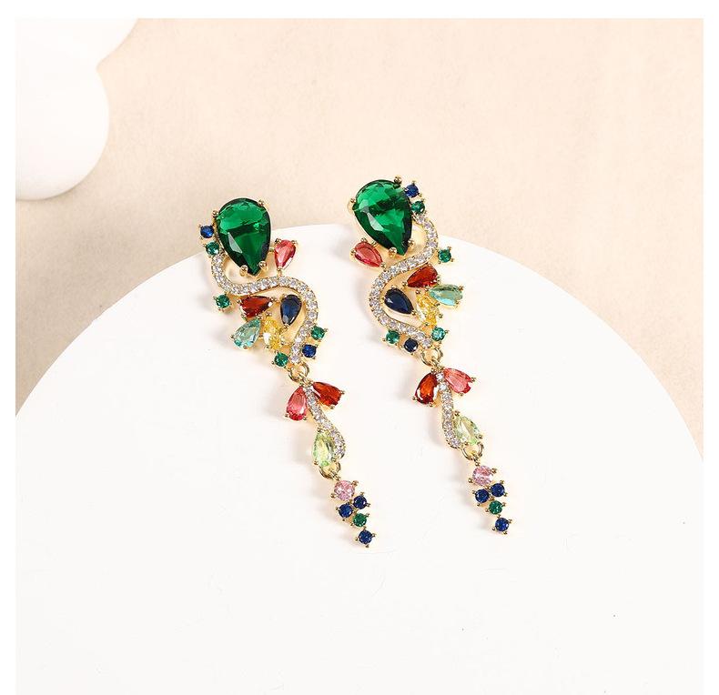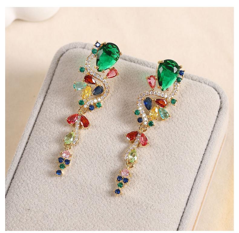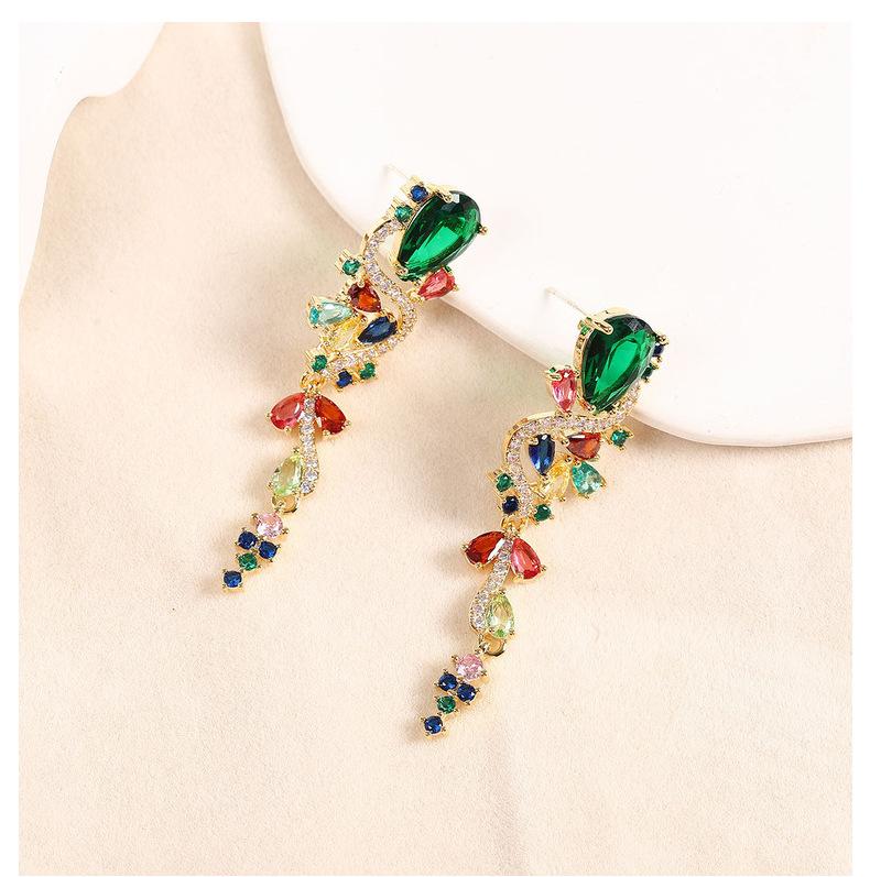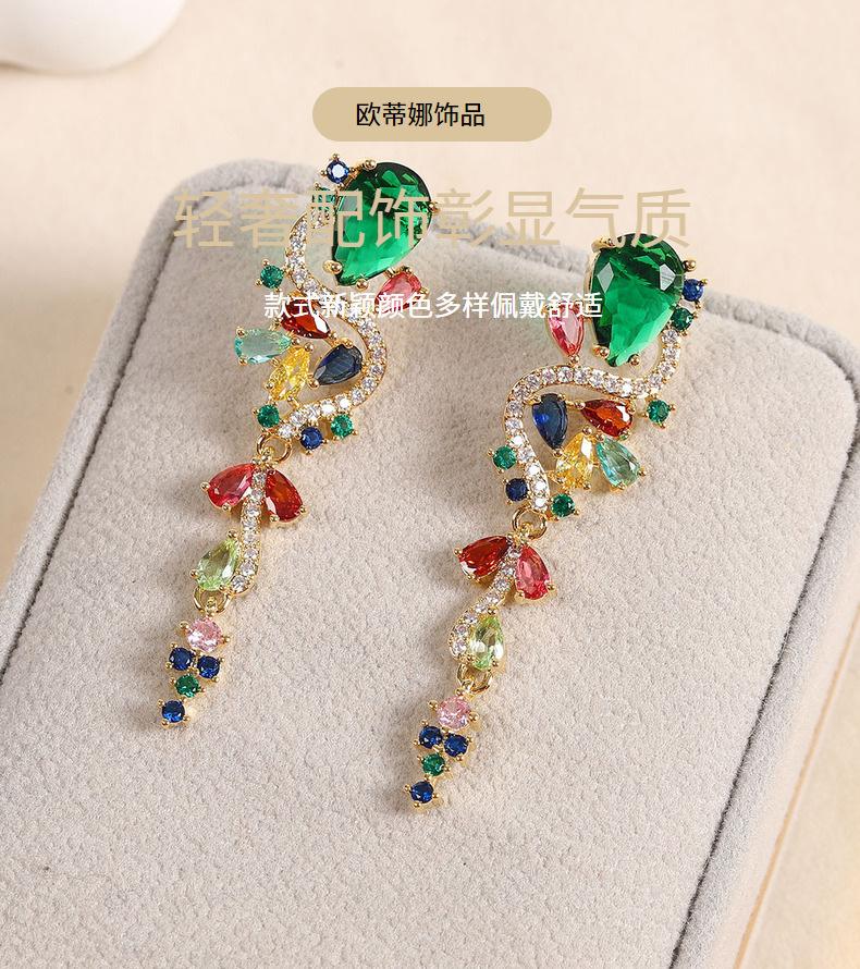 Compra Pendientes largos de lujo ligeros con textura, estilo nuevo, coloridos, con microincrustaciones de circonita y rama de olivo, a la moda, combinables con todo, al por mayor al por mayor en Joom.pro