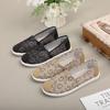 Primavera y verano, nuevos zapatos de tela antiguos de Beijing, zapatos individuales para mujer, zapatos de malla transpirable, zapatos de madre con suela suave antideslizante, zapatos planos para mujeres de mediana edad y mayores.