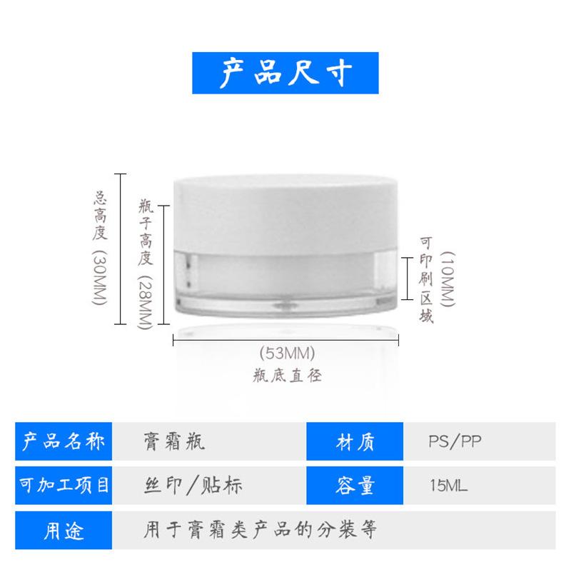 Botella de crema de 15 g con revestimiento de pared gruesa, crema de noche, crema blanqueadora, botella de crema de contorno de pared gruesa de 20 g, crema para ojos.
