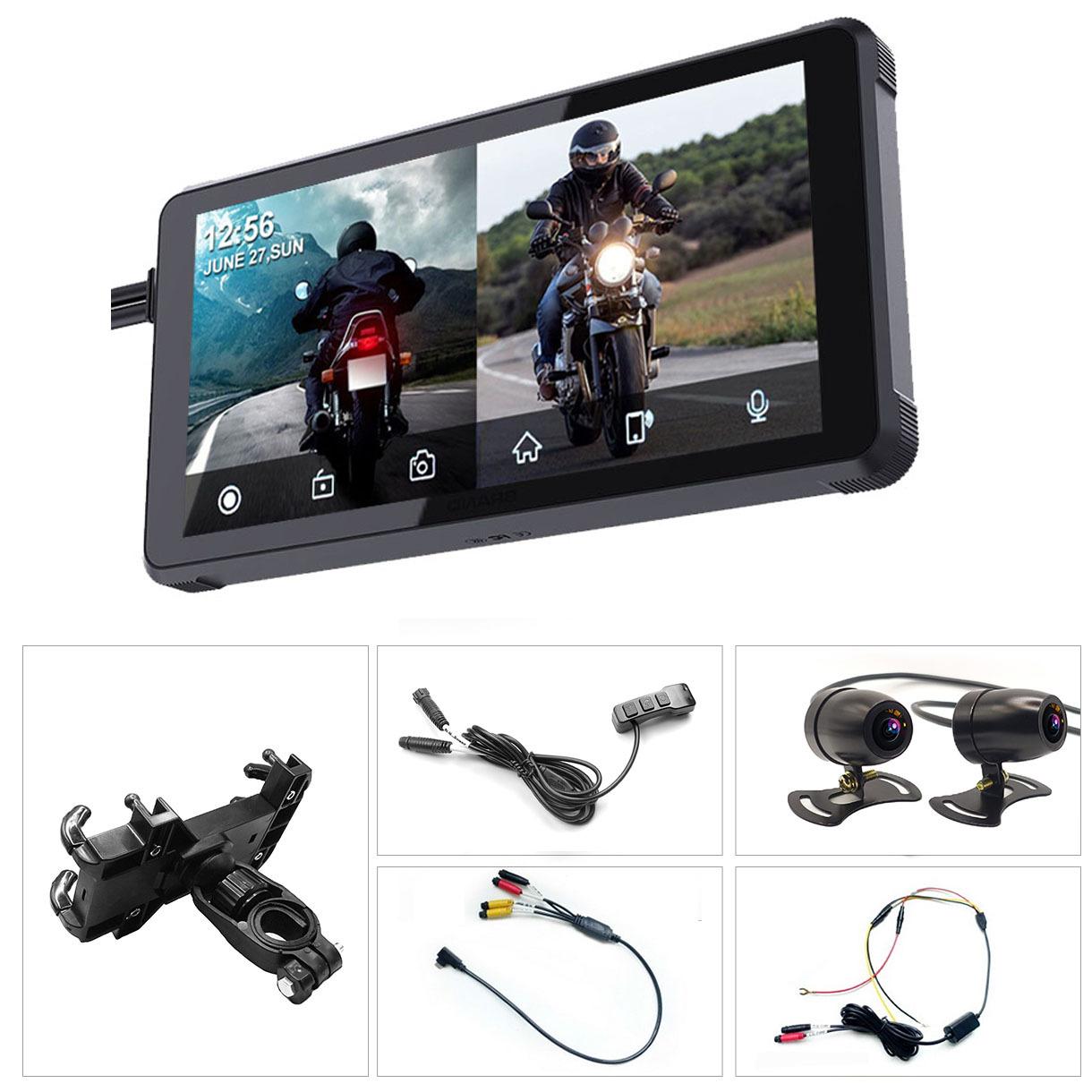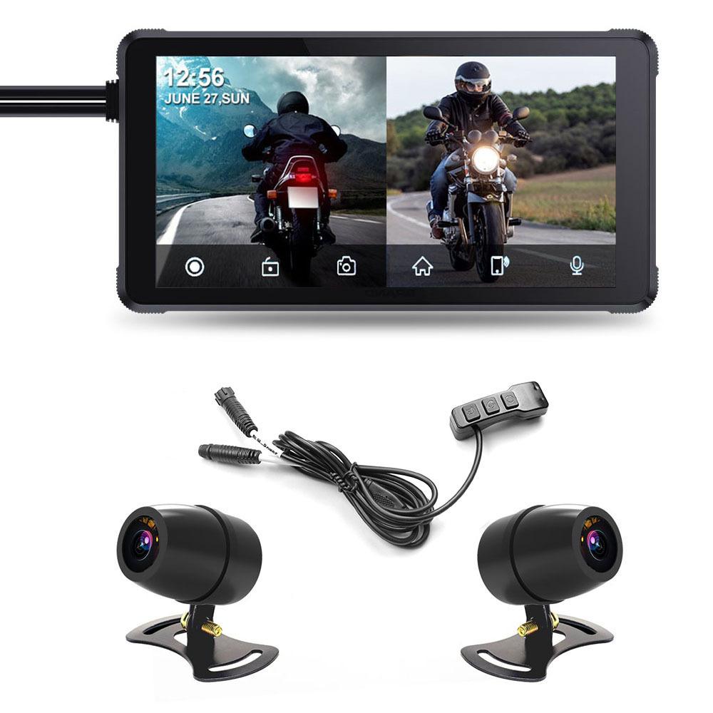Grabadora de conducción para motocicleta de 5.5 pulgadas Inalámbrico Carplay Proyección de pantalla Navegador Presión de neumáticos