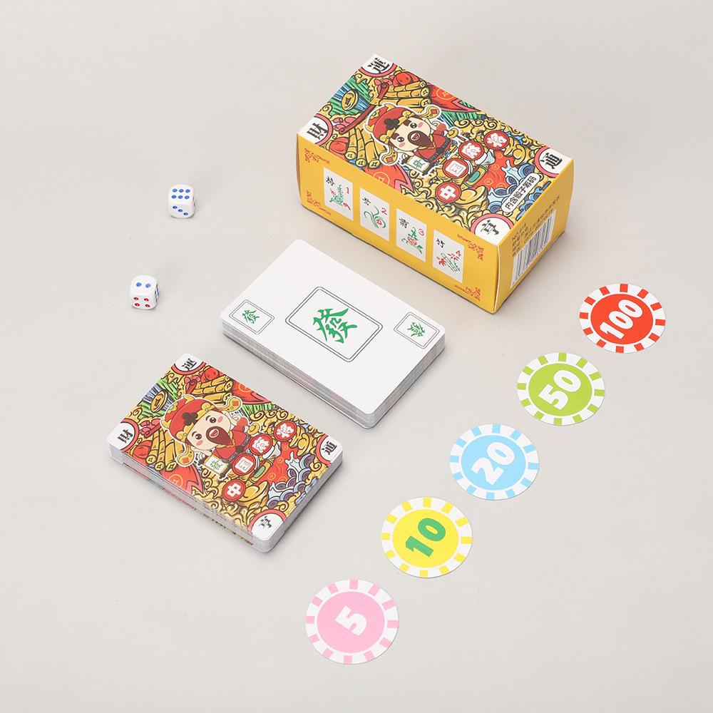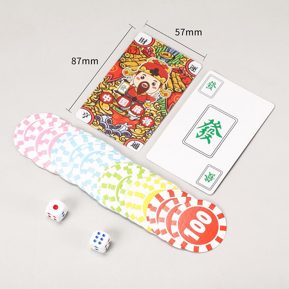 Cartas de Mahjong de Papel Versión Ancha Hogar Papel Engrosado Mahjong Mini Portátil Cartas de Mahjong 144 Piezas Incluyendo Dados Fichas