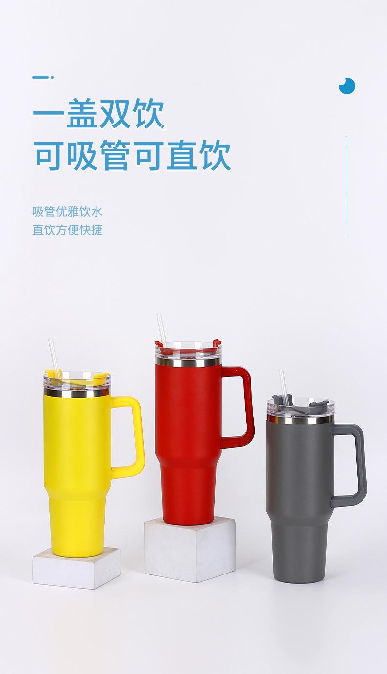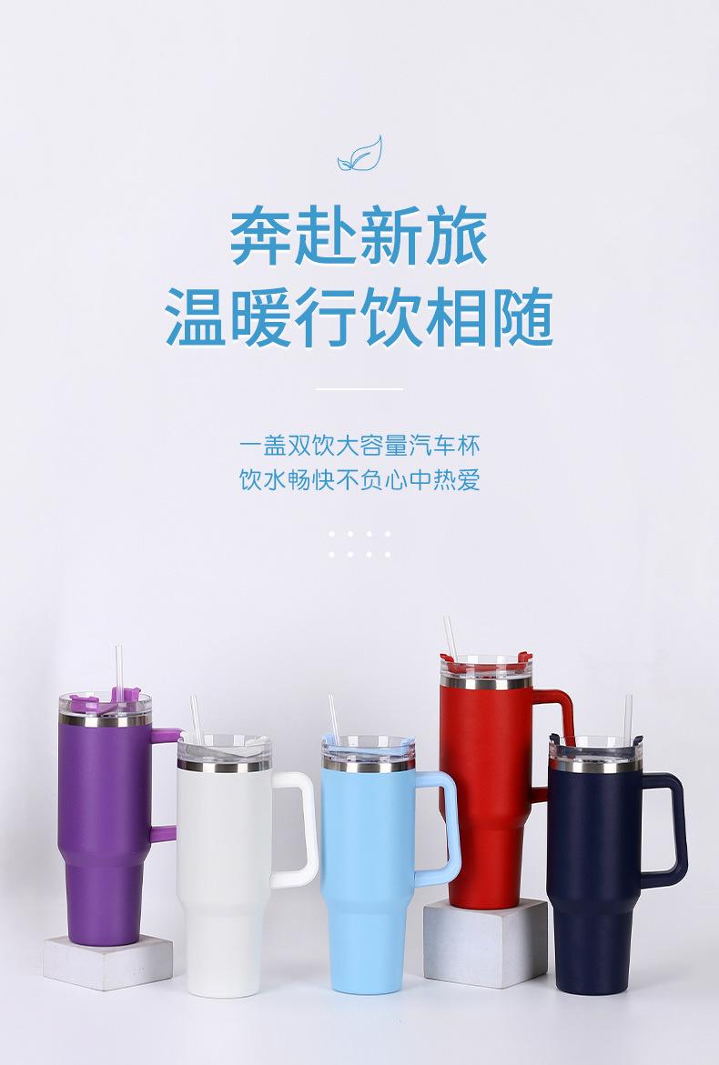 Compra Taza de coche de acero inoxidable 304 nueva para comercio exterior de 40 oz con asa, portátil para exteriores, con asa, taza con pajita, taza termo para coche al por mayor en Joom.pro