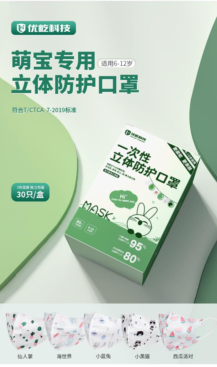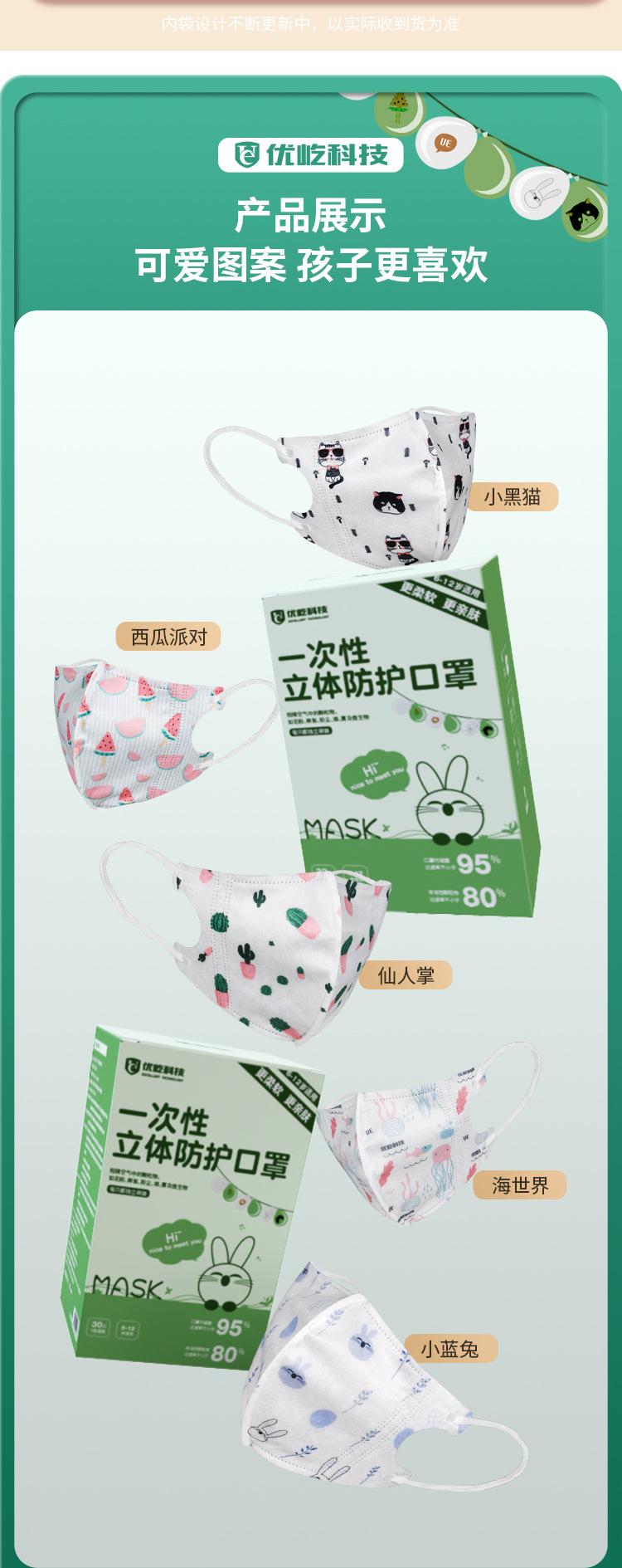 Venta al por mayor de fábrica para niños Máscara estéreo 3D desechable con logotipo personalizado impreso a prueba de polvo transpirable empaque independiente