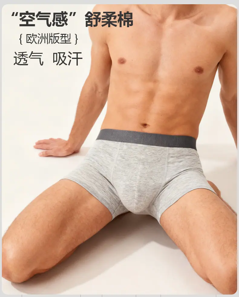 Calzoncillos Boxer de Algodón para Hombre, Cintura Media, Logo Láser, Cómodos, Amigables con la Piel, Transpirables, Talla Europea