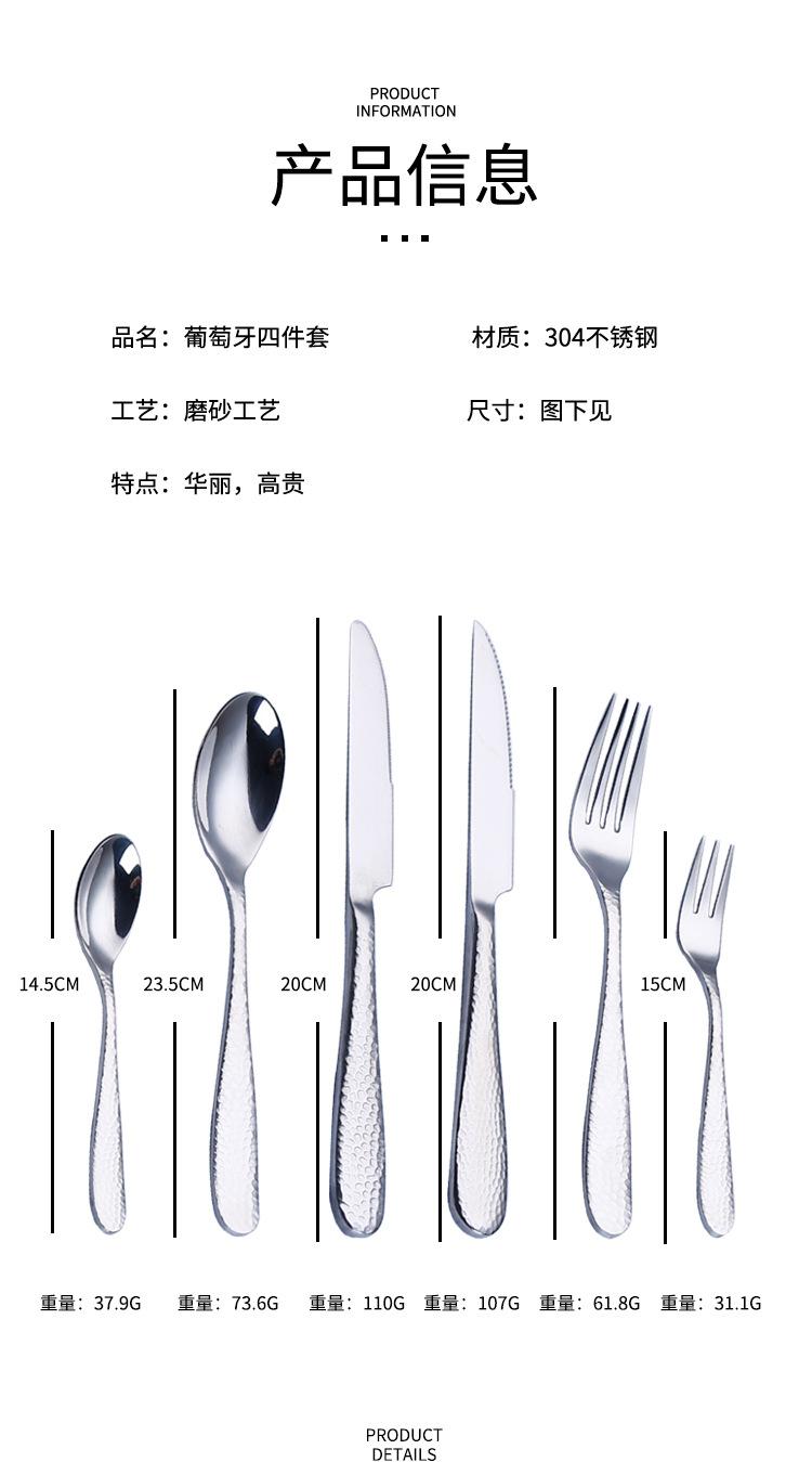 Vajilla Personalizada de Acero Inoxidable 304 Cubo de Agua Hotel Acero Inoxidable Cuchillo para Bistec, Tenedor y Cuchara Cuchara de Postre Tenedor para Fruta Juego