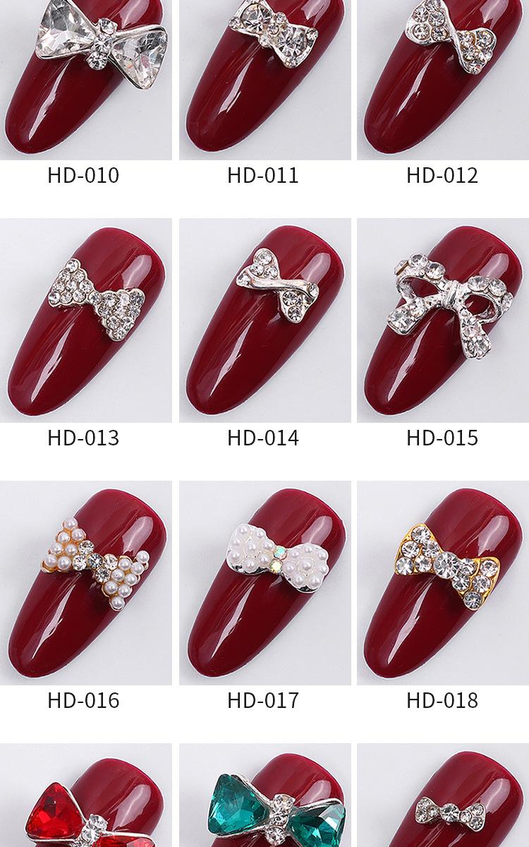 Joyería al por mayor para arte de uñas lazo joyería de aleación para arte de uñas lazo de perlas y diamantes uña uña taladro de uñas HD-001