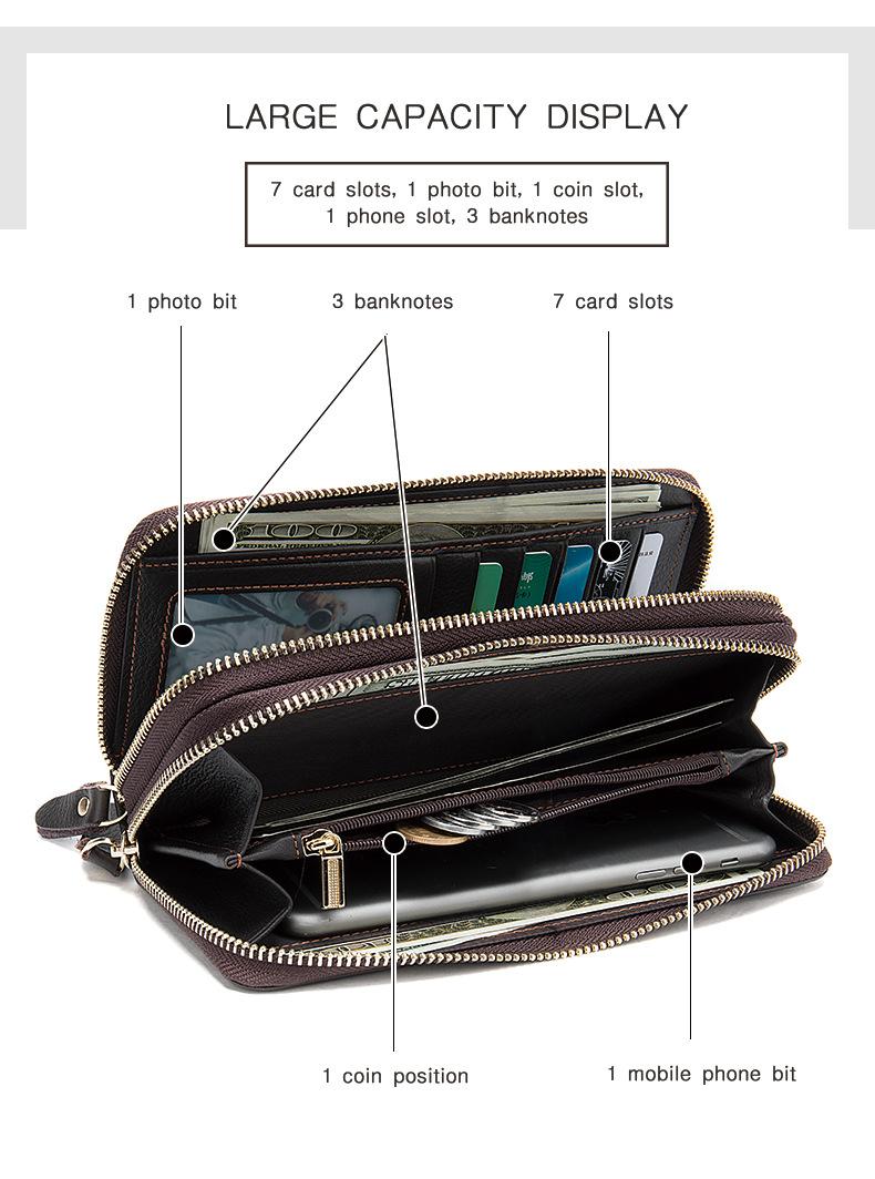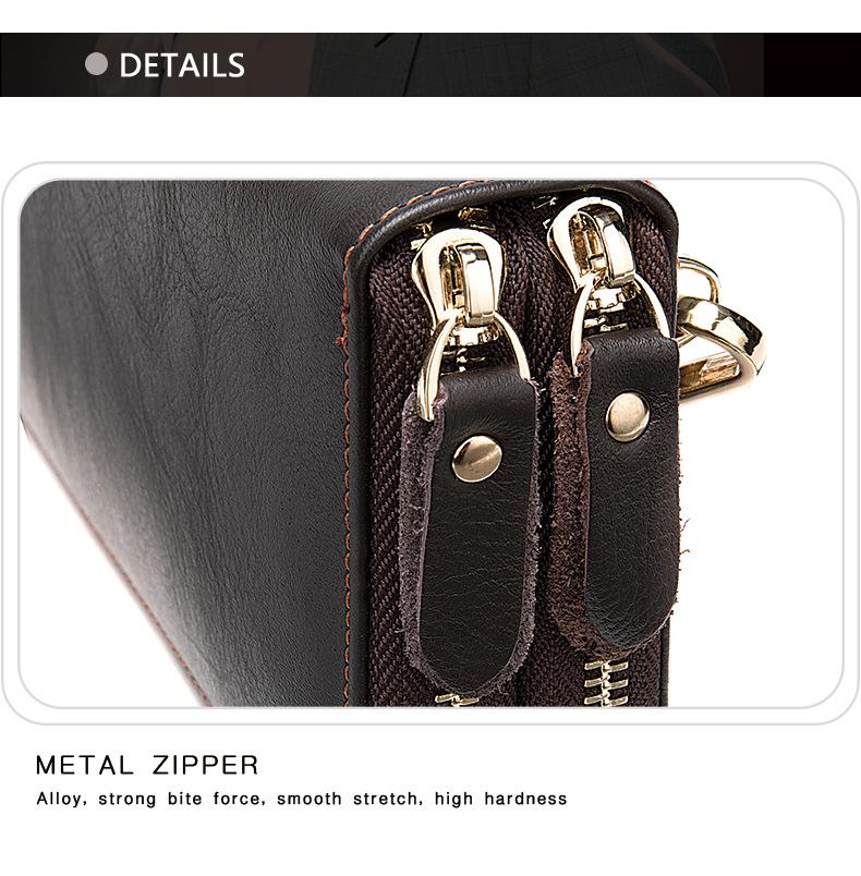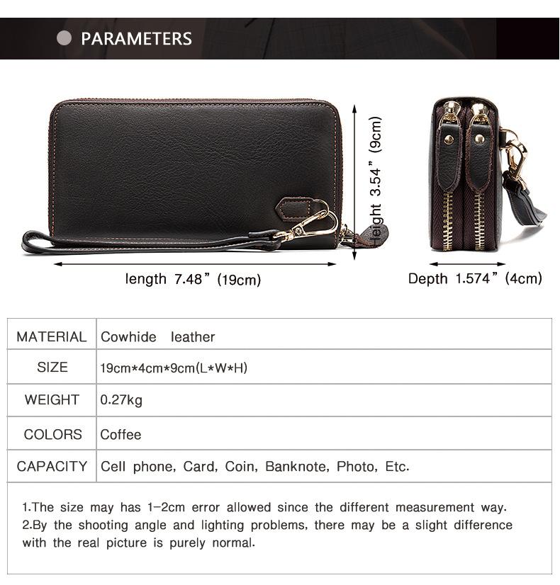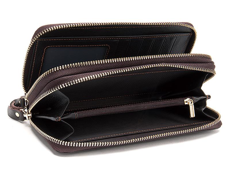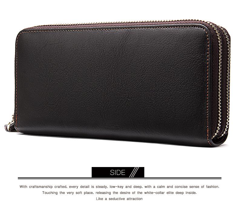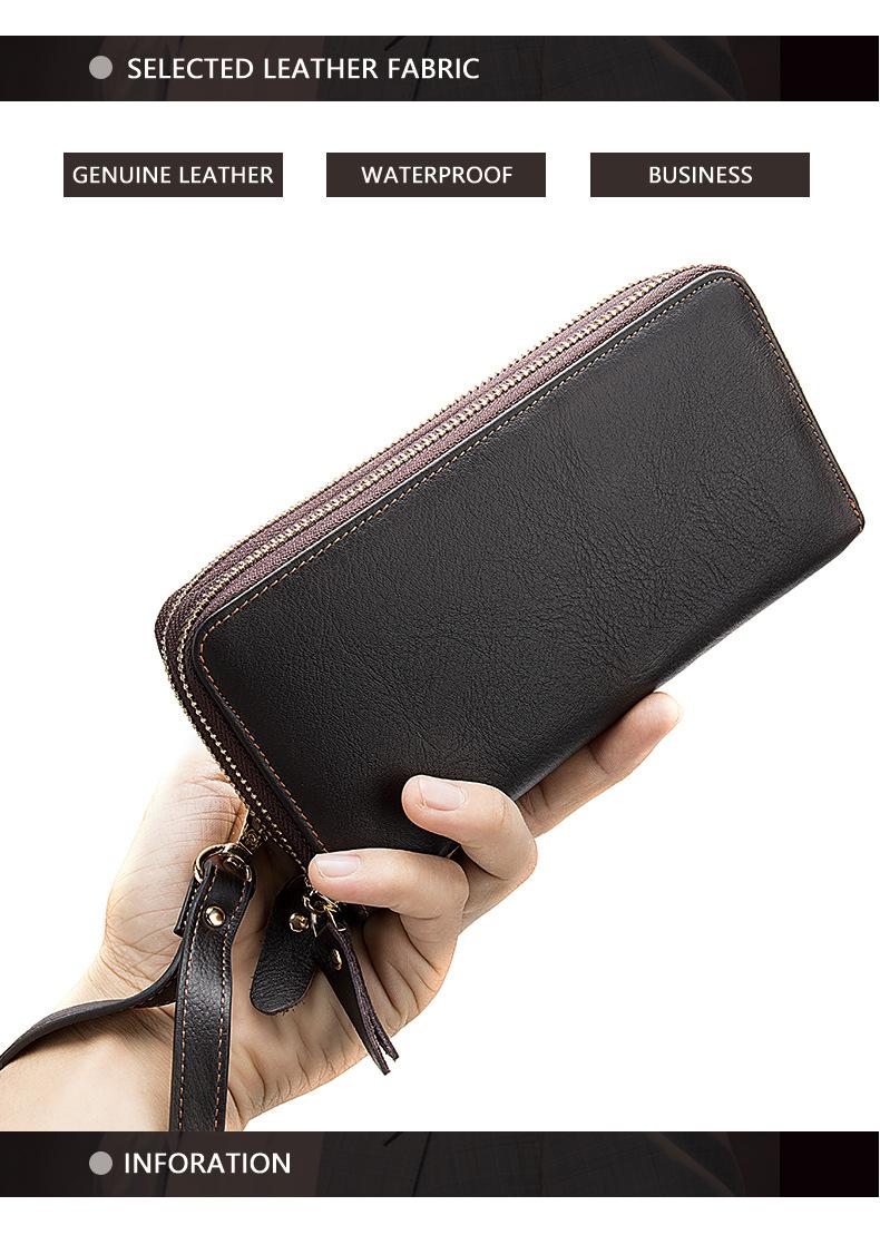 Cartera de hombre con dos bolsillos, billetera larga con ranuras para múltiples tarjetas, bolso de mano de cuero genuino para hombre, bolso de mano, negocio de suministro transfronterizo