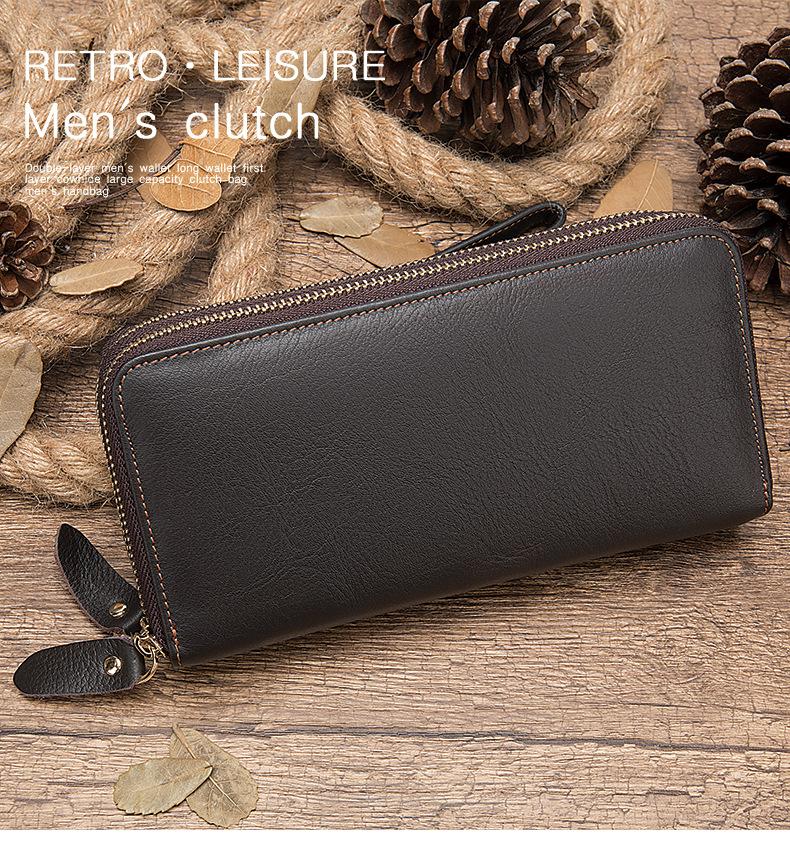 Gran oferta, cartera de mano de cuero genuino para hombre, bolso de mano informal de moda con personalidad, cartera retro con ranura para múltiples tarjetas 9019