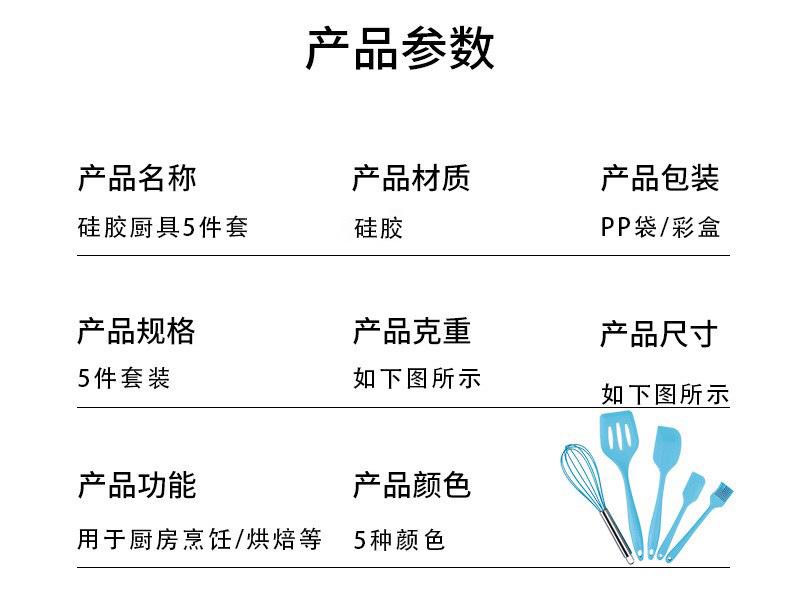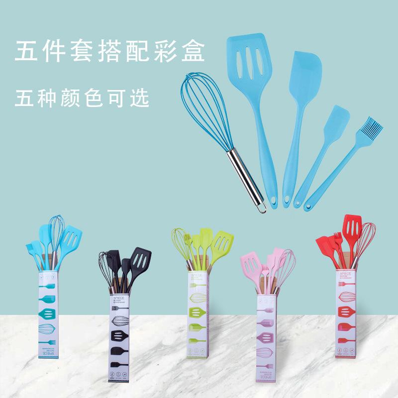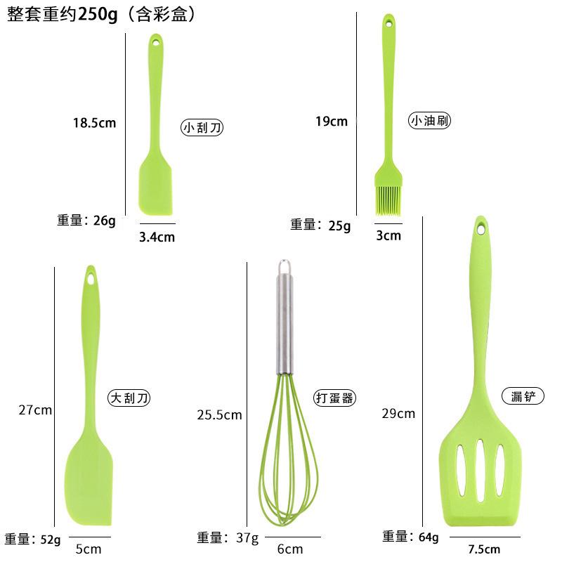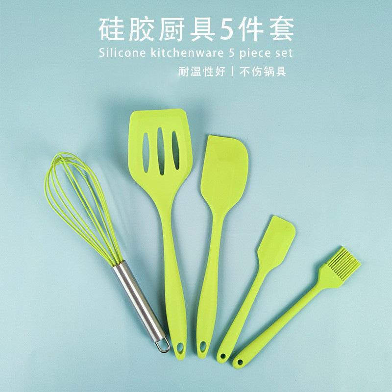 Juego de 5 piezas de silicona para hornear, raspador, cepillo de aceite, pala, batidor de huevos, juego de herramientas para hornear resistente a altas temperaturas, stock listo de fábrica