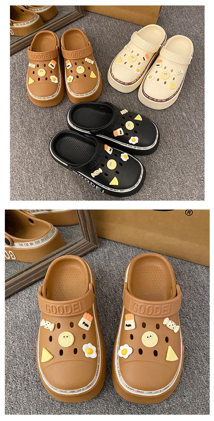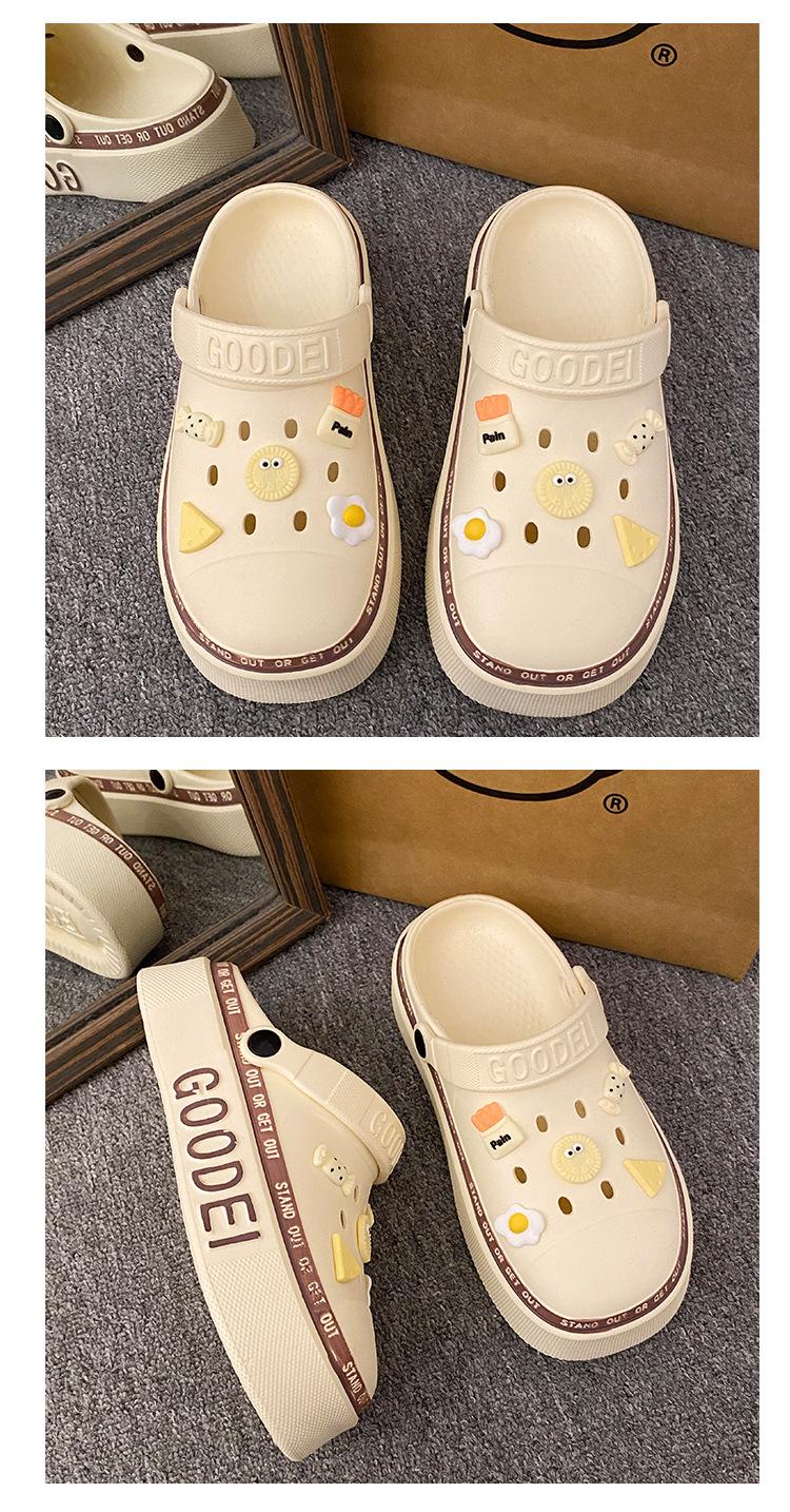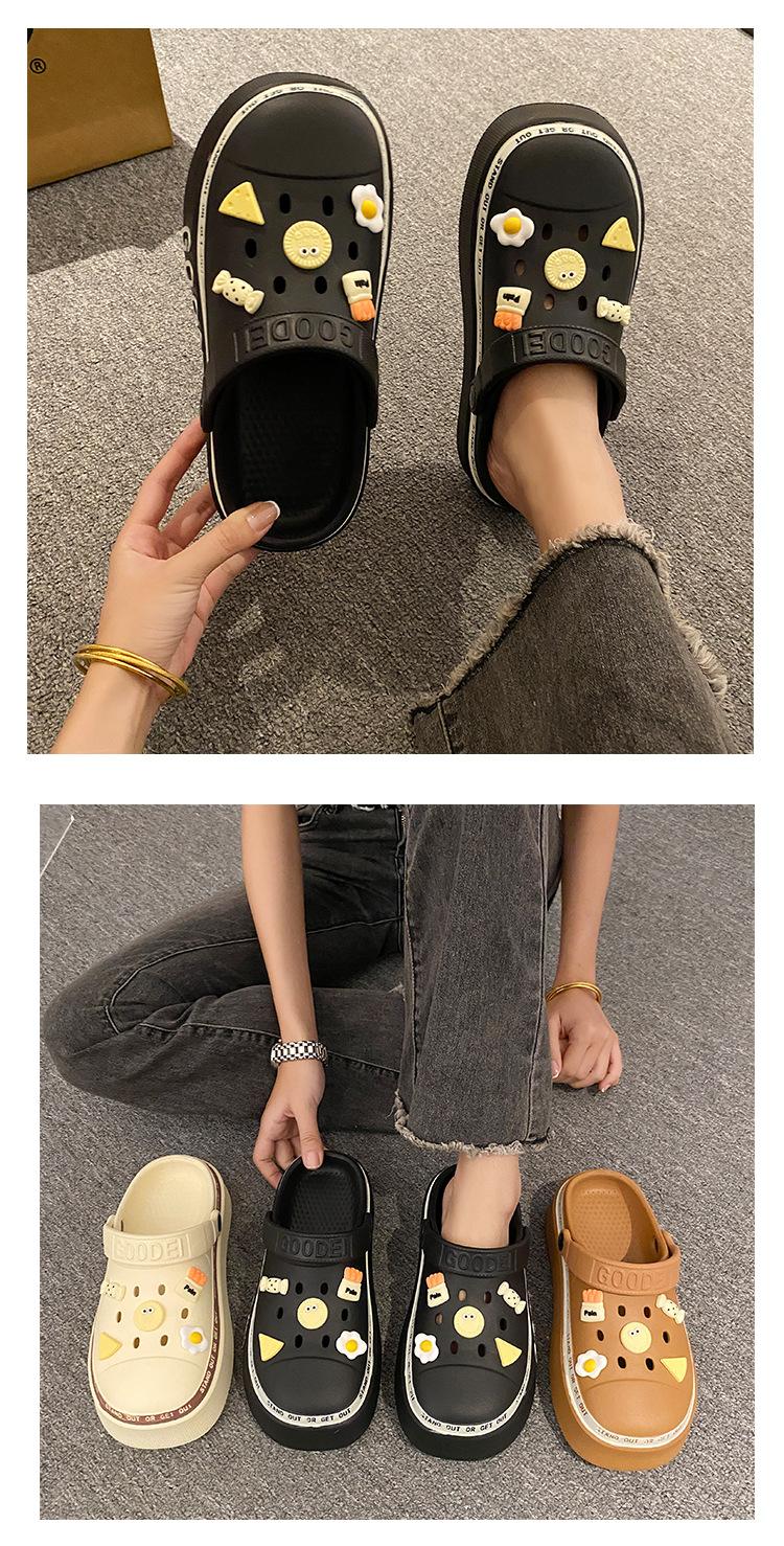 Zapatos de mujer con agujeros, verano 2024, nuevos zapatos de playa al aire libre con suela gruesa, sensación de caída, sandalias de punta cerrada que combinan con todo para mujer
