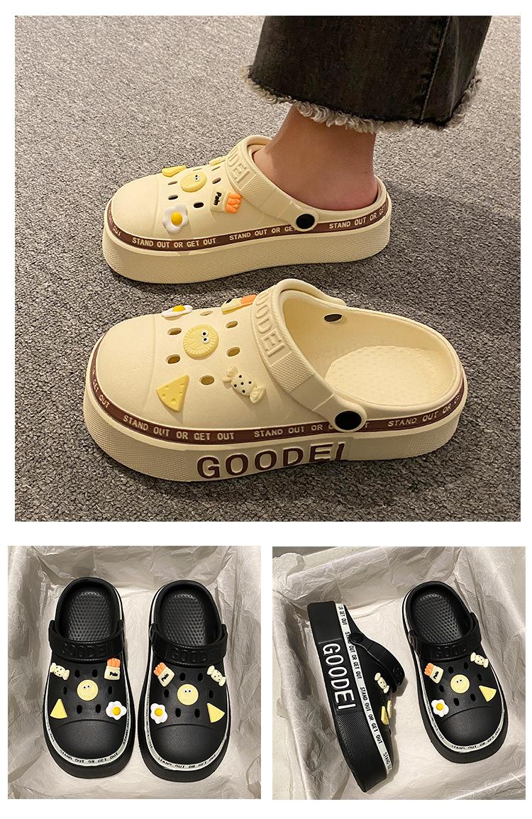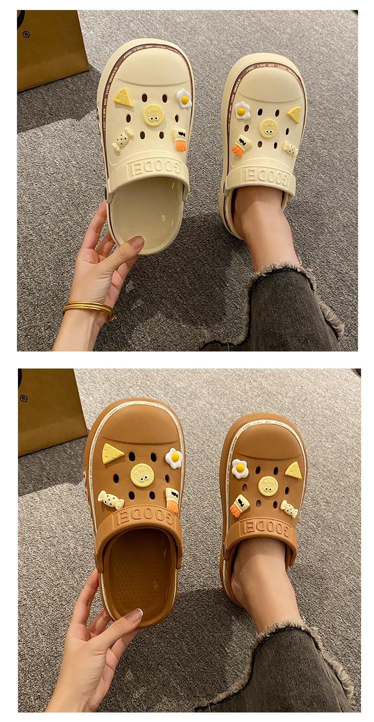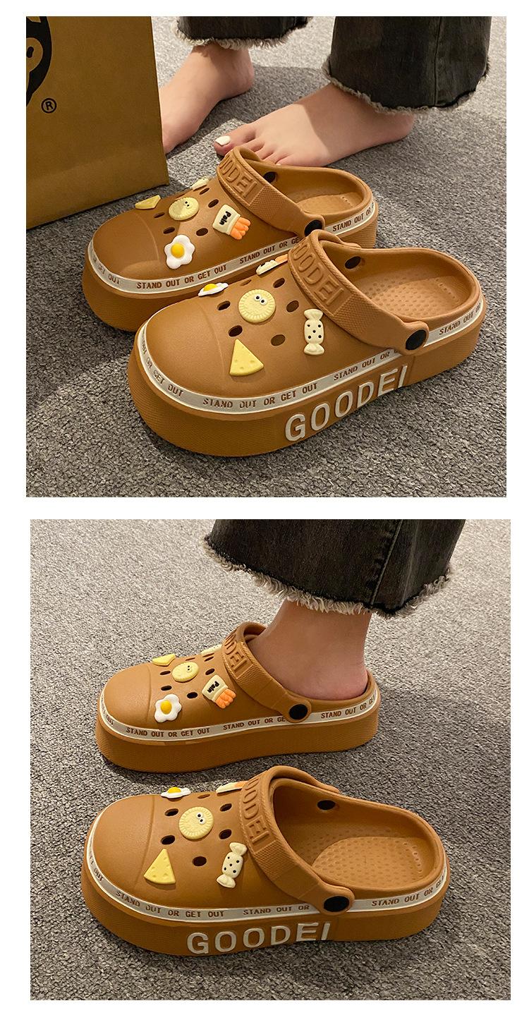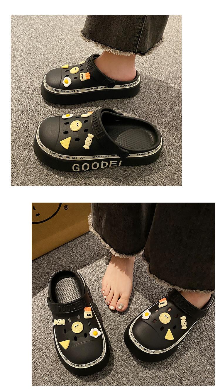 Zapatos de mujer con agujeros, verano 2024, nuevos zapatos de playa al aire libre con suela gruesa, sensación de caída, sandalias de punta cerrada que combinan con todo para mujer