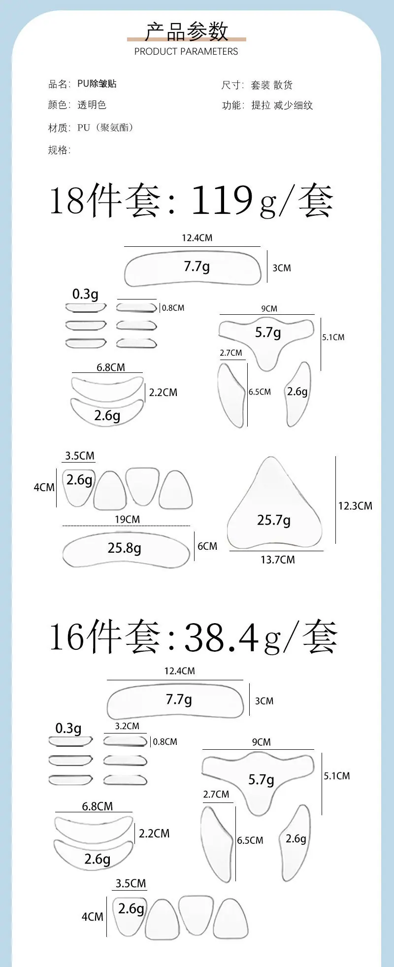 Angel face sticker, Forehead patch, T shape, Eye patch, Neck patch, Stomach patch, 6 piece set, 8 piece set, 1...