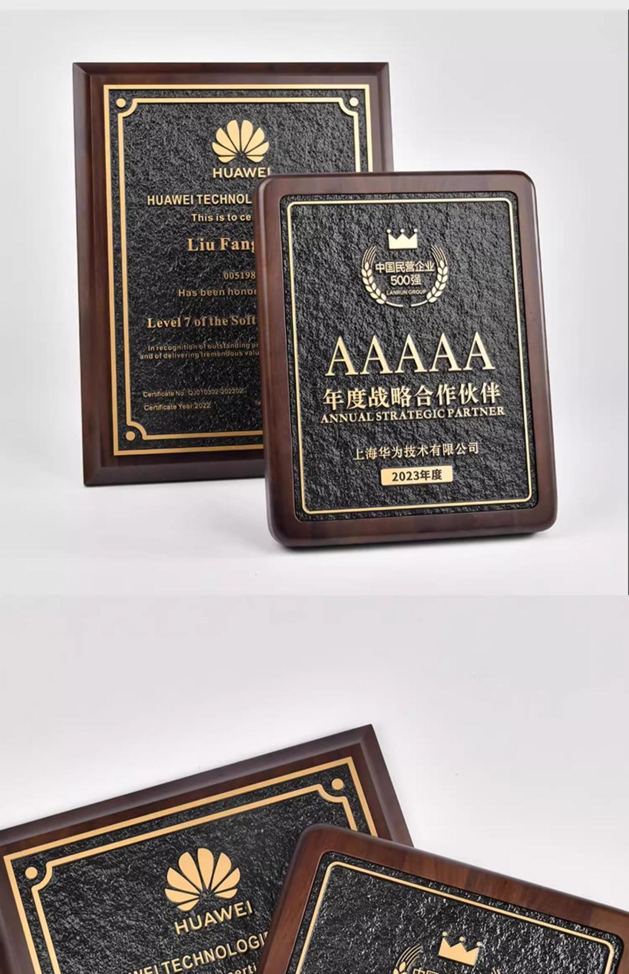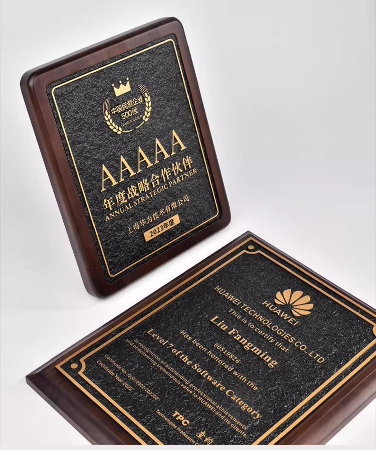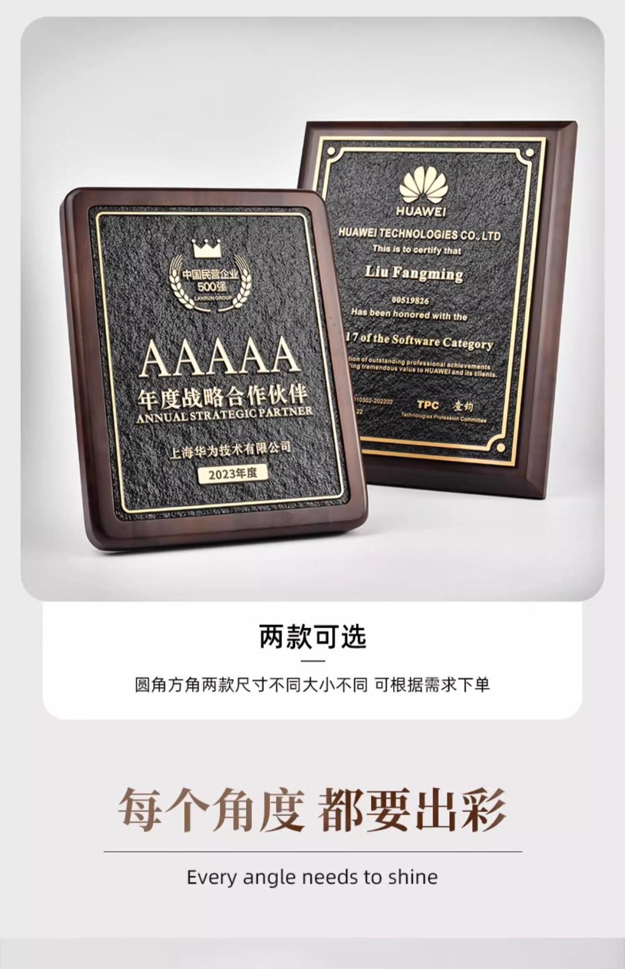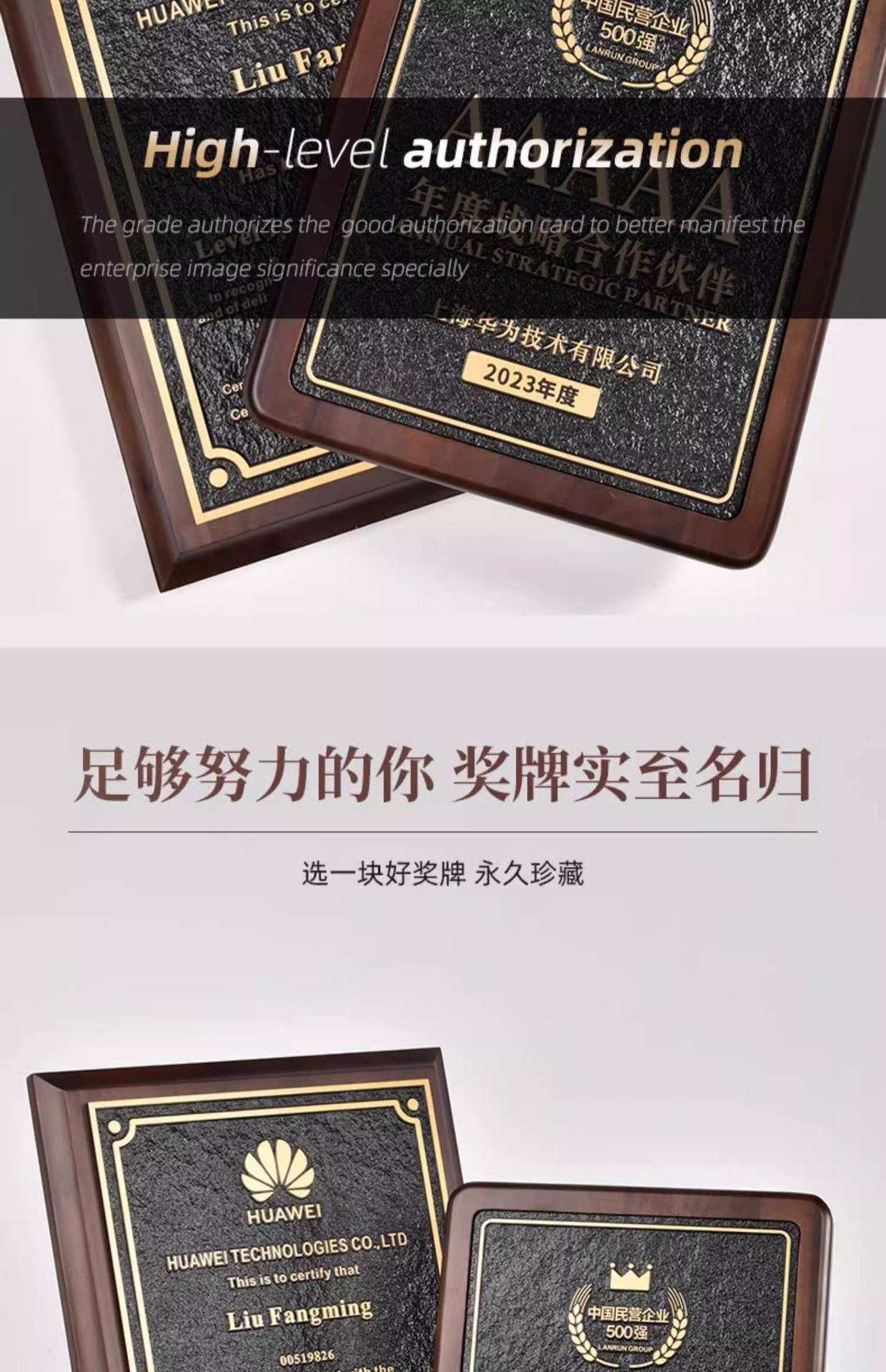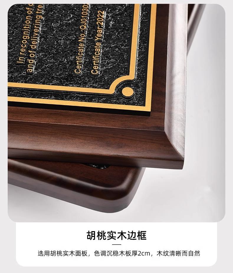 Madera maciza tarjeta de licencia madera nogal medalla acrílico franquiciado creativo metal trofeo de honor placa de alta gama
