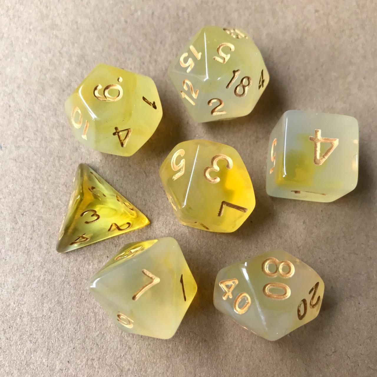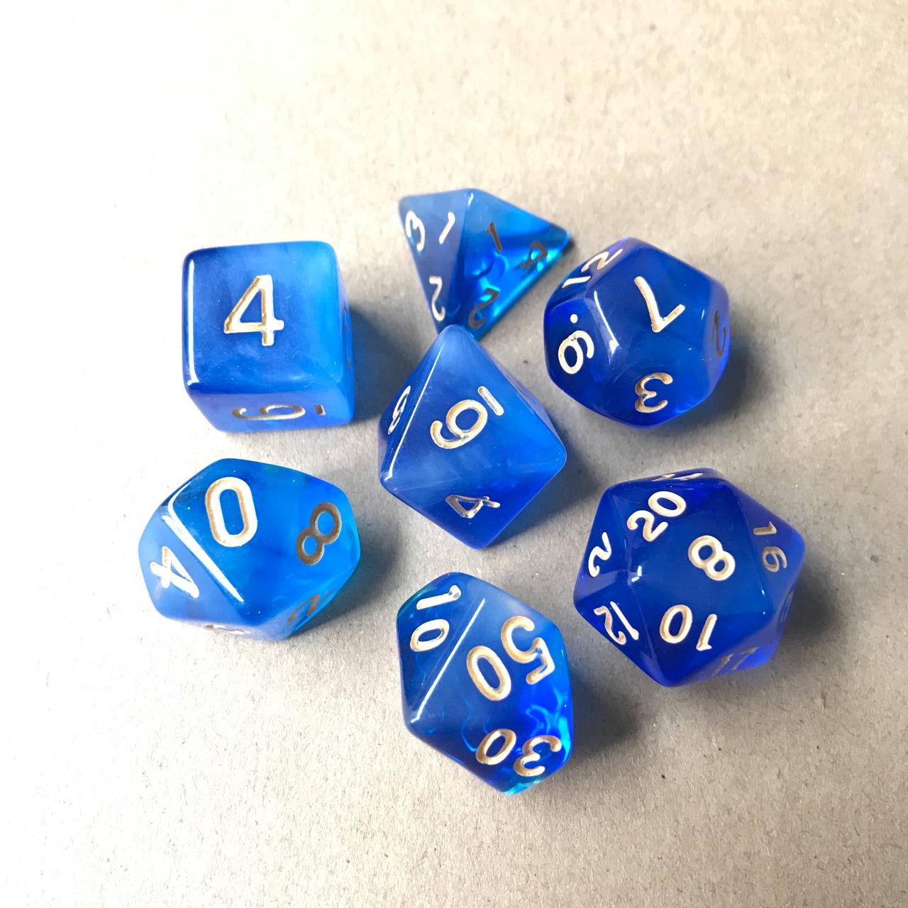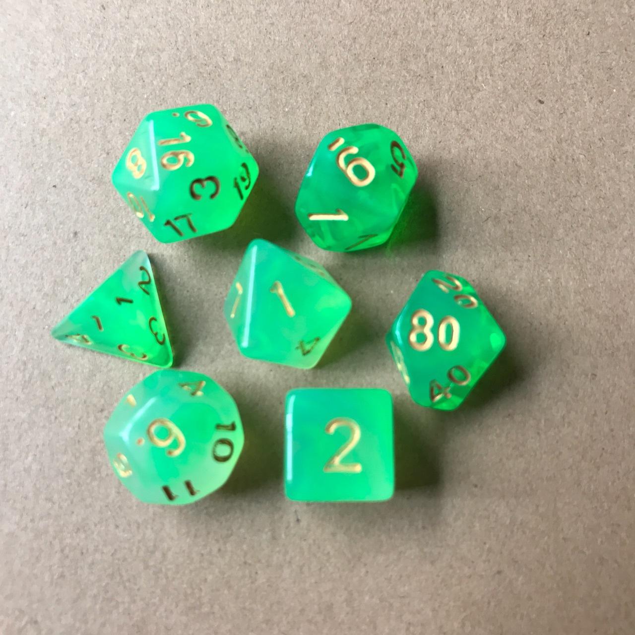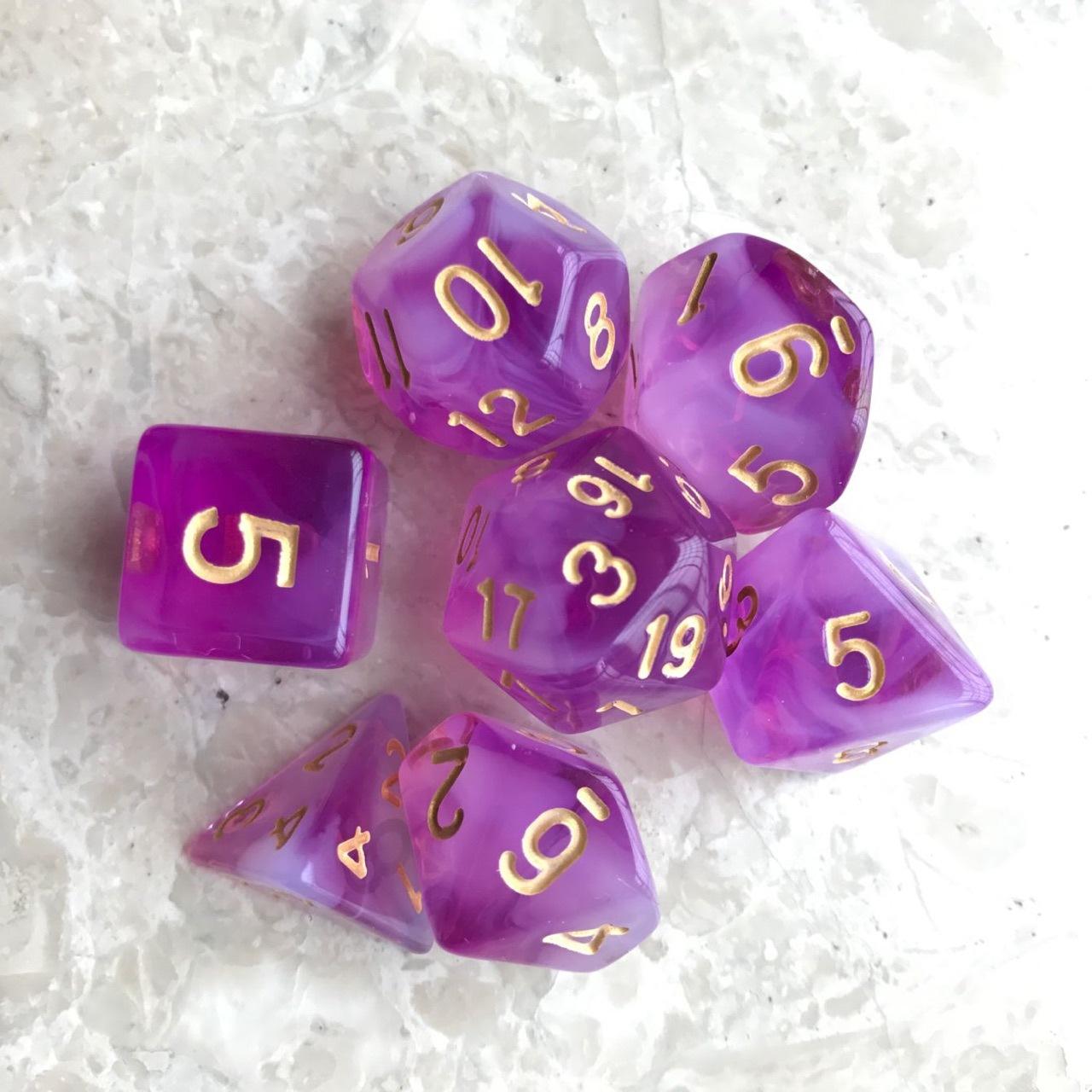 Especificación:Los 7 juegos son: 20 caras, 12 caras, 10 caras 0-9, 100 caras 00-90, 8 caras, 6 caras, 4 caras, 1 pieza cada uno (7 piezas/juego)