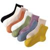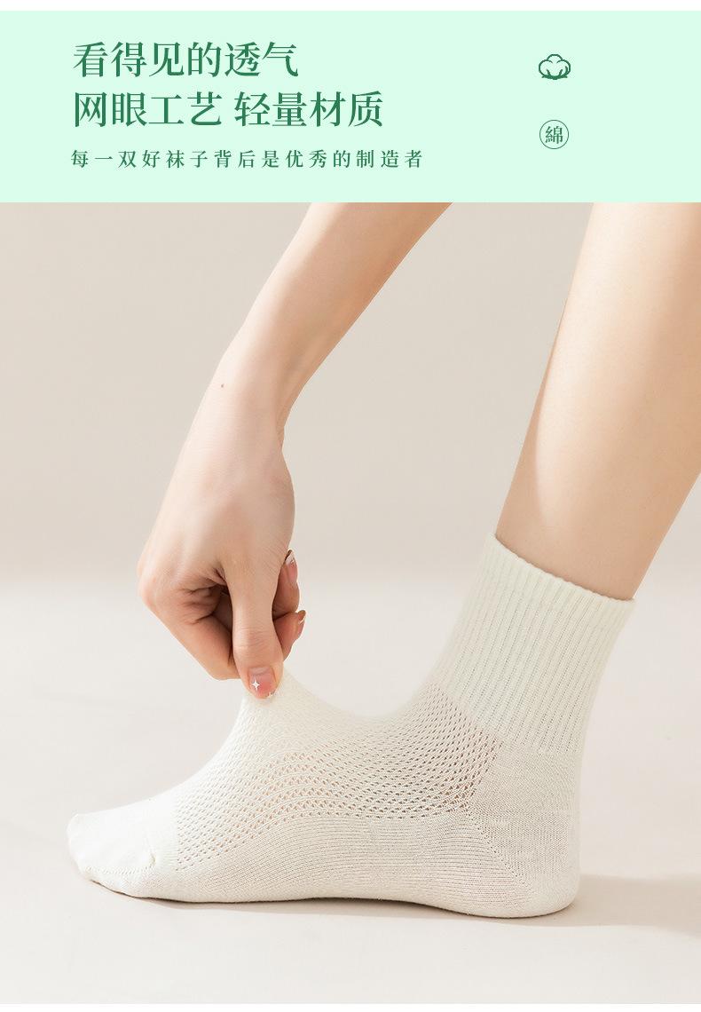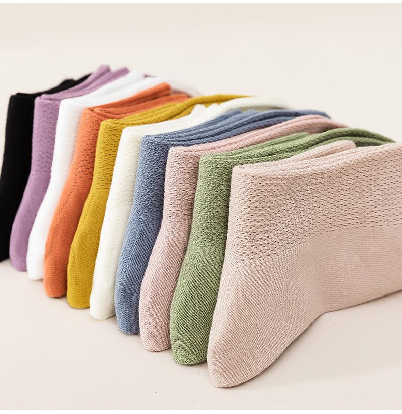 Calcetines de algodón para mujer primavera y verano color sólido malla transpirable desodorante deportivos media pantorrilla calcetines sin costura para mujer entrega de una pieza