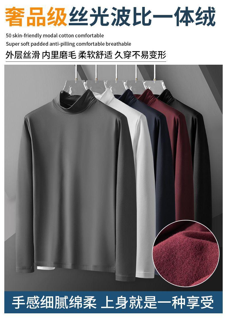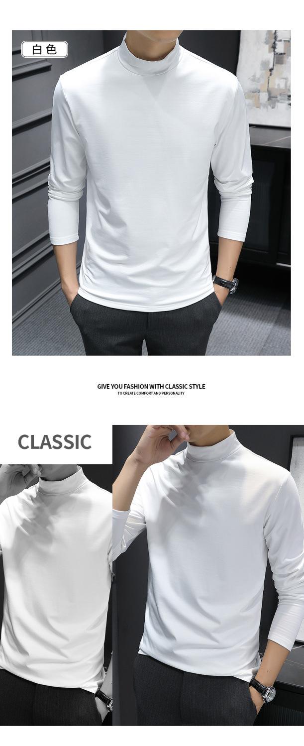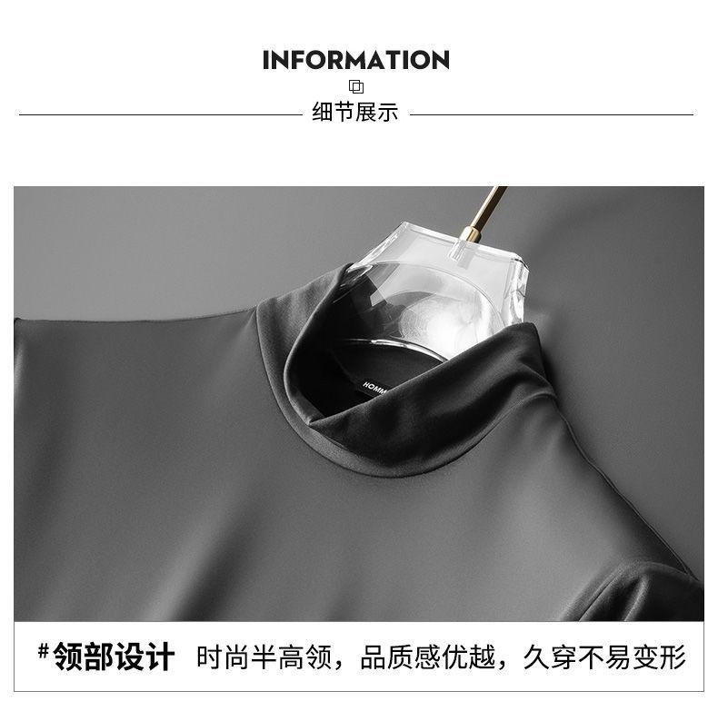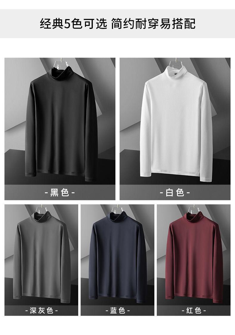 Camiseta ligera de lujo de primavera y otoño con cuello alto y manga larga para hombre, ropa de otoño, ropa interior cálida de color sólido con forro polar, moda para hombre