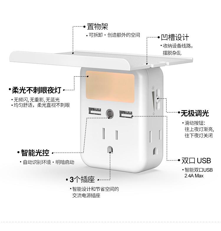 Estante de enchufe soporte de bandeja transfronterizo tira de luz de almacenamiento luz nocturna enchufe de pared para el hogar enchufe estándar americano