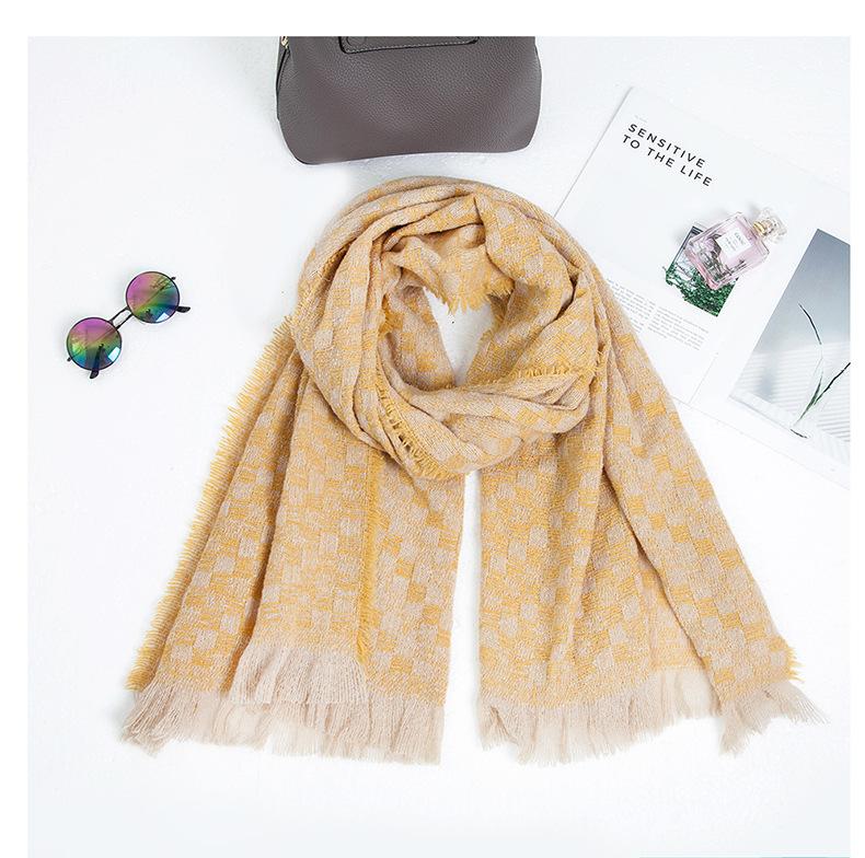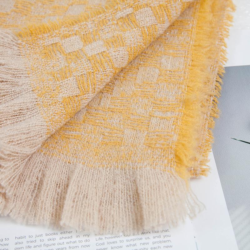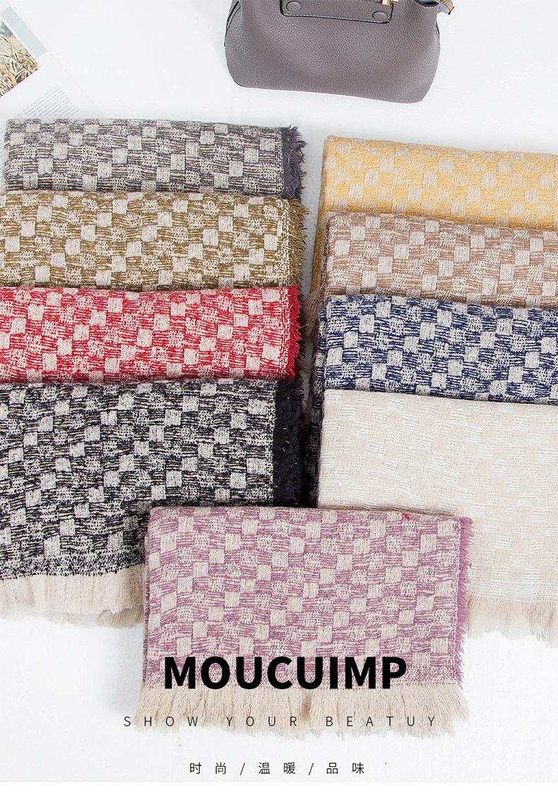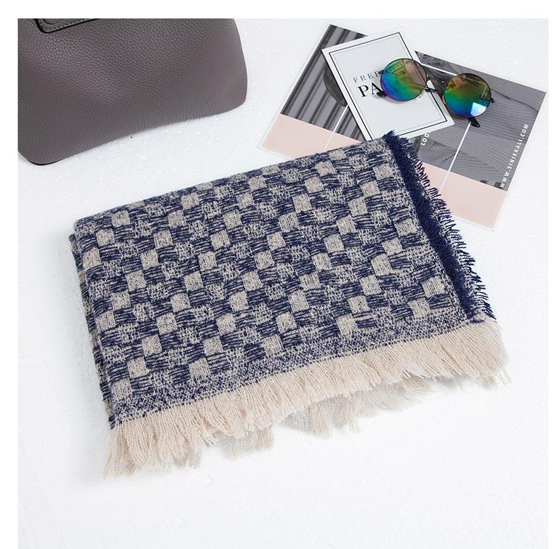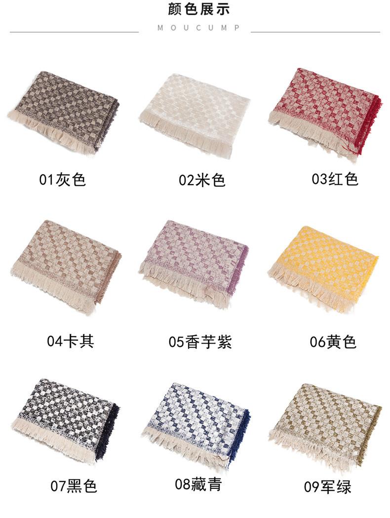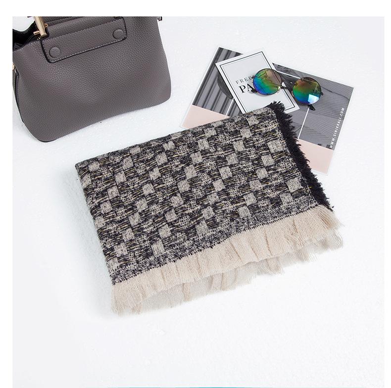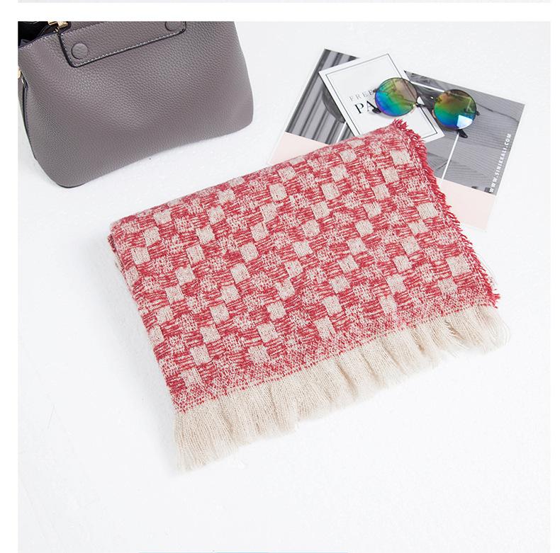 Venta directa de fábrica de otoño e invierno de Europa y América, nueva moda para mujer, cálida manta con borlas en forma de bufanda a cuadros, hermoso chal para el cuello