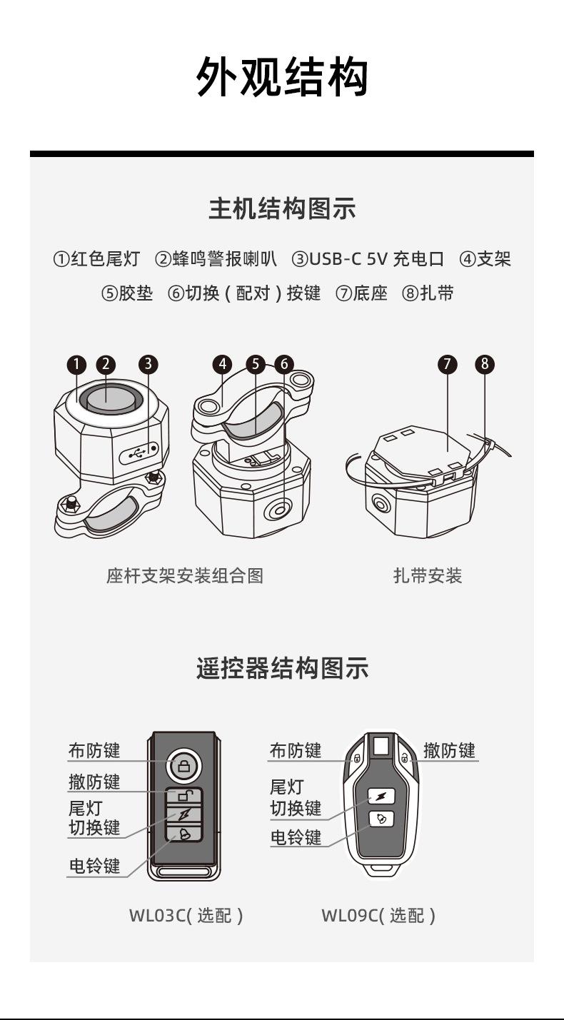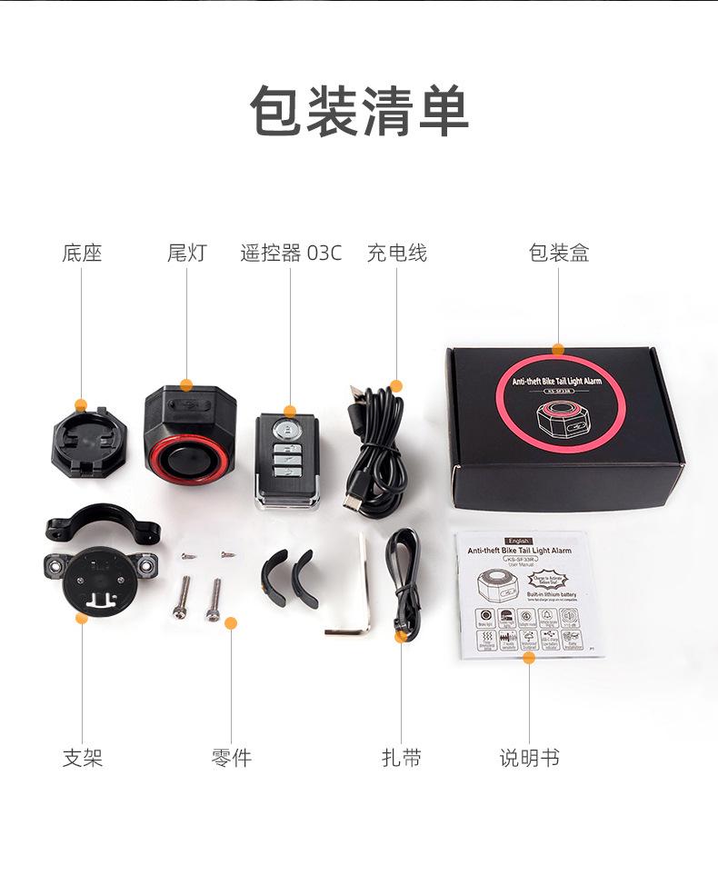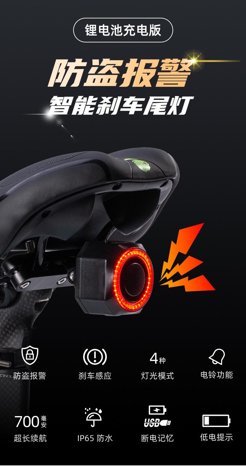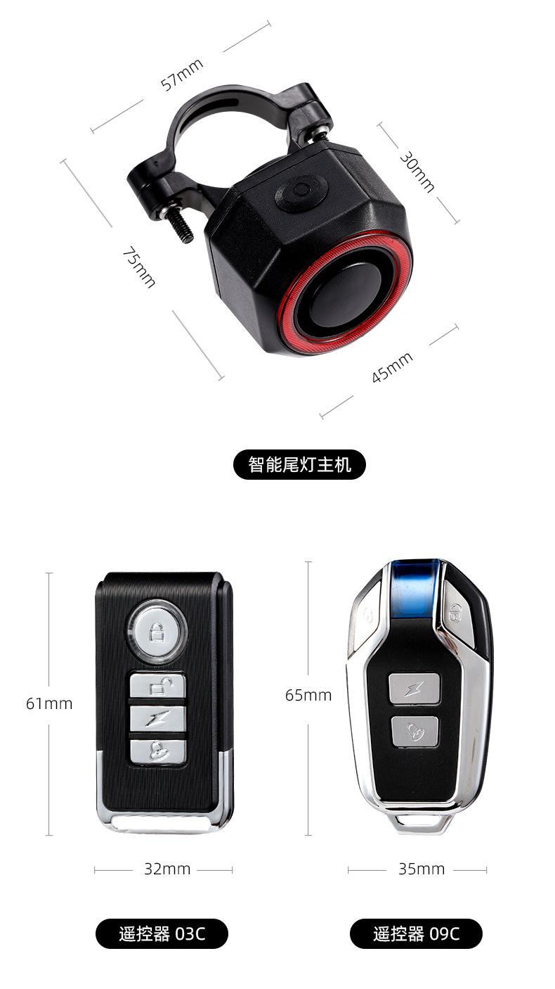Luz Trasera de Bicicleta Personalizada por el Fabricante Dos en Uno Alarma Antirrobo para Bicicleta de Montaña Luz Trasera para Ciclismo Led