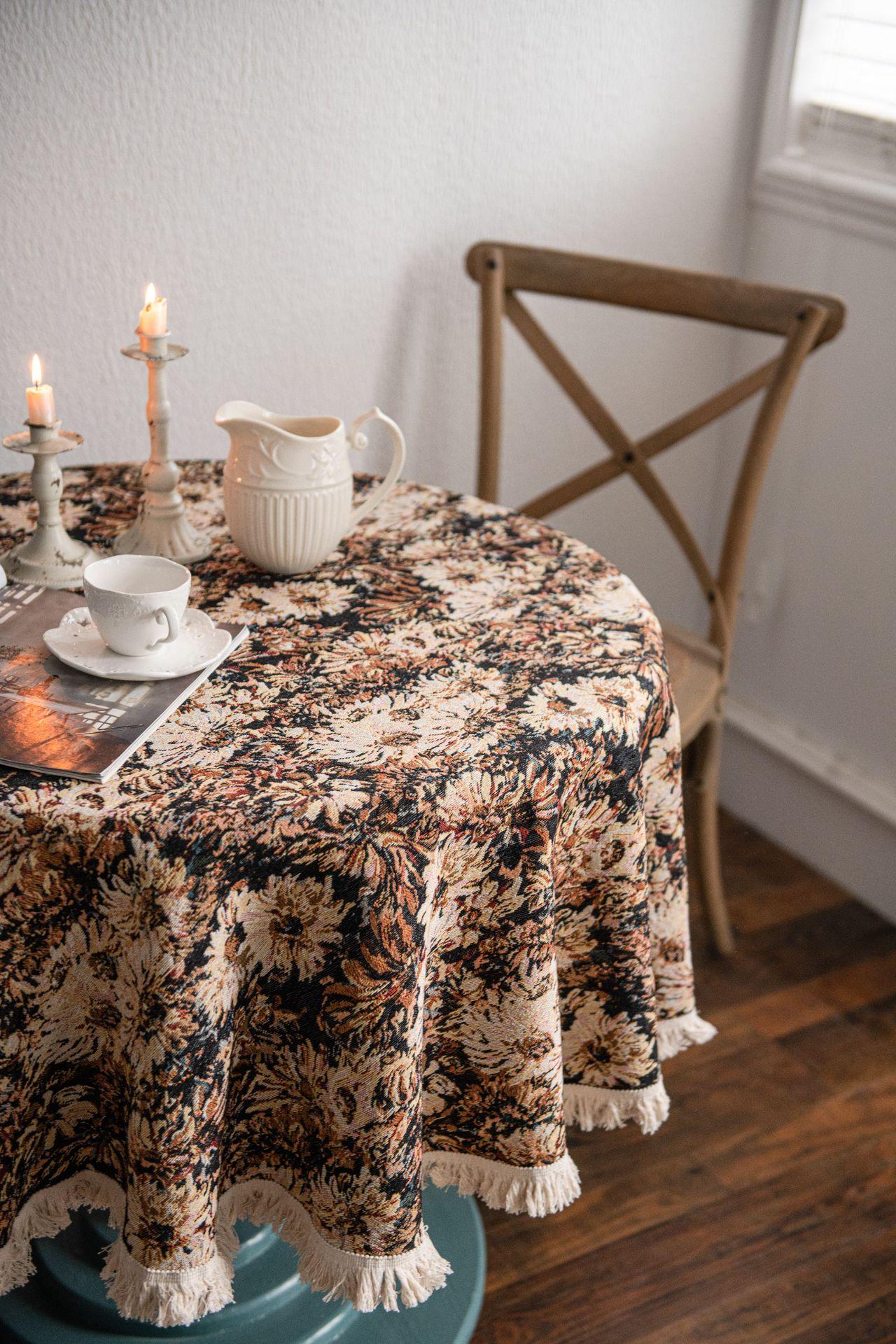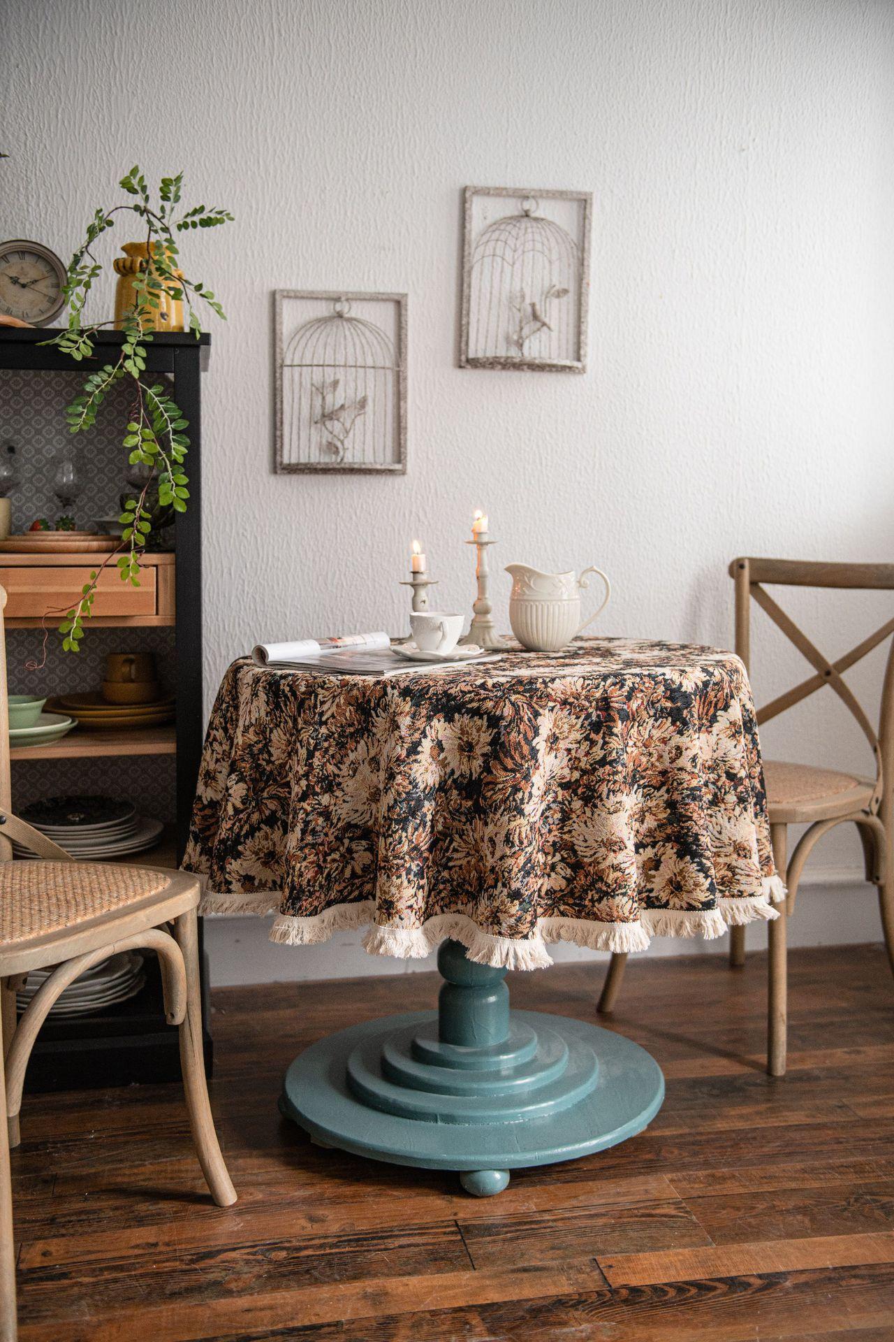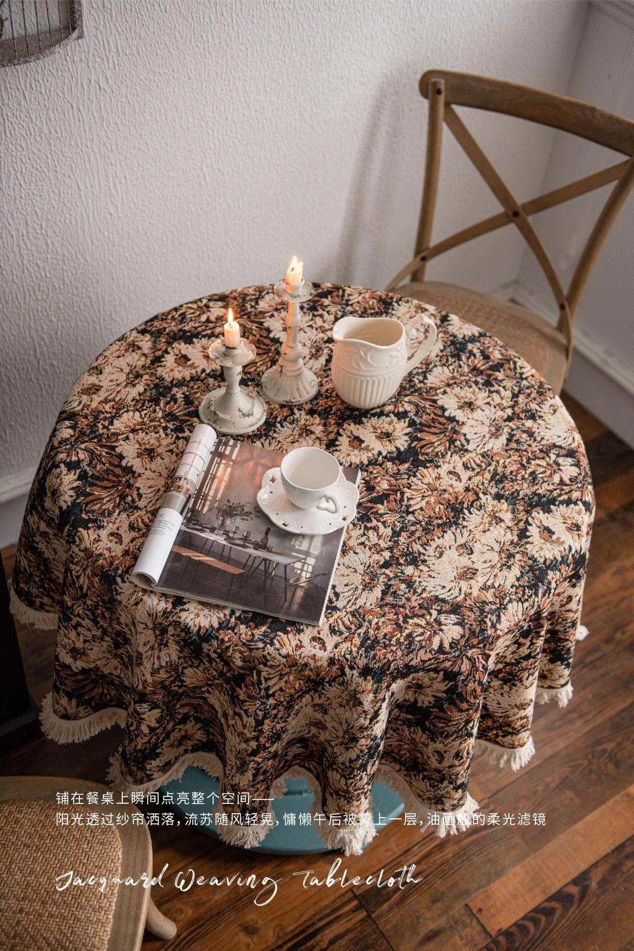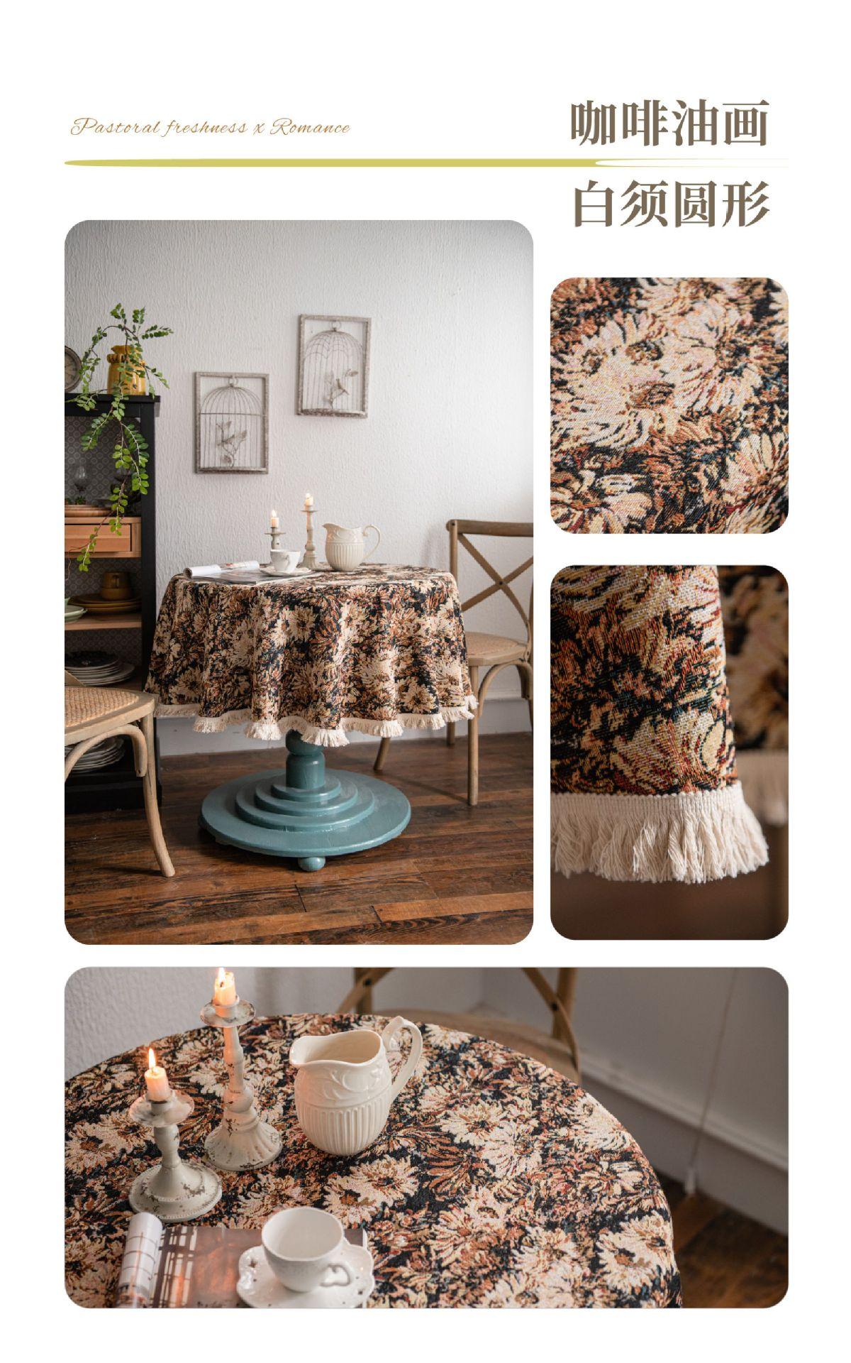 Mantel americano Imaki Yun, color café, con pintura al óleo, con borlas, jacquard, redondo y grueso, para comedor, suministro directo de fábrica.