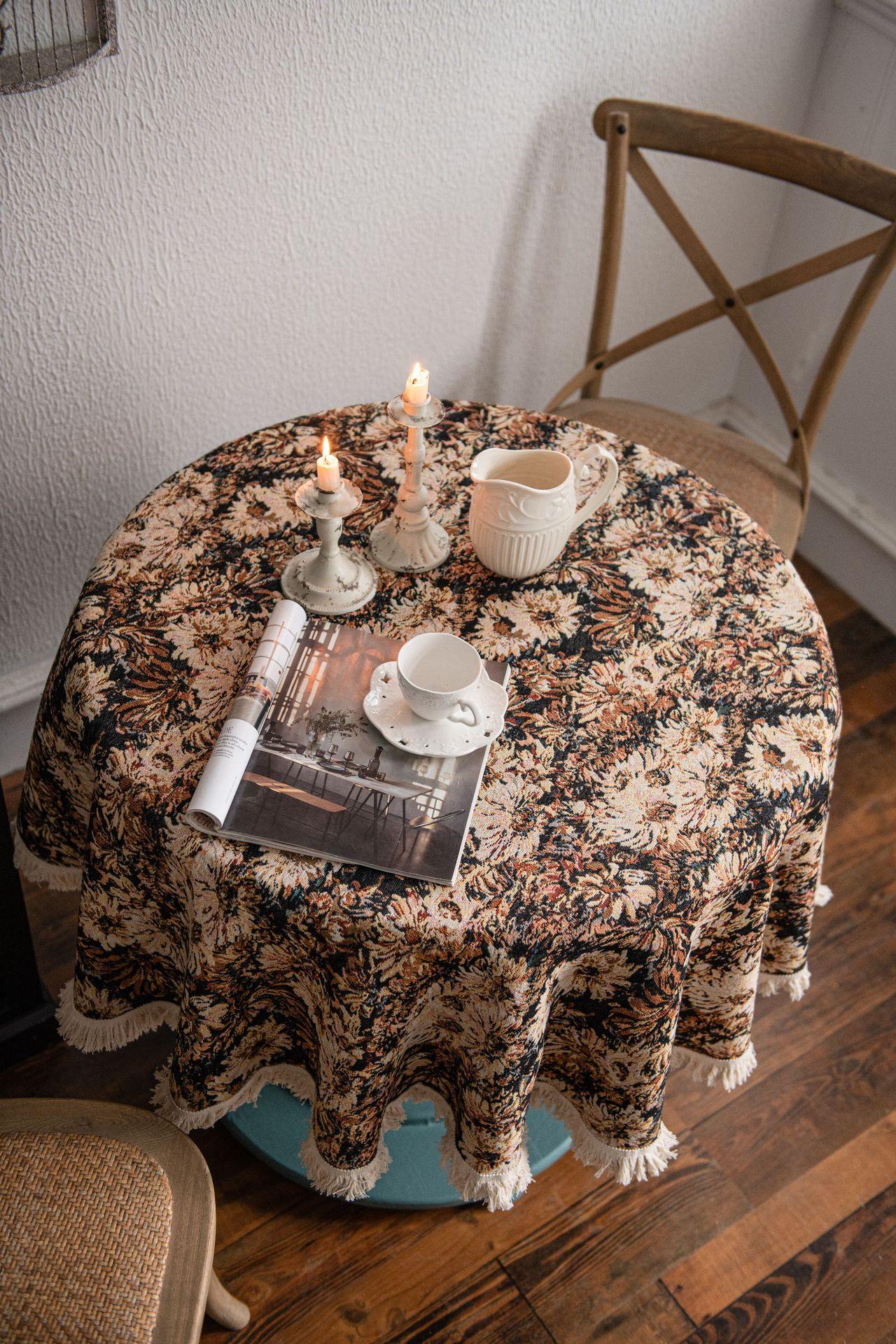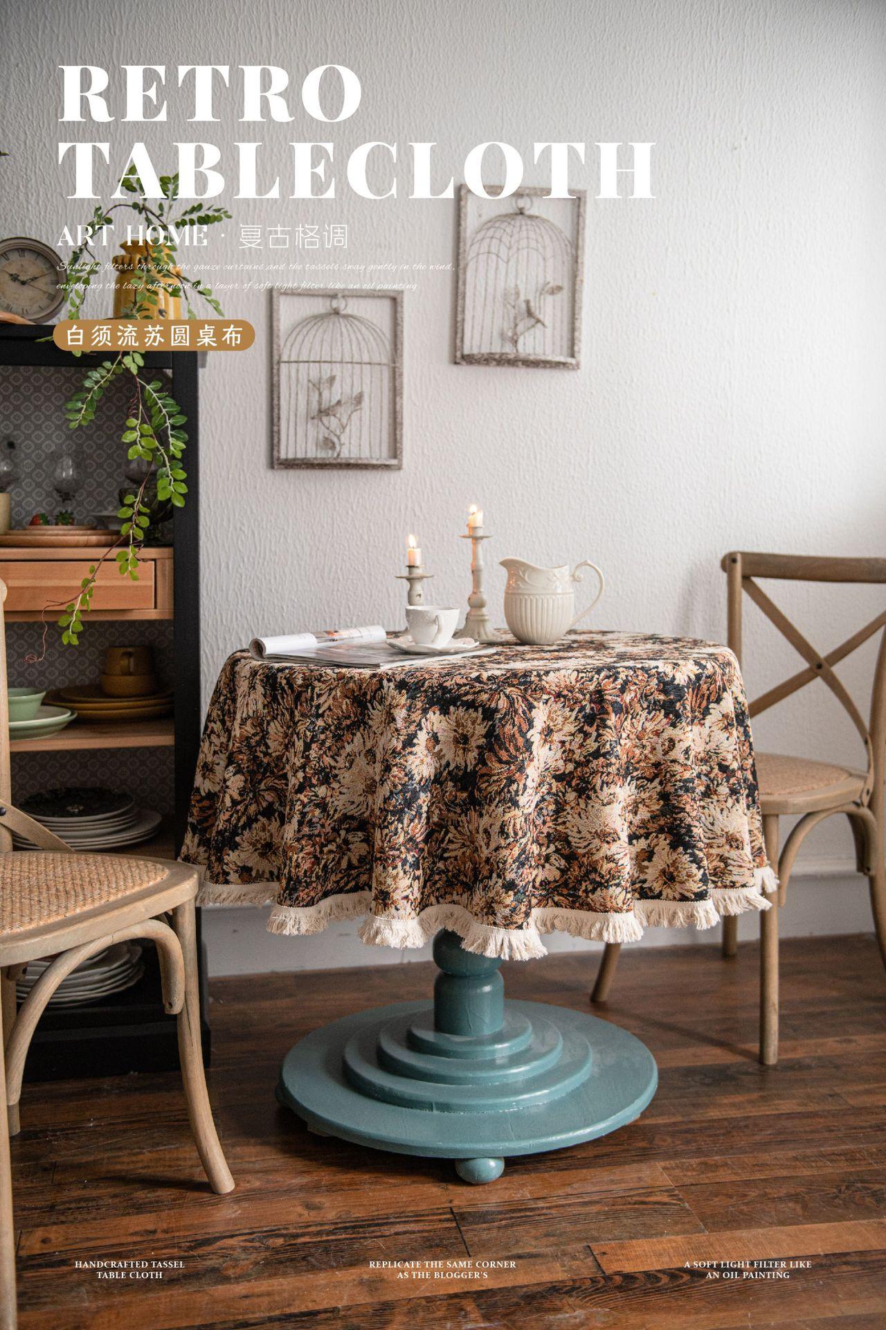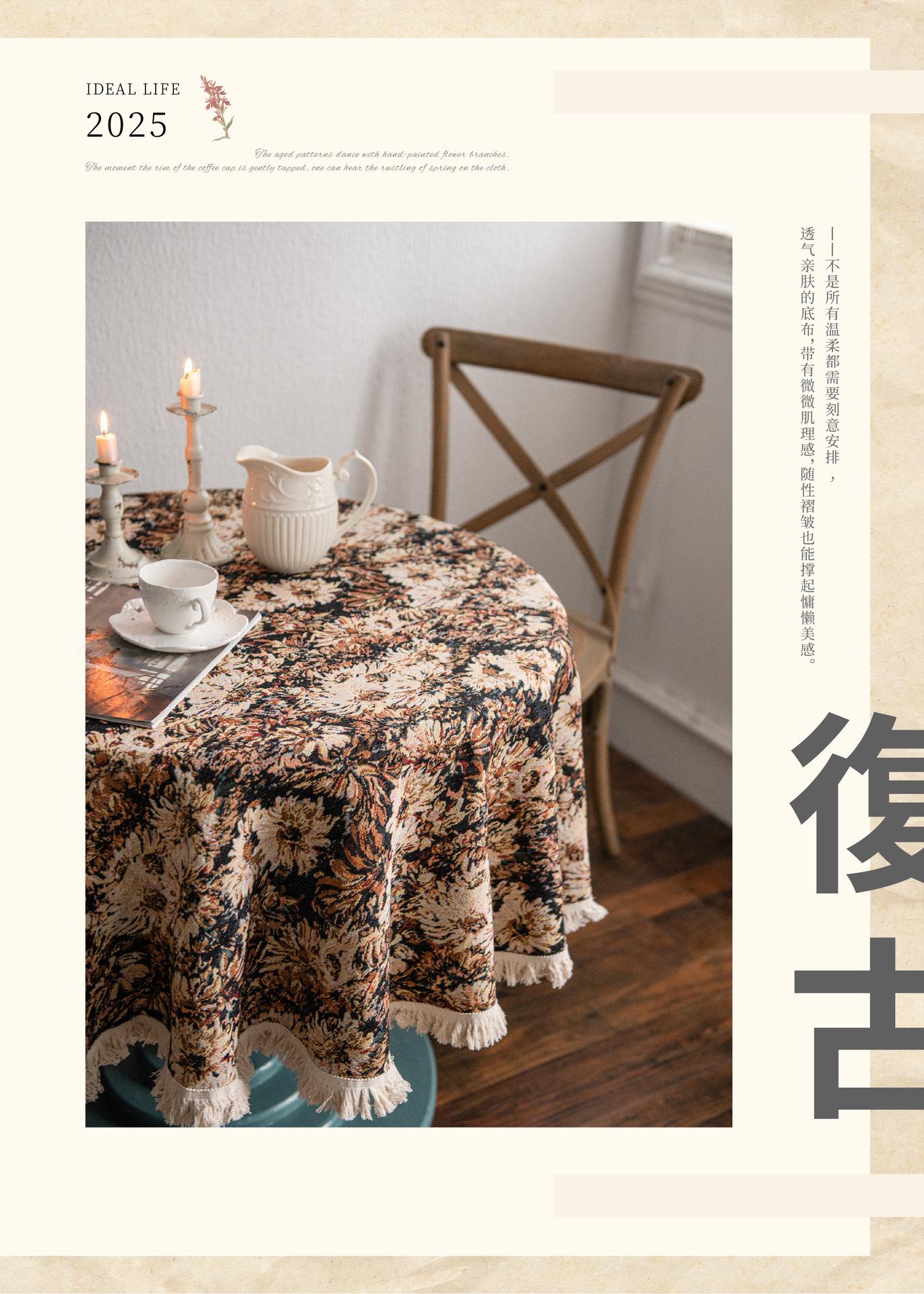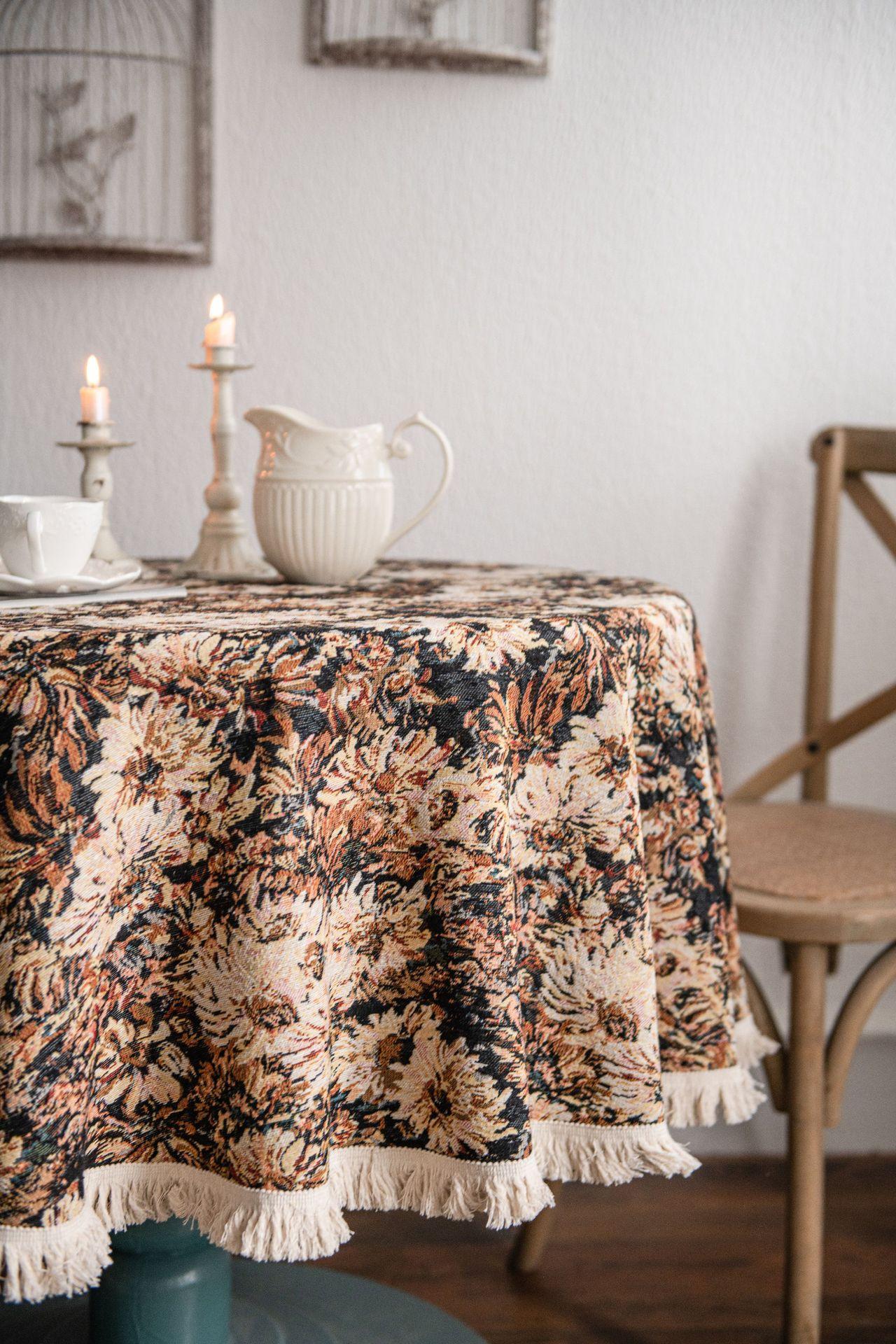 Mantel americano Imaki Yun, color café, con pintura al óleo, con borlas, jacquard, redondo y grueso, para comedor, suministro directo de fábrica.