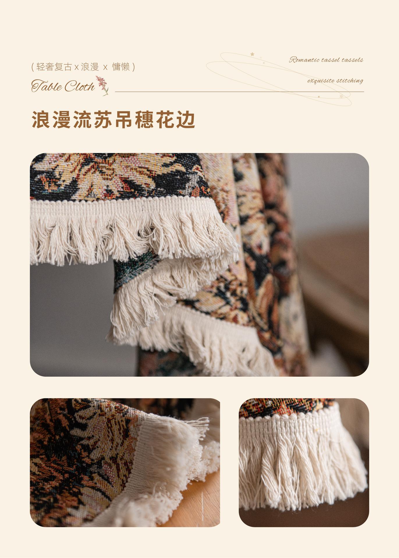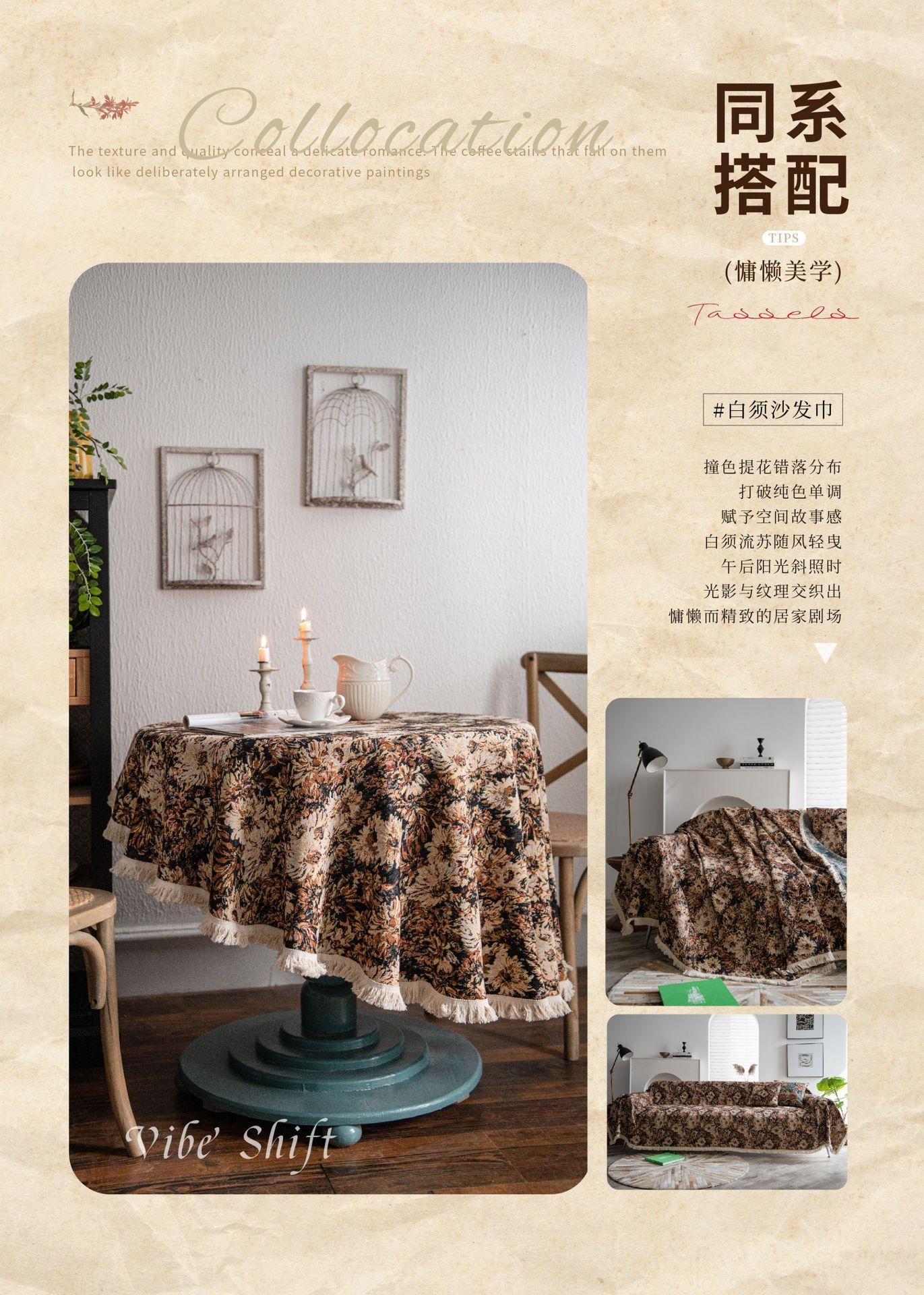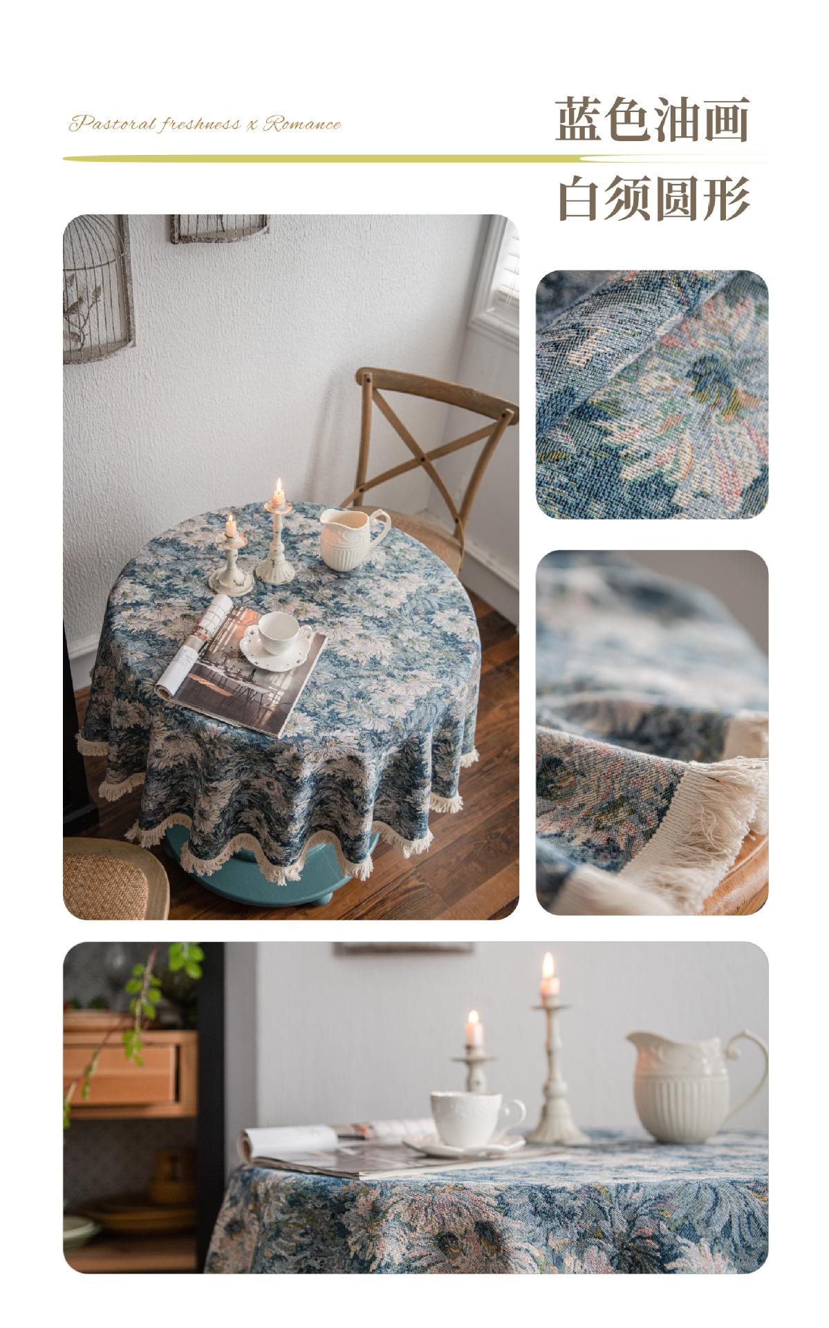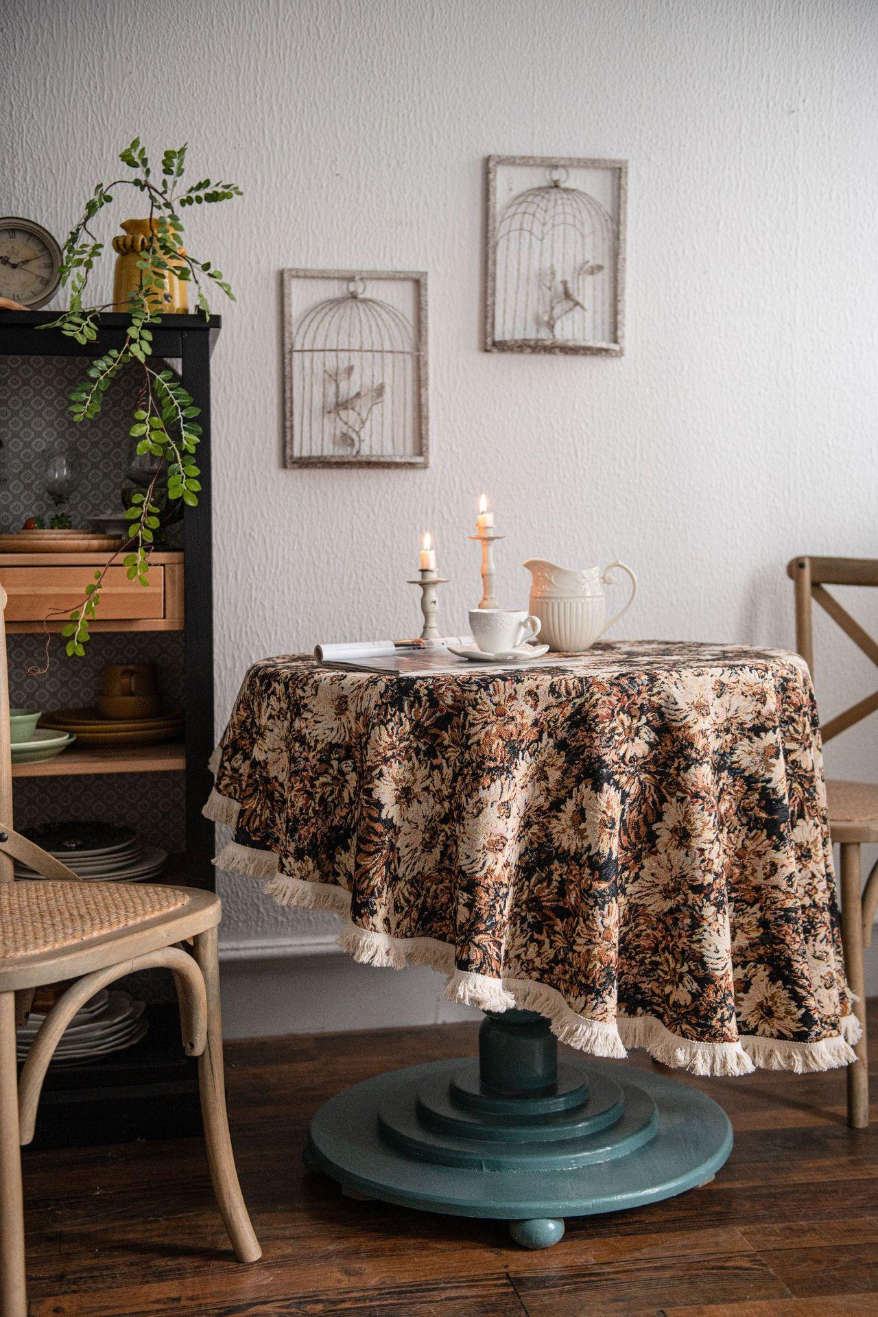 Mantel americano Imaki Yun, color café, con pintura al óleo, con borlas, jacquard, redondo y grueso, para comedor, suministro directo de fábrica.
