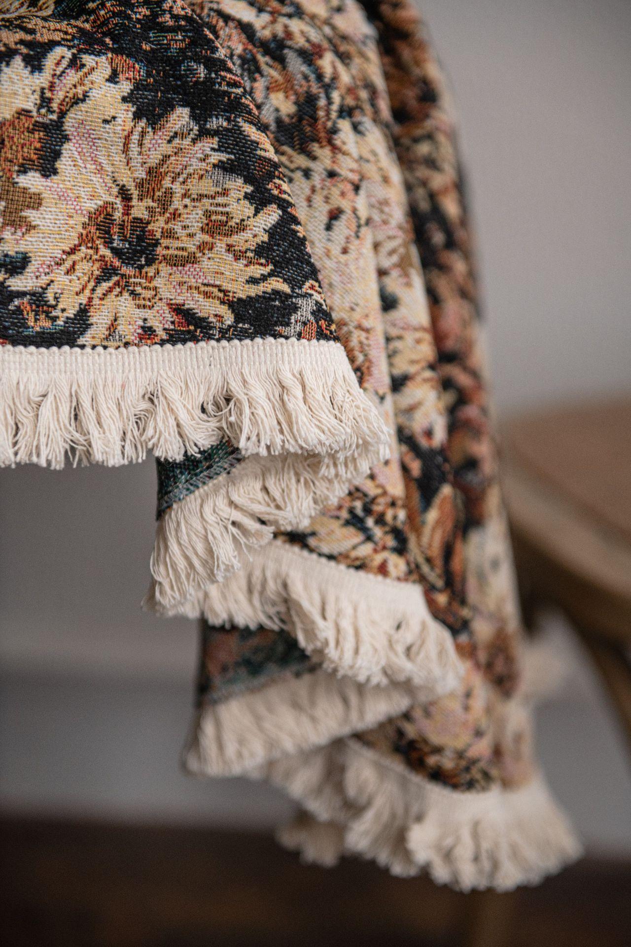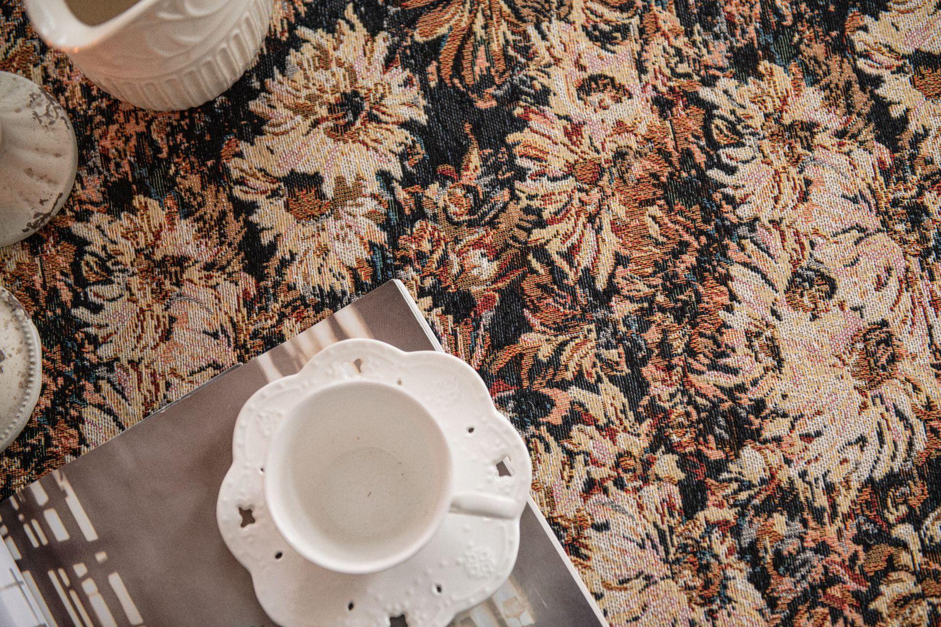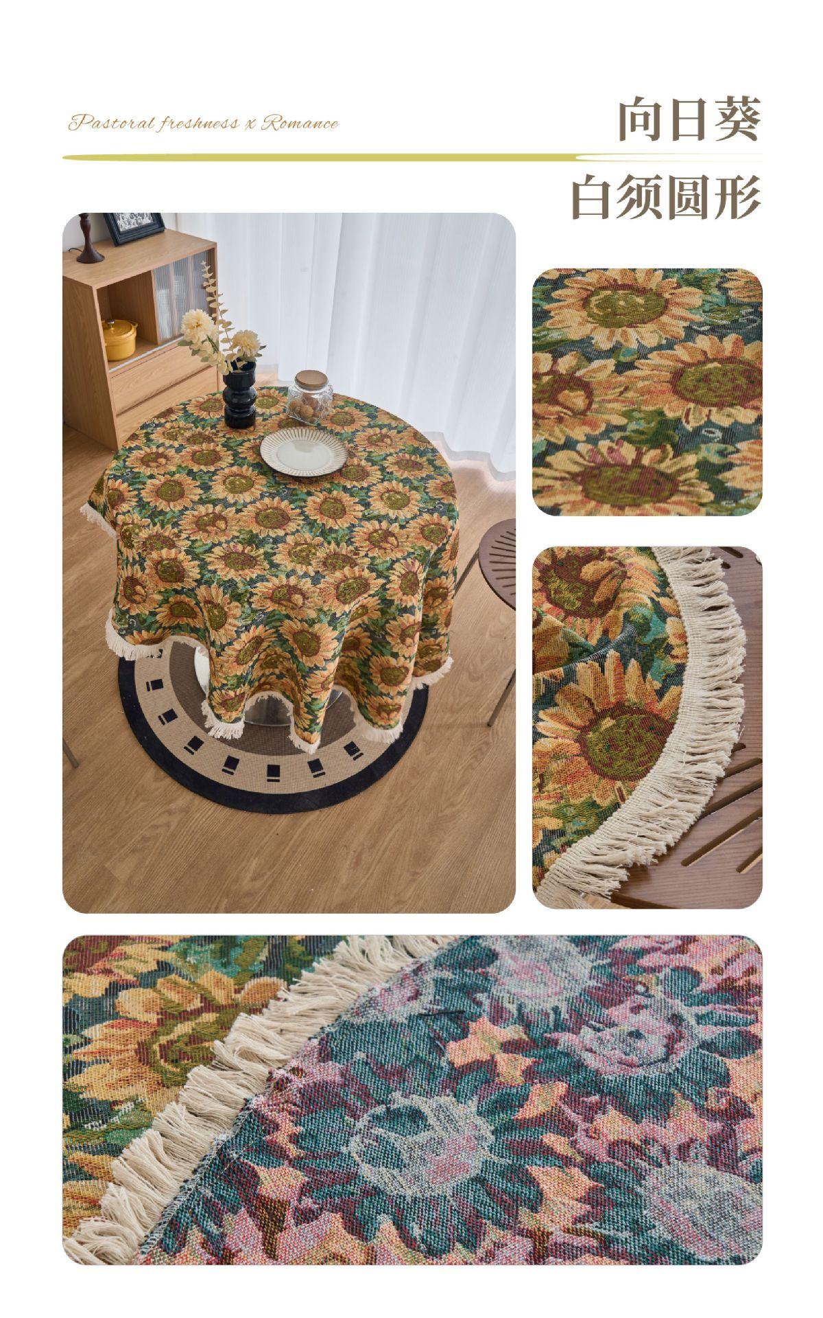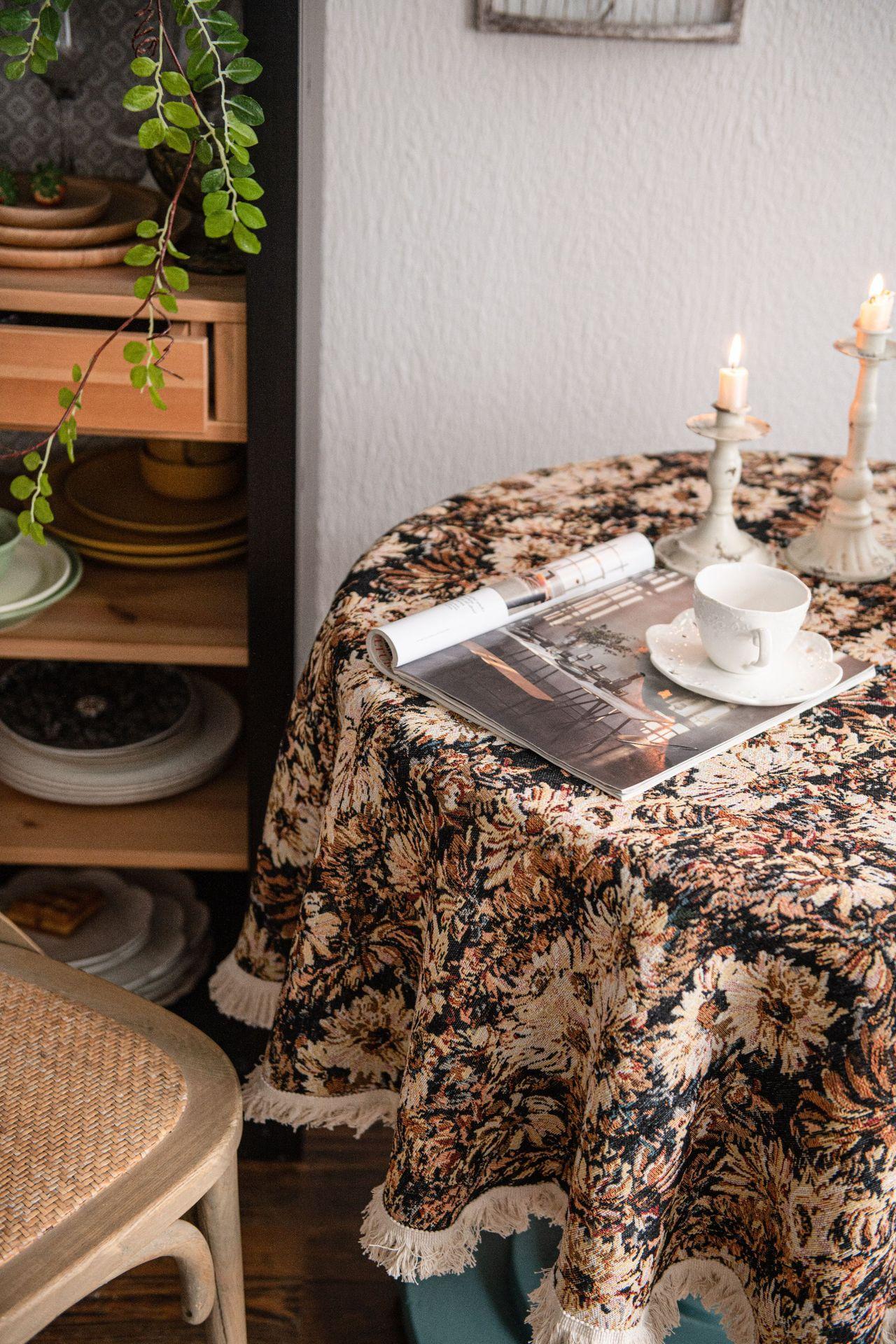 Mantel americano Imaki Yun, color café, con pintura al óleo, con borlas, jacquard, redondo y grueso, para comedor, suministro directo de fábrica.