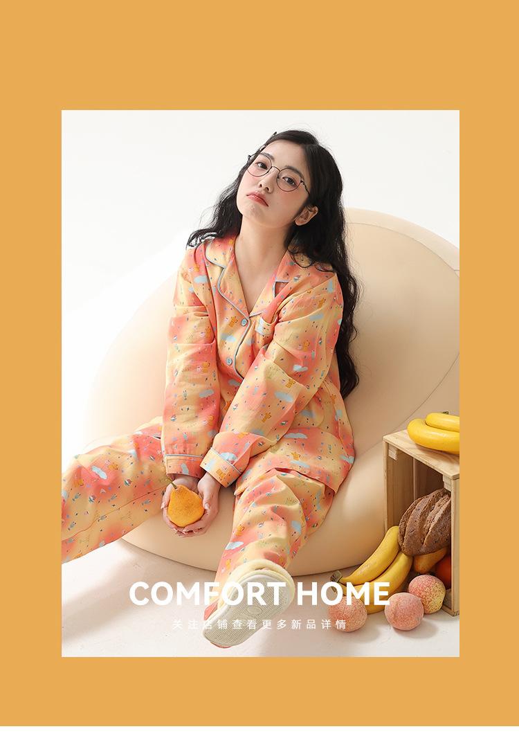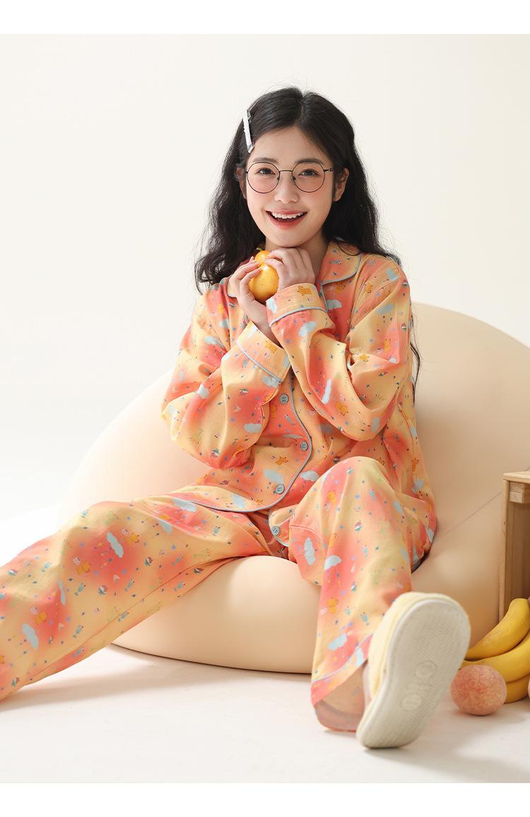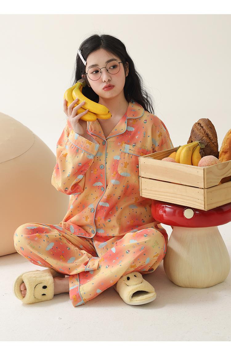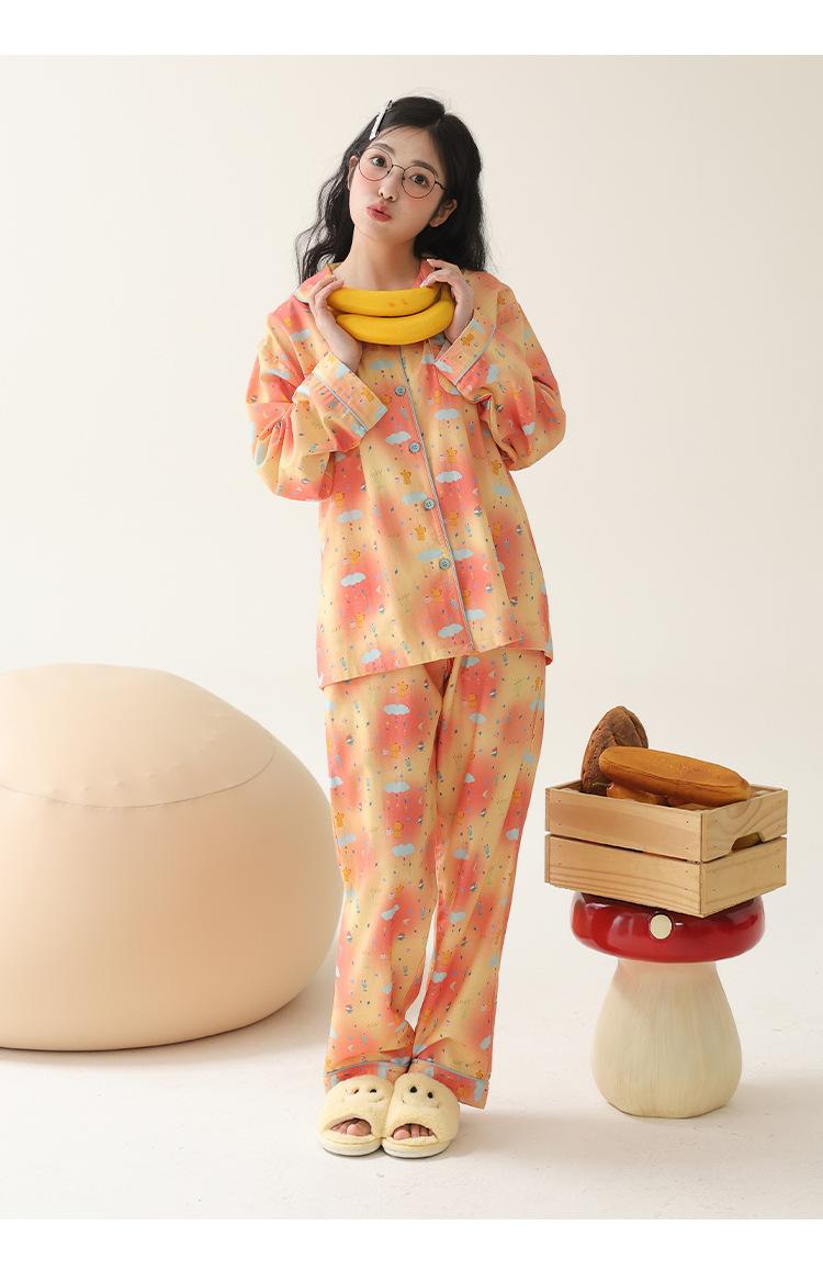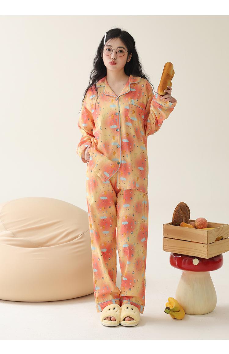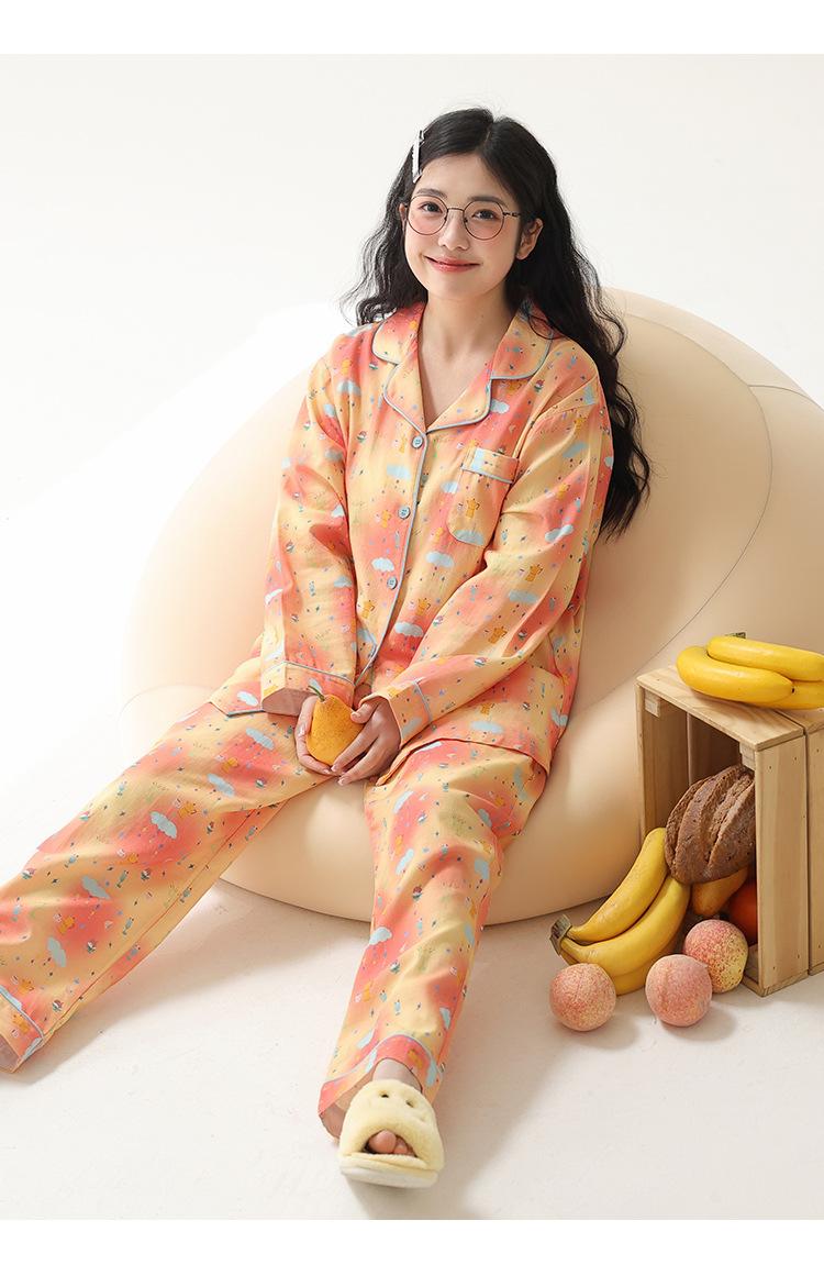 Pijama de algodón puro estilo coreano pequeño y transparente con diseño de cuento de hadas amarillo para primavera y otoño, ropa de casa para mujer, ropa exterior