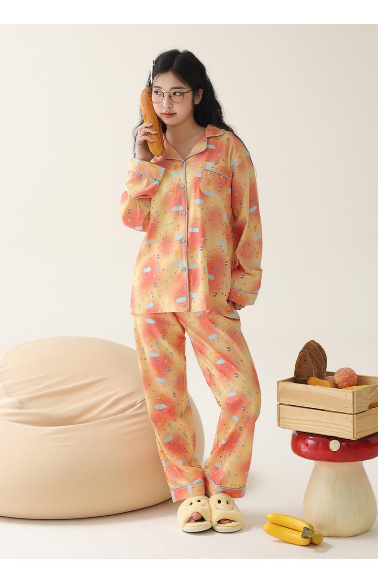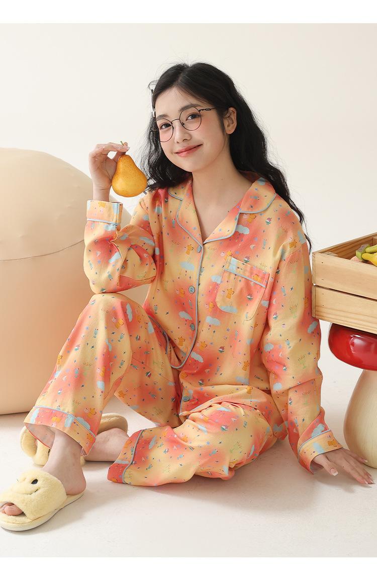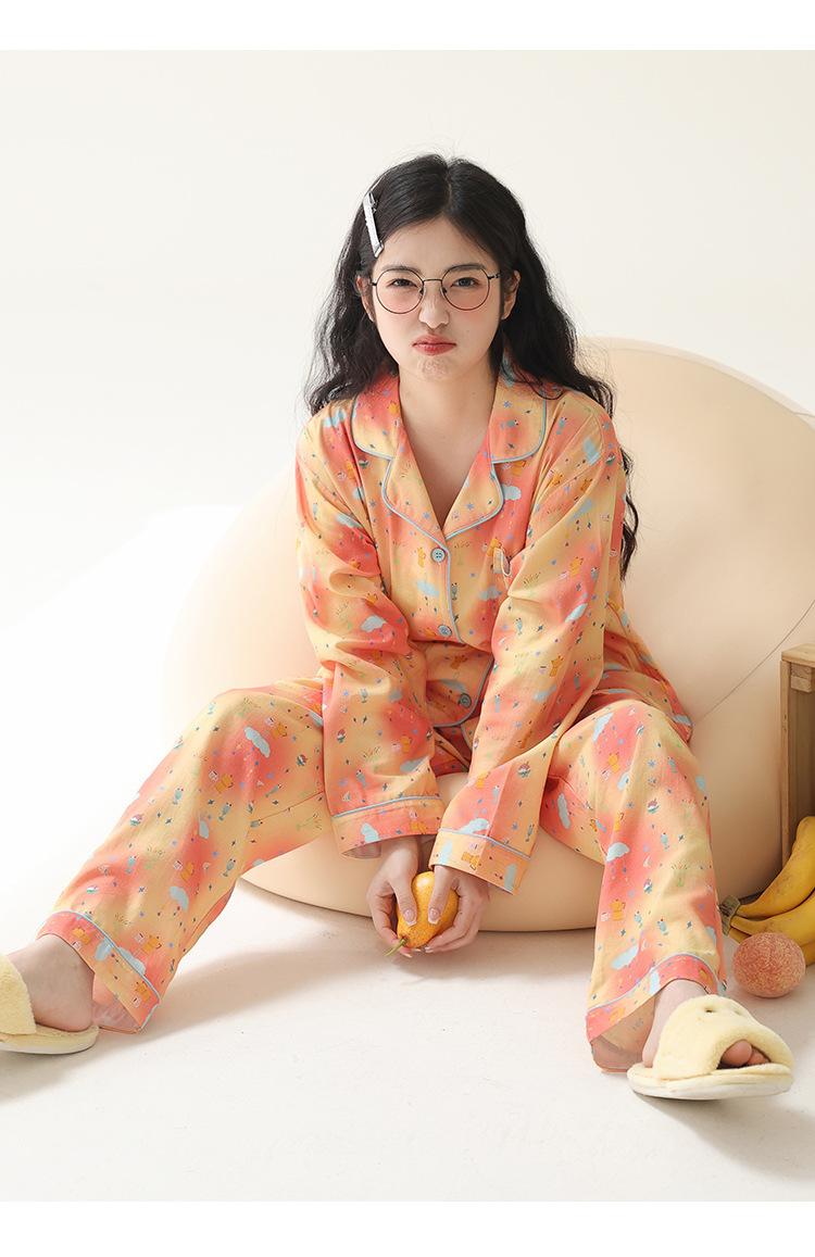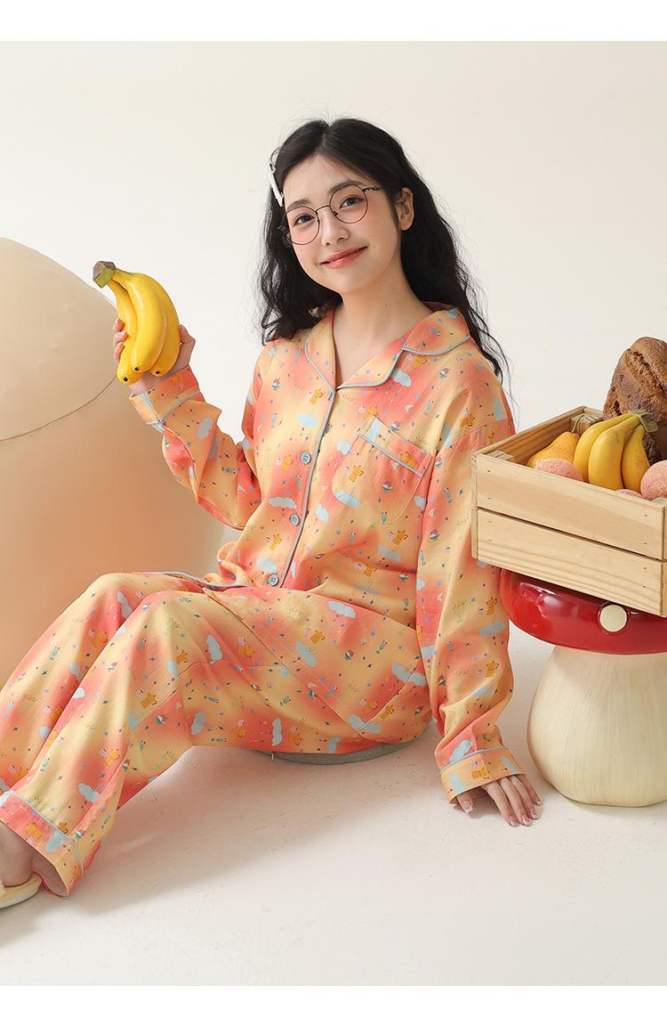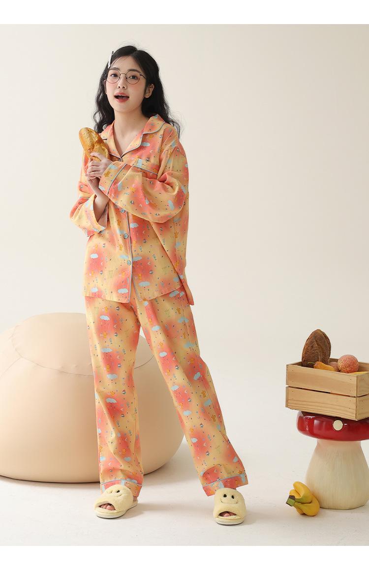 Pijama de algodón puro estilo coreano pequeño y transparente con diseño de cuento de hadas amarillo para primavera y otoño, ropa de casa para mujer, ropa exterior