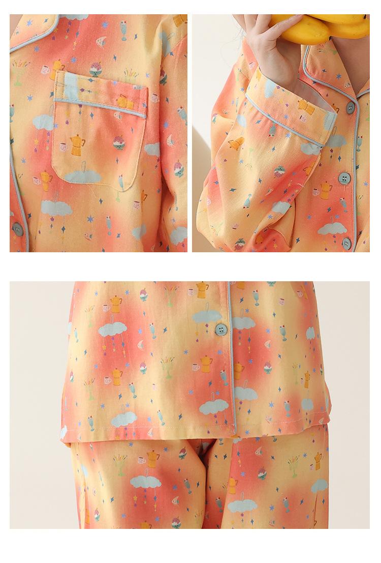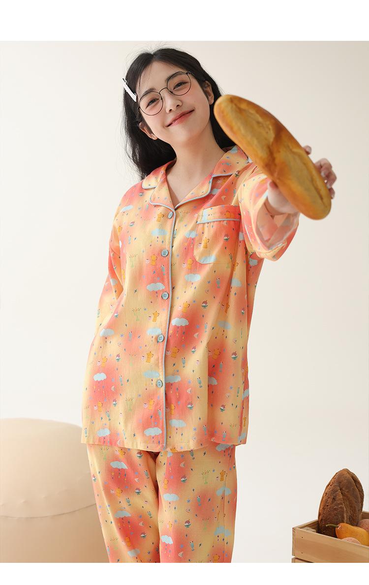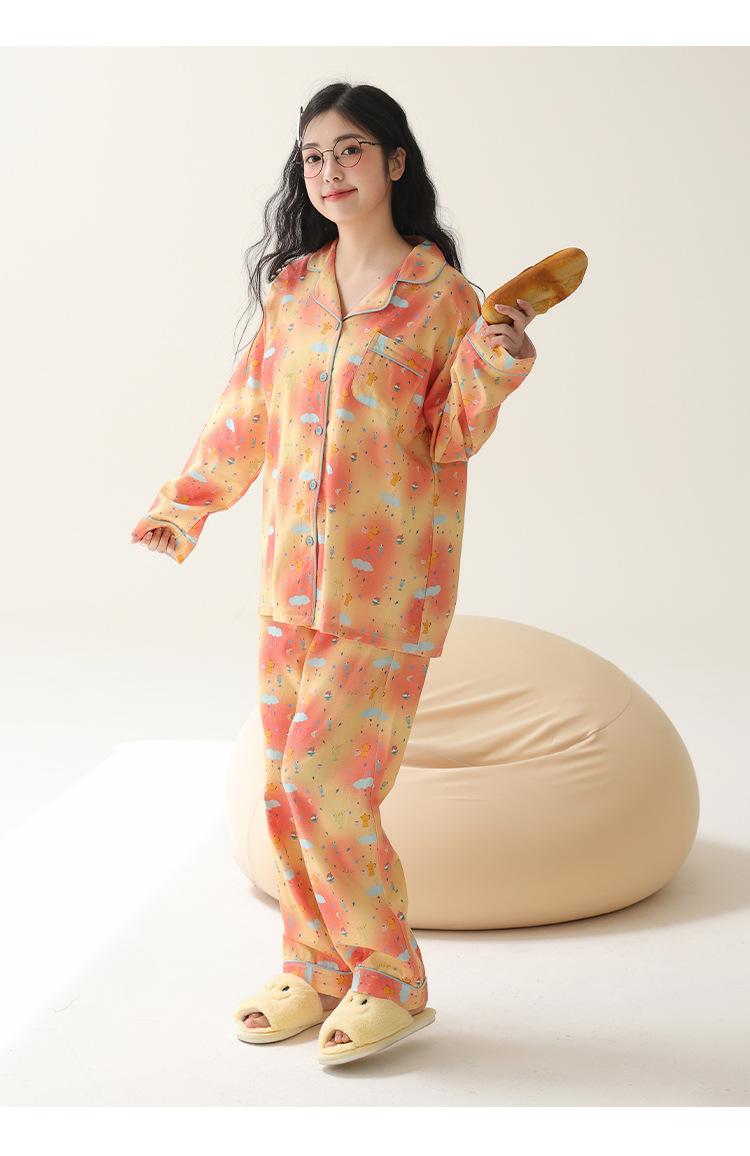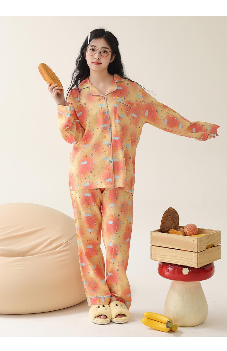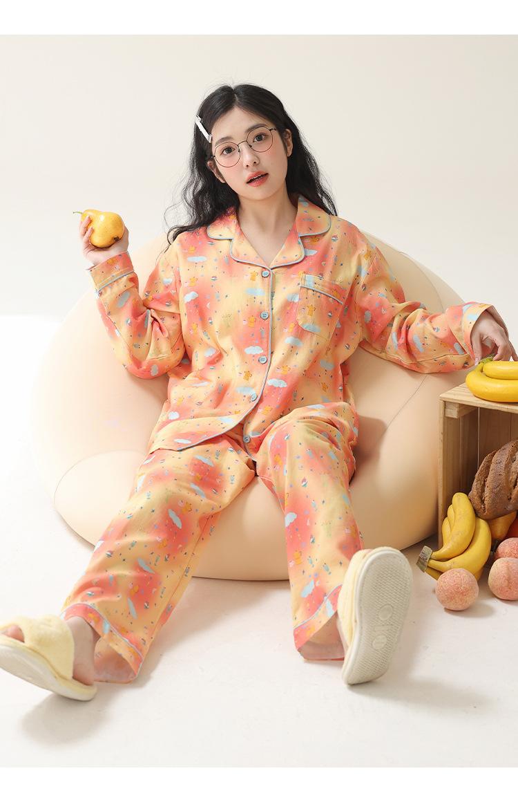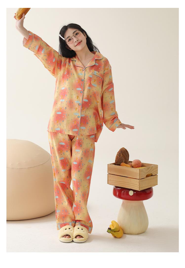 Pijama de algodón puro estilo coreano pequeño y transparente con diseño de cuento de hadas amarillo para primavera y otoño, ropa de casa para mujer, ropa exterior