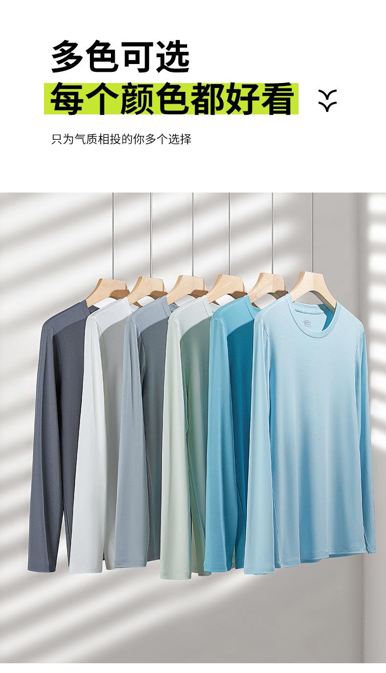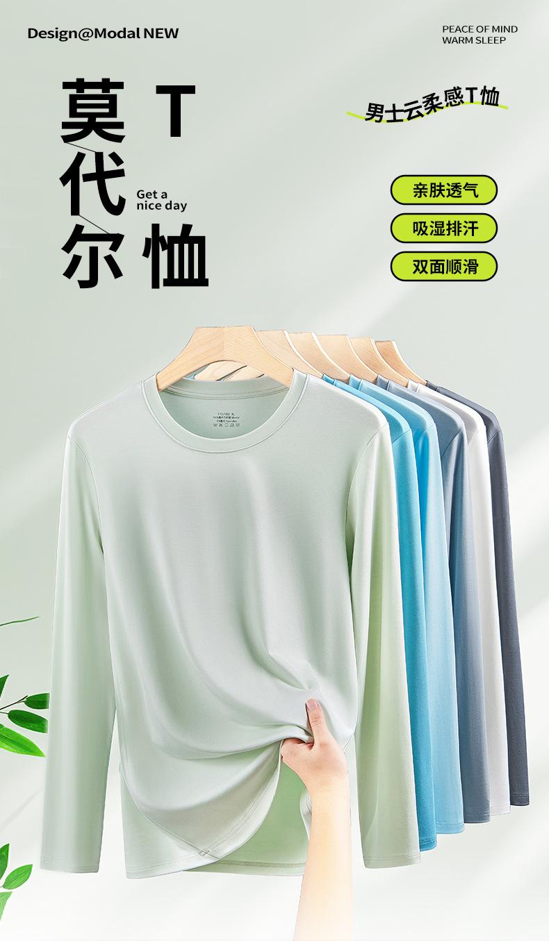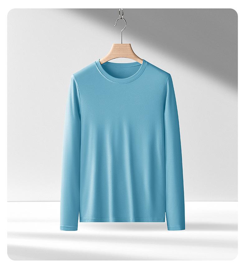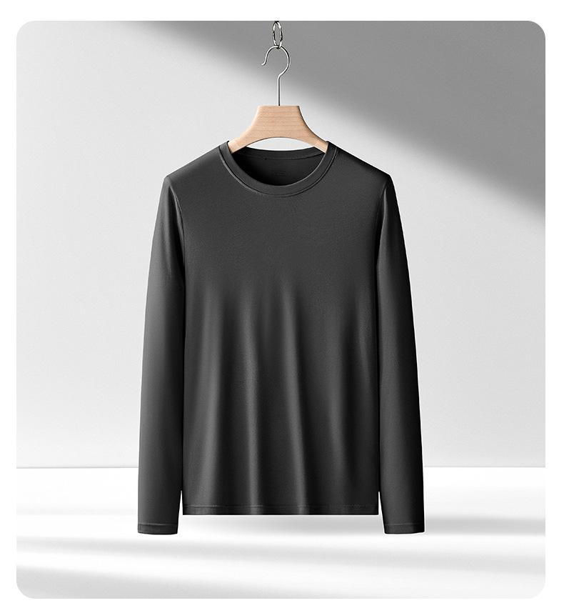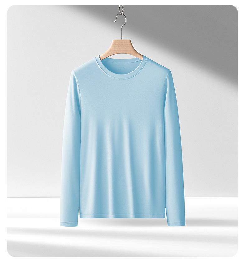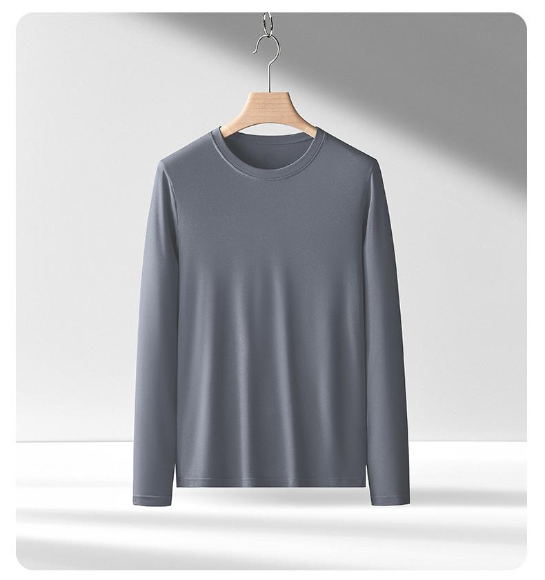 Nueva camiseta básica de modal de doble cara para hombre, de color sólido, con cuello redondo, camiseta juvenil de manga larga interior.