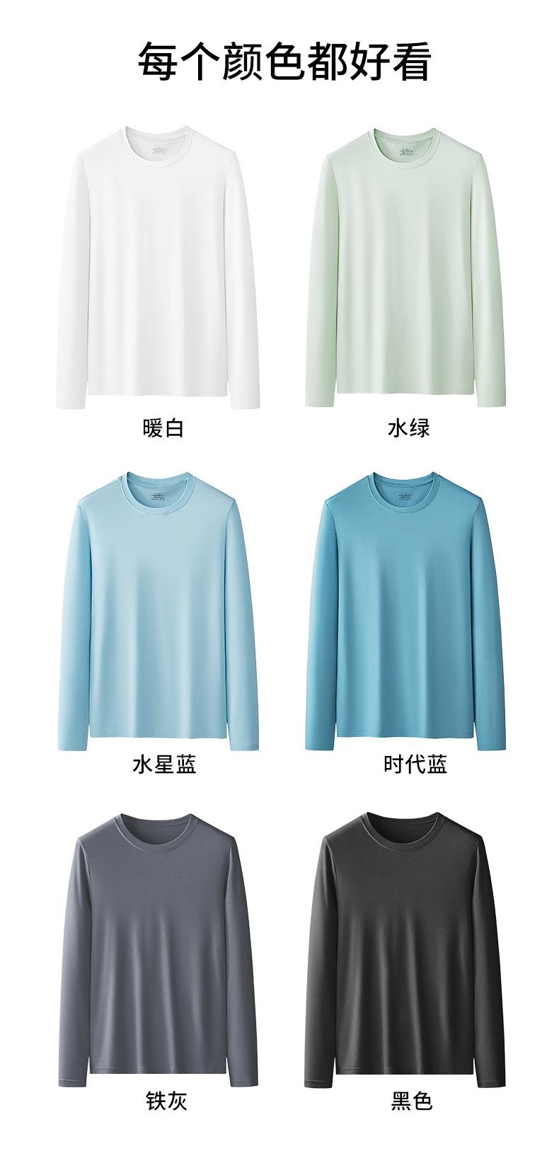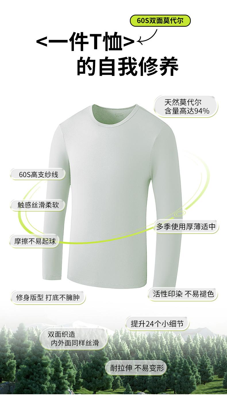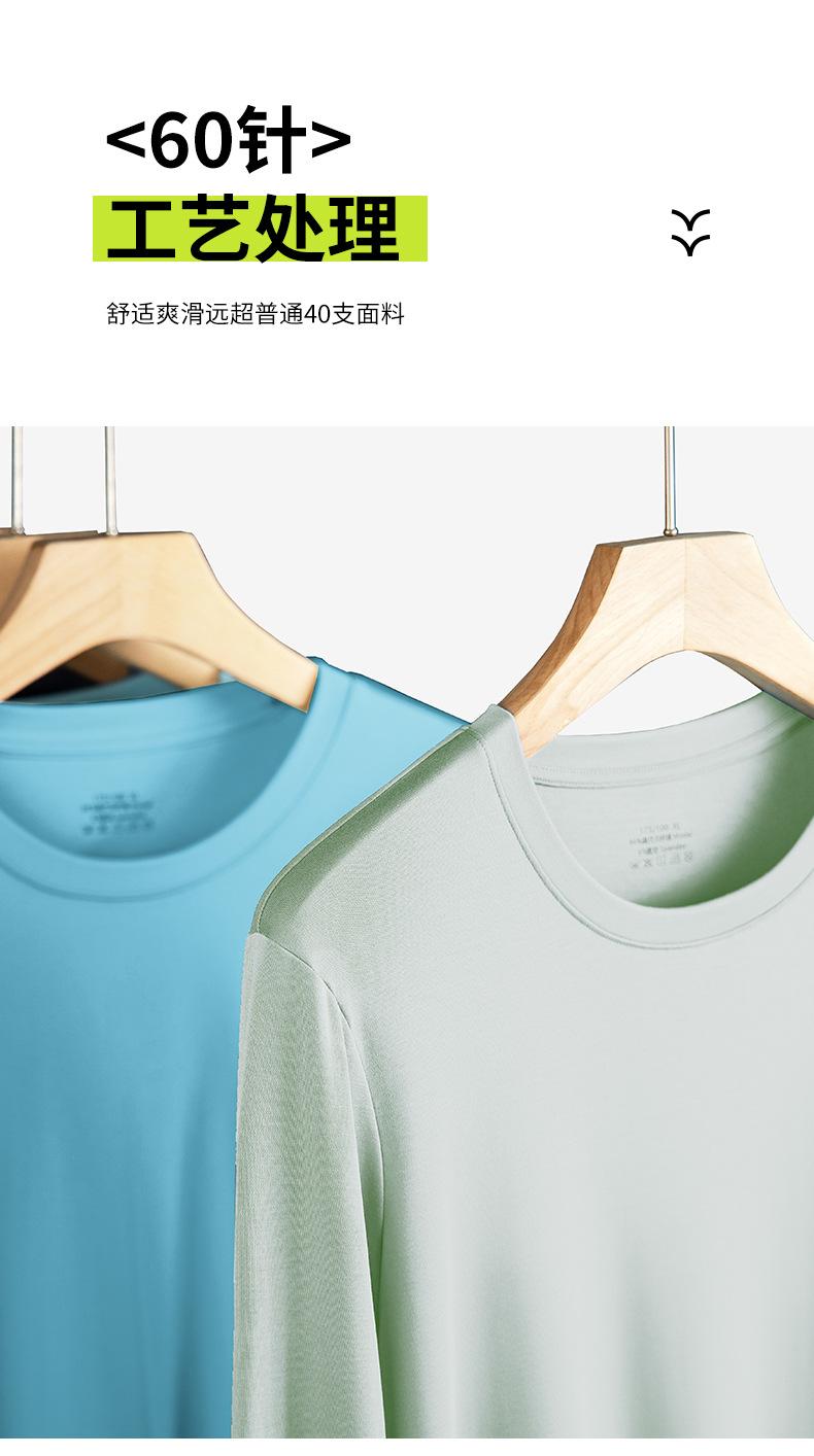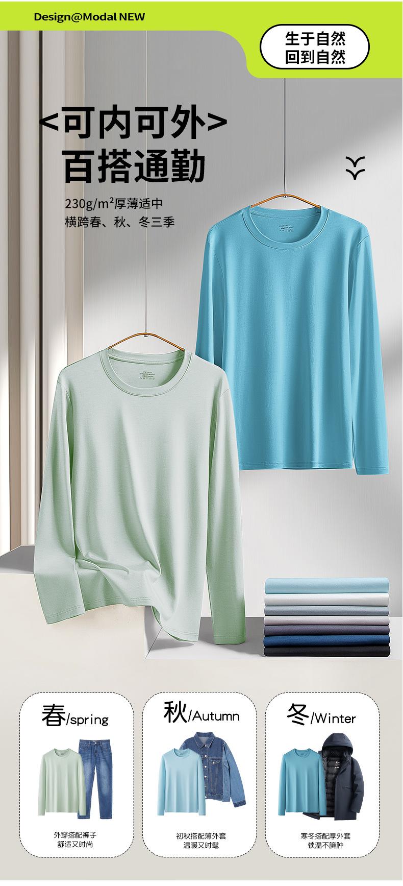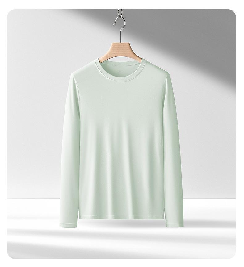 Nueva camiseta básica de modal de doble cara para hombre, de color sólido, con cuello redondo, camiseta juvenil de manga larga interior.