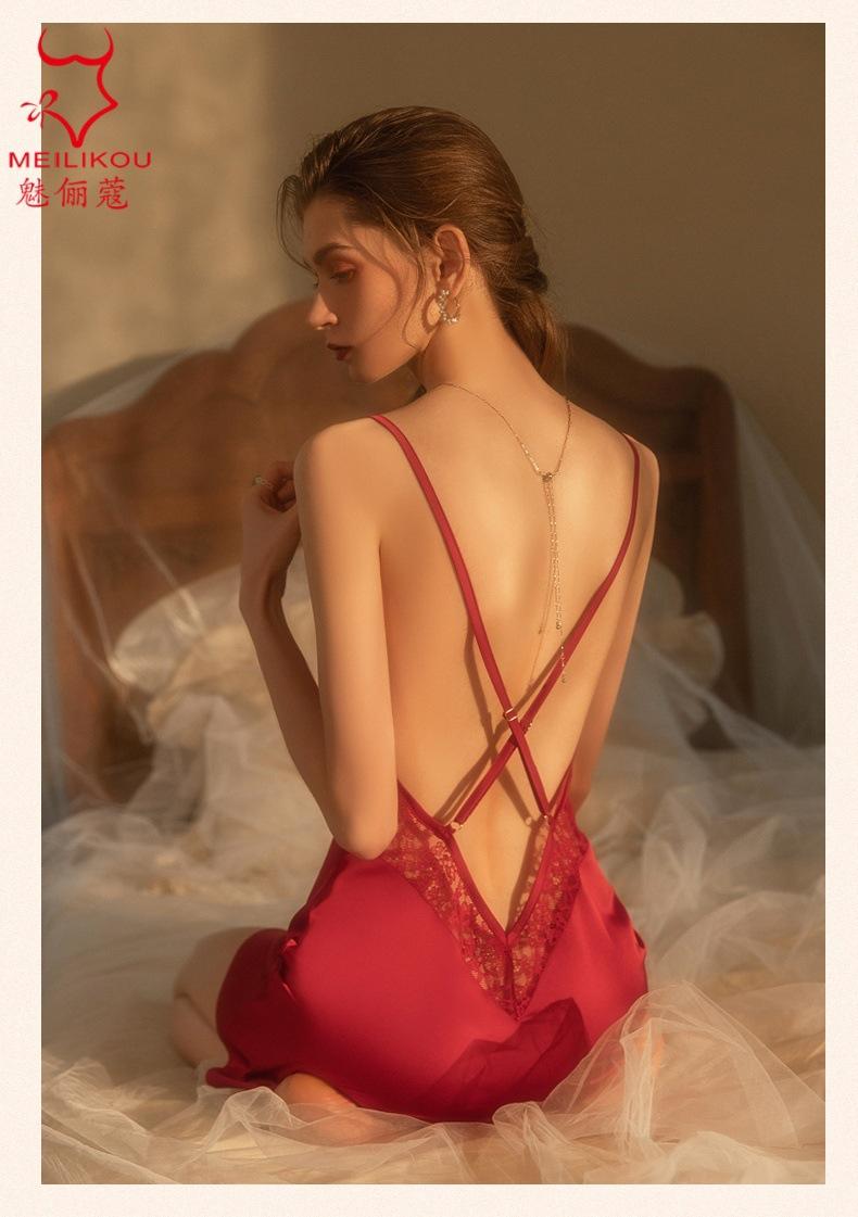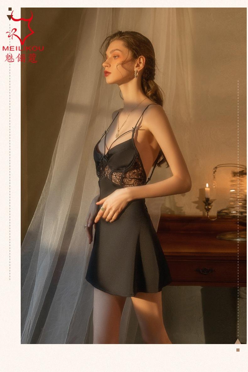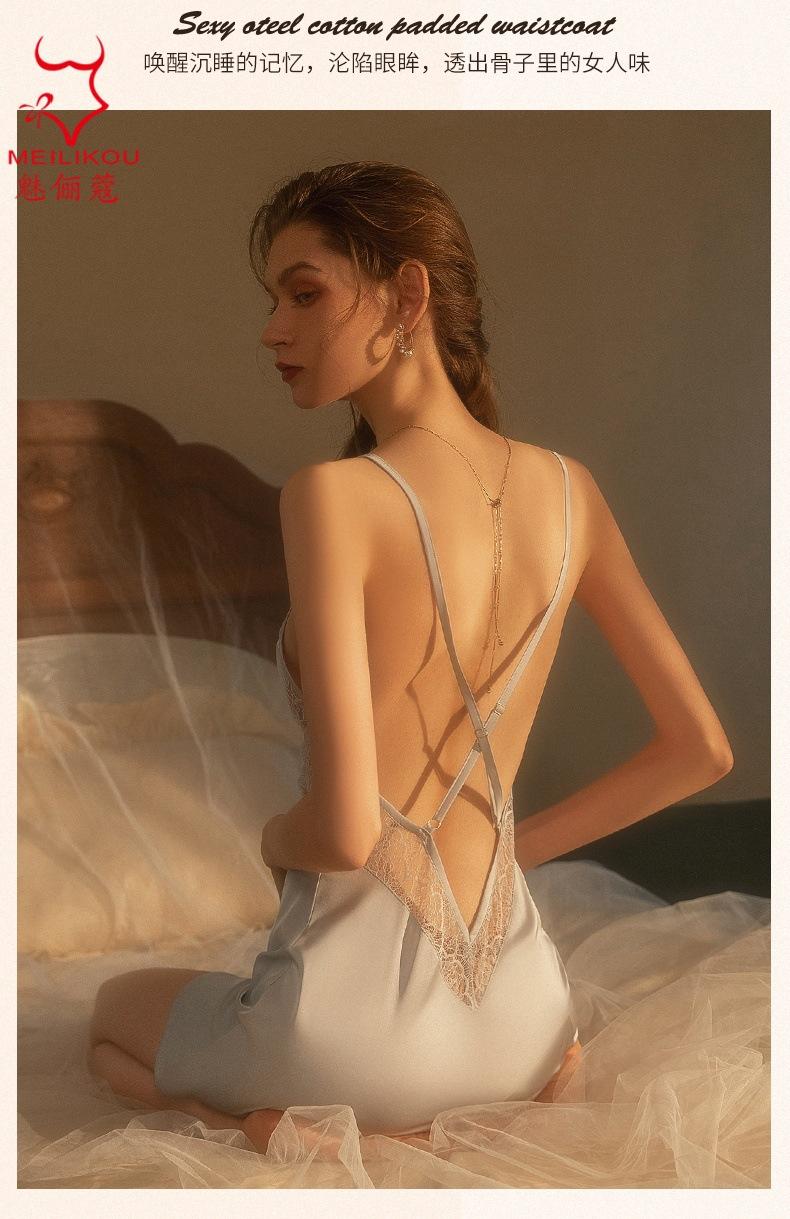 Pijama divertido, tentación sexy, ropa interior sin espalda, provocación, pecho pequeño, camisón grande, conjunto de tirantes de pasión 1753
