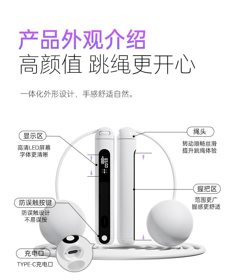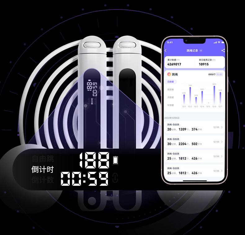 Cuerda para saltar Bluetooth Recargable fitness deportes inalámbrica bola grande especial profesional cable de acero para estudiantes con soporte de peso examen de ingreso a la escuela secundaria