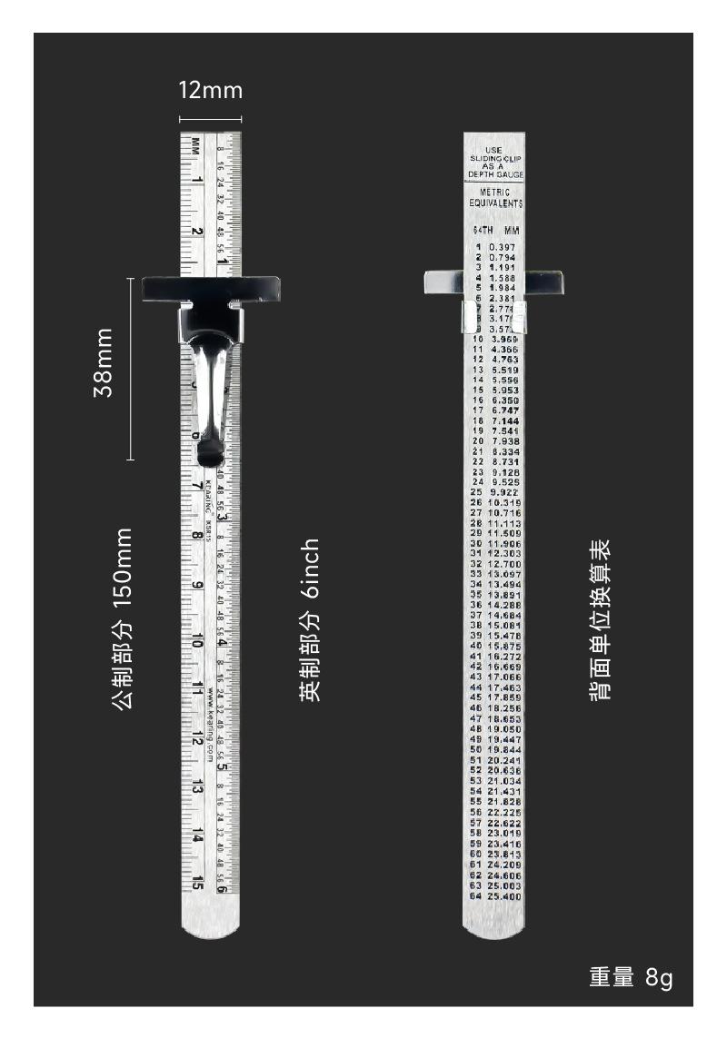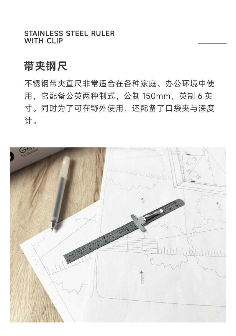 Regla de Acero Límite Keling Transfronteriza Más Vendida con Clip 6 Pulgadas 15cm Regla de Acero Acero Inoxidable Solapa de Posicionamiento Bolsillo Pantalón Regla