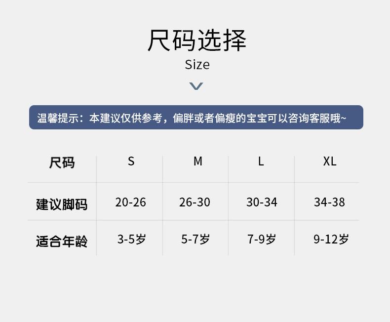 S:14-16 (recommended 3-5 years old foot code 20-26), M:16-18 (recommended for 5-7 years old foot code 26-30), ...