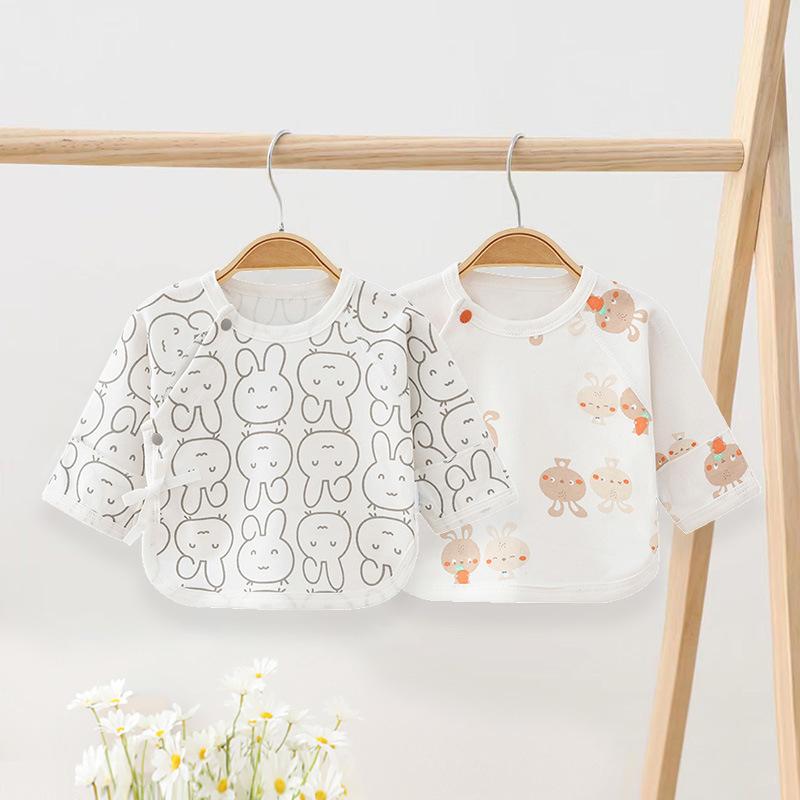 Ropa para Bebé Recién Nacido, Tops Estilo Monje de Algodón Puro para Todas las Estaciones, Ropa Interior de Capa Base, Algodón Peinado de Manga Corta con Espalda Media