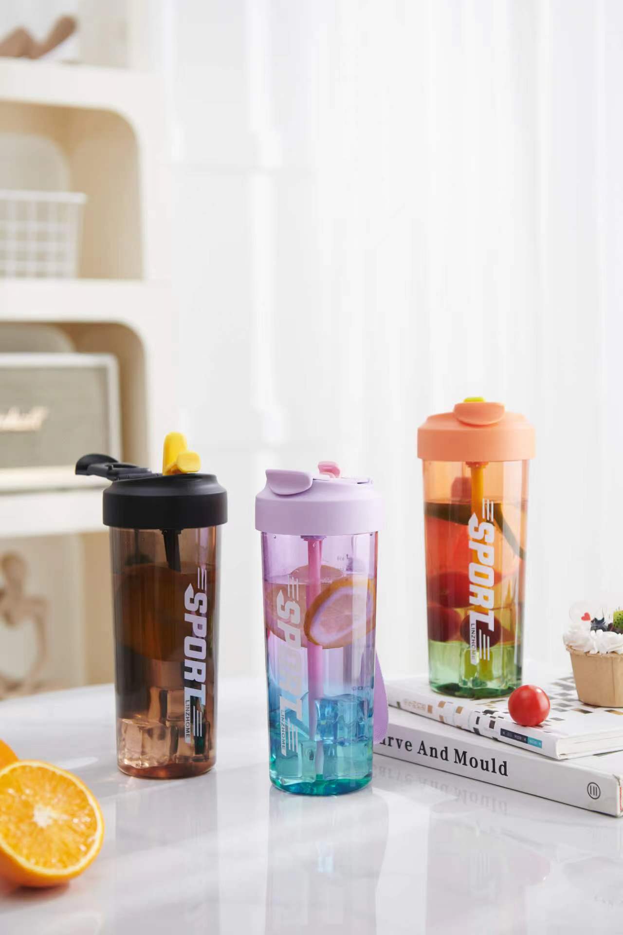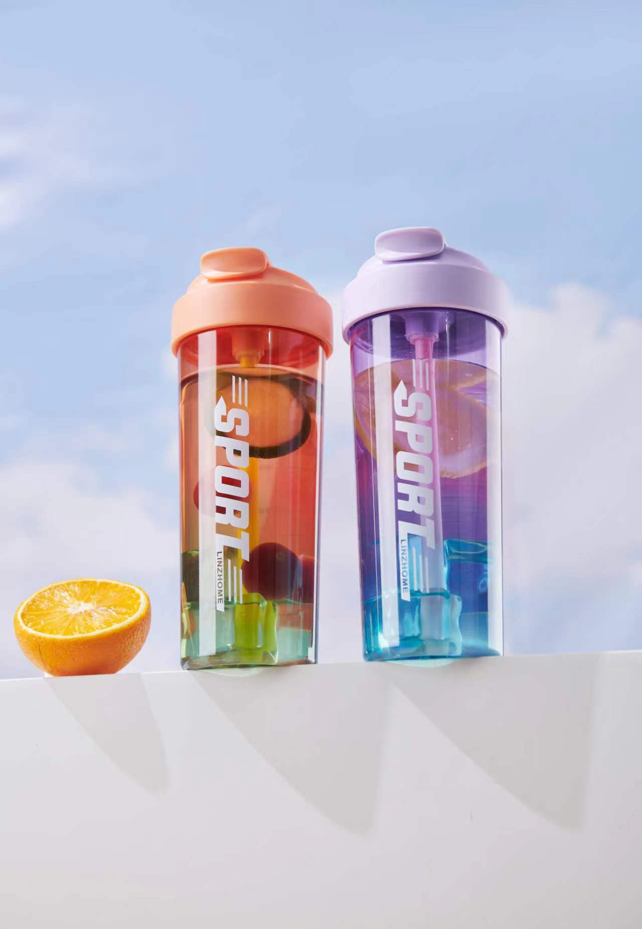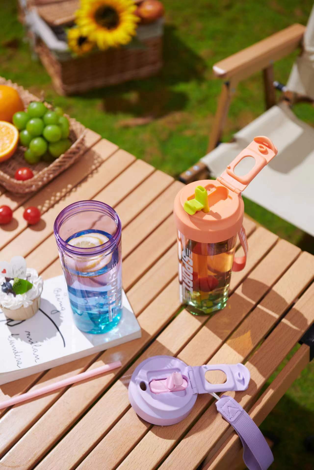 Vaso Doble para Bebidas con Popote, Vaso de Agua de PC de Grado Alimenticio de Alto Valor, Vaso de Café Portátil con Degradado para Deportes al Aire Libre al Mayoreo