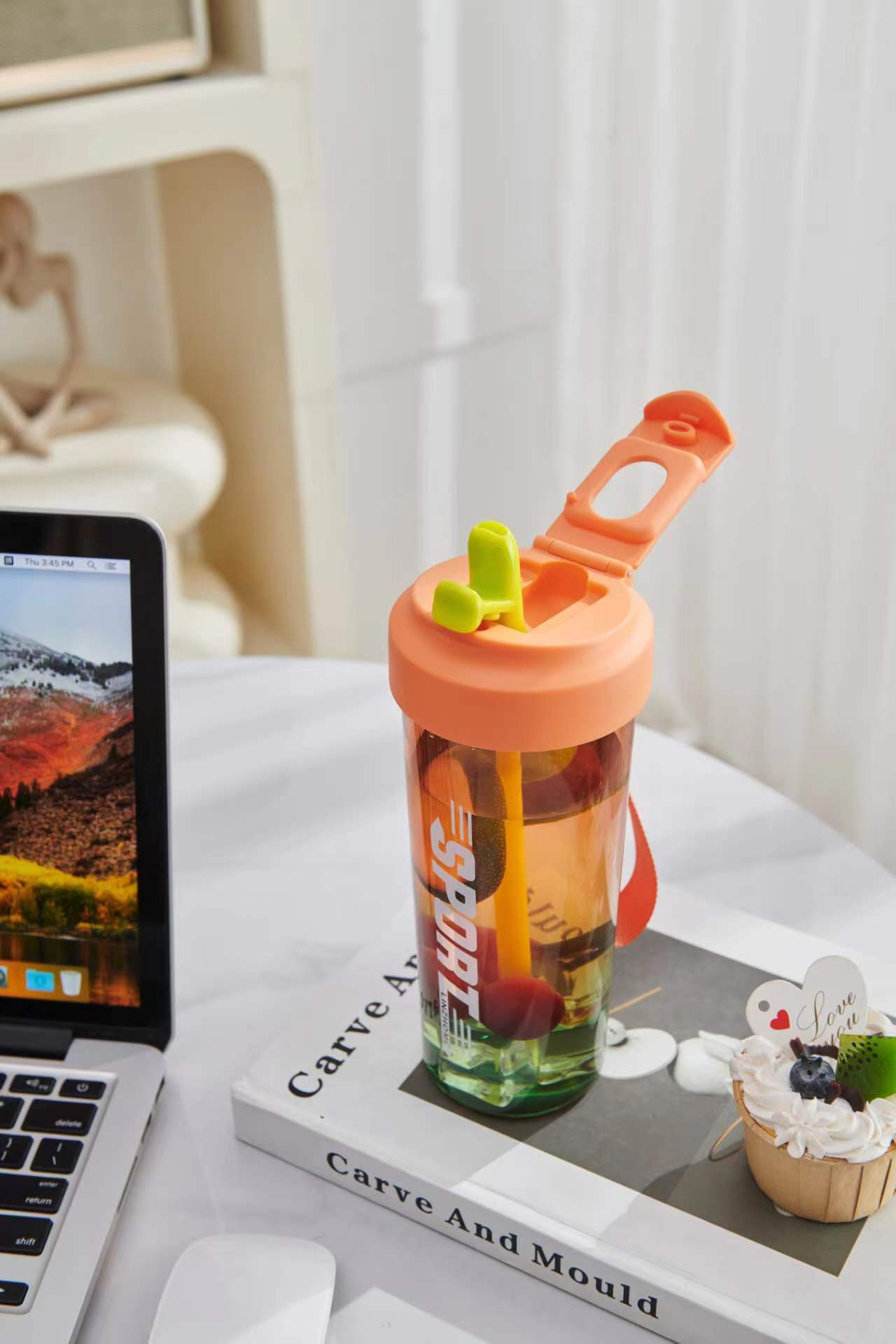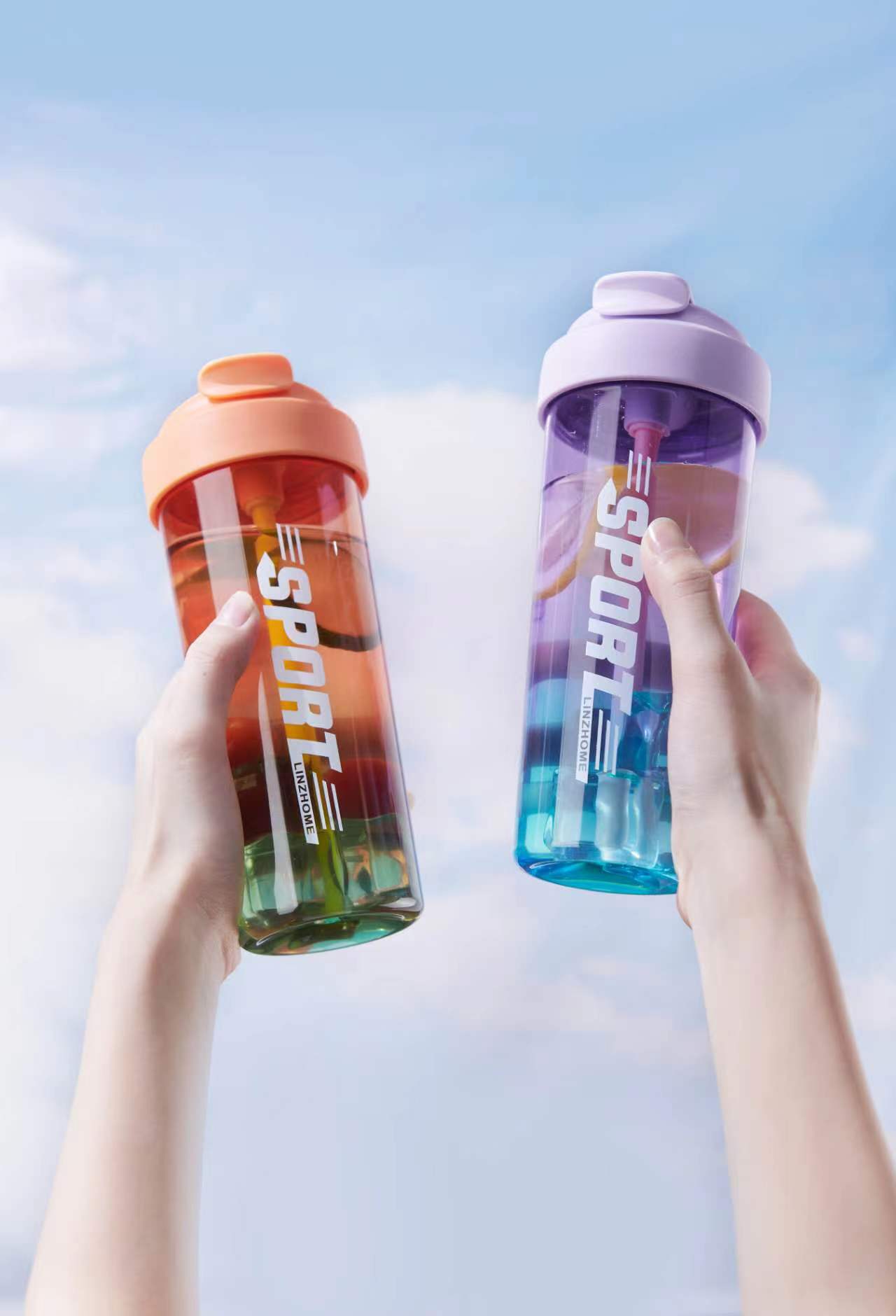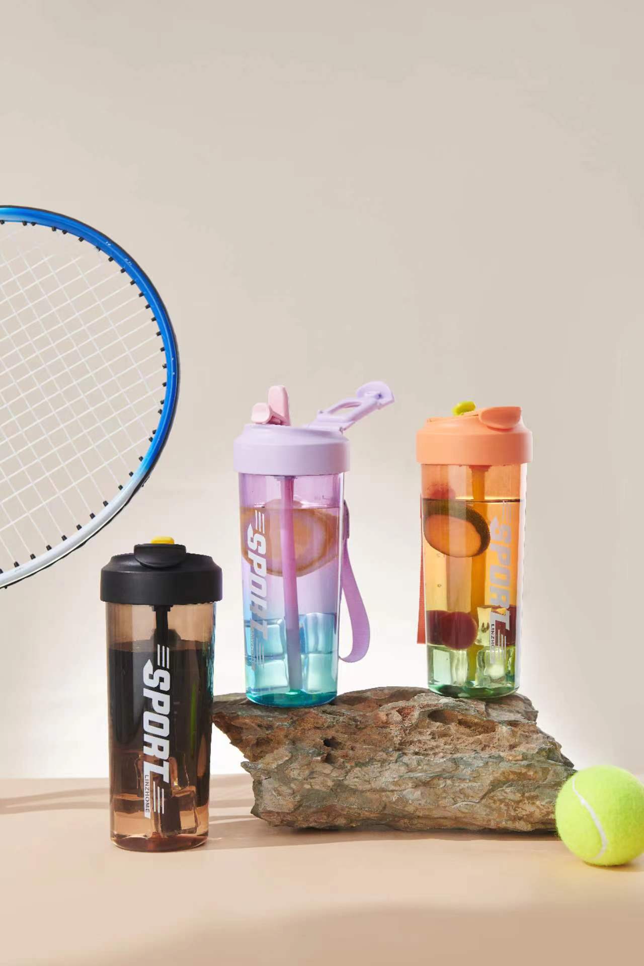 Vaso Doble para Bebidas con Popote, Vaso de Agua de PC de Grado Alimenticio de Alto Valor, Vaso de Café Portátil con Degradado para Deportes al Aire Libre al Mayoreo